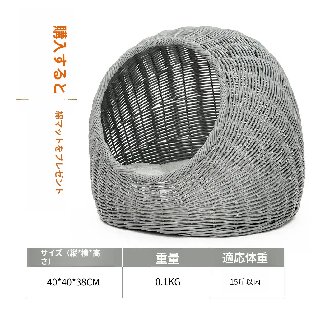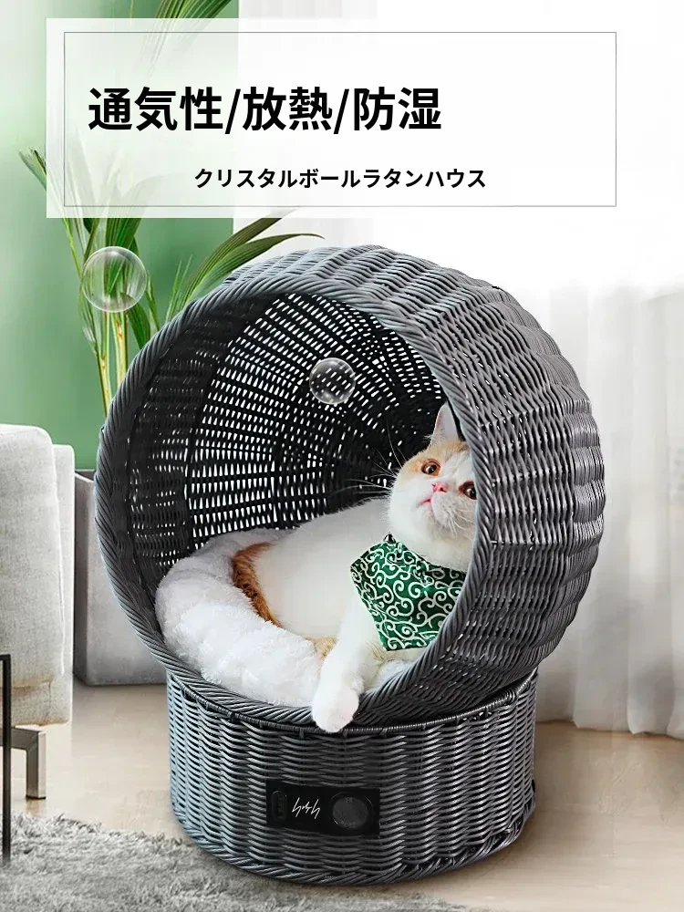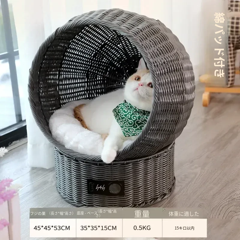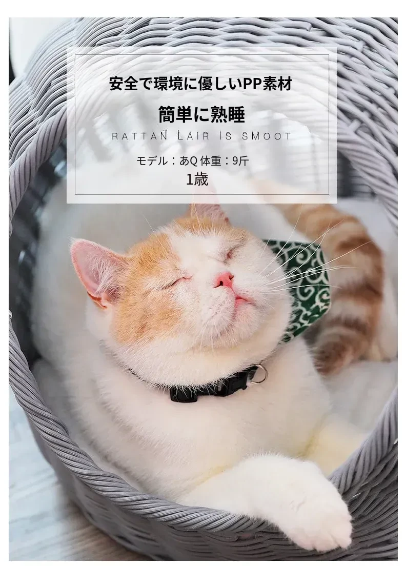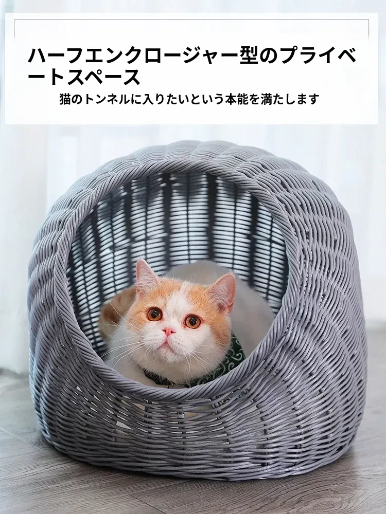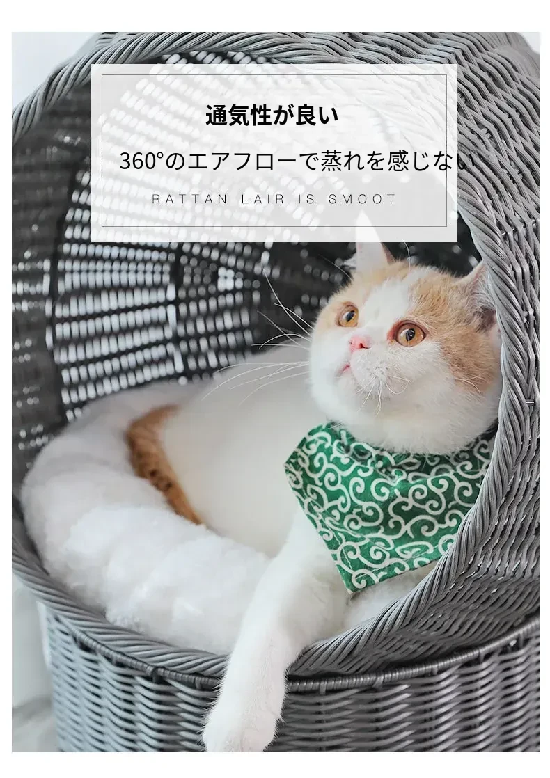 猫のための四季対応!夏の幼猫に最適な藤編みのクローズドキャットハウス。涼しさを提供する竹編みの猫別荘で、愛猫も大満足!快適な夏のひとときをお届けします。