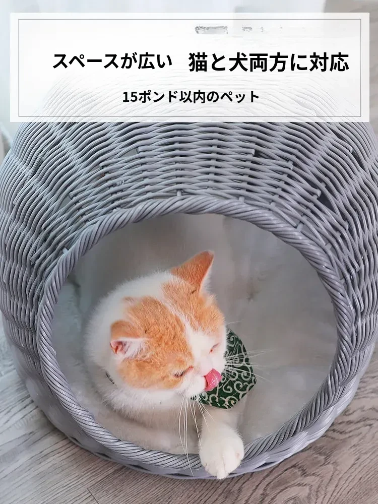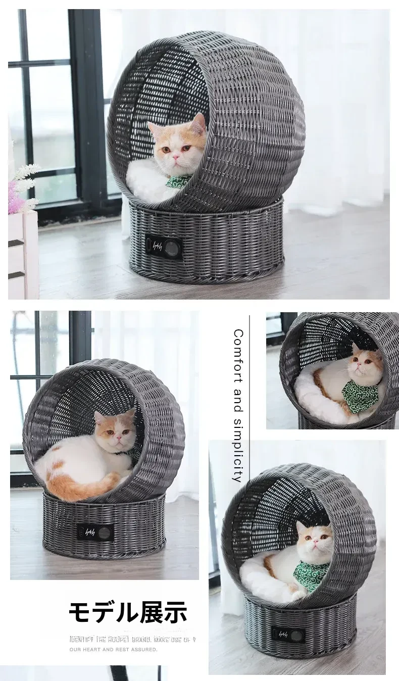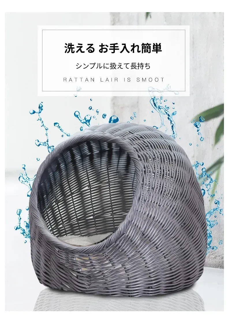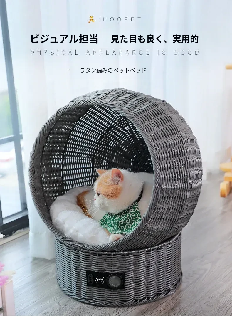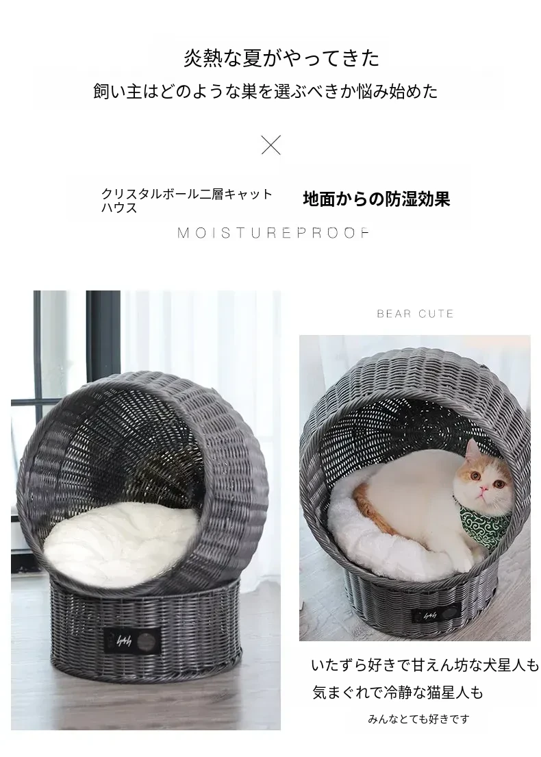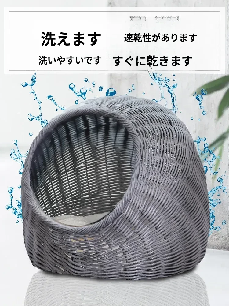 猫のための四季対応!夏の幼猫に最適な藤編みのクローズドキャットハウス。涼しさを提供する竹編みの猫別荘で、愛猫も大満足!快適な夏のひとときをお届けします。