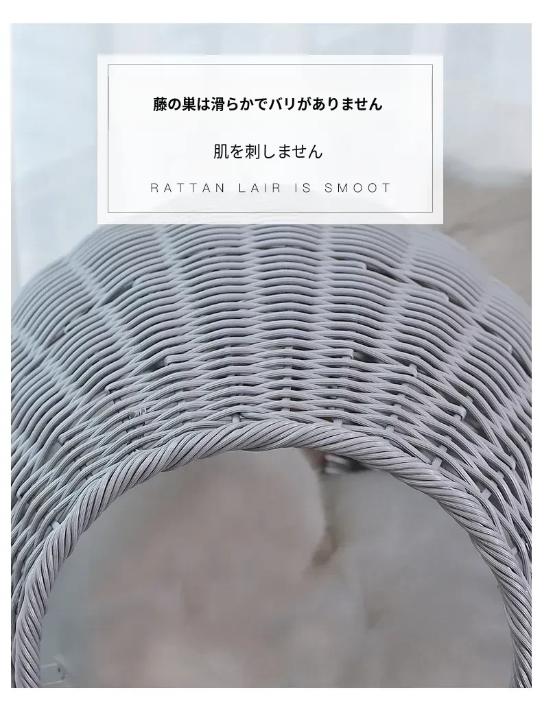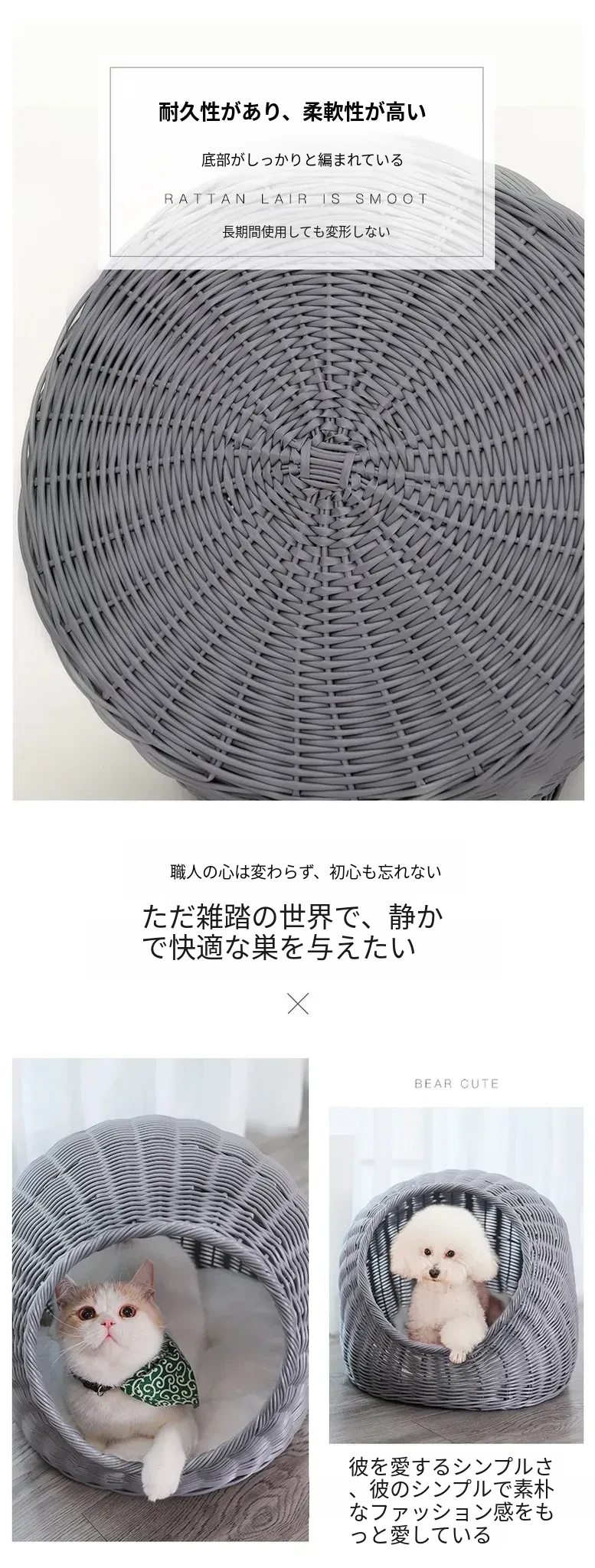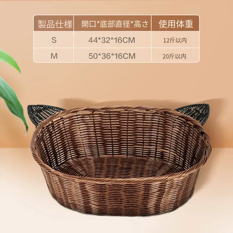 猫耳-かわいい藤編み猫ハウス(通気性抜群・四季用)