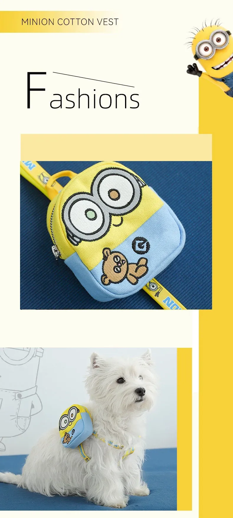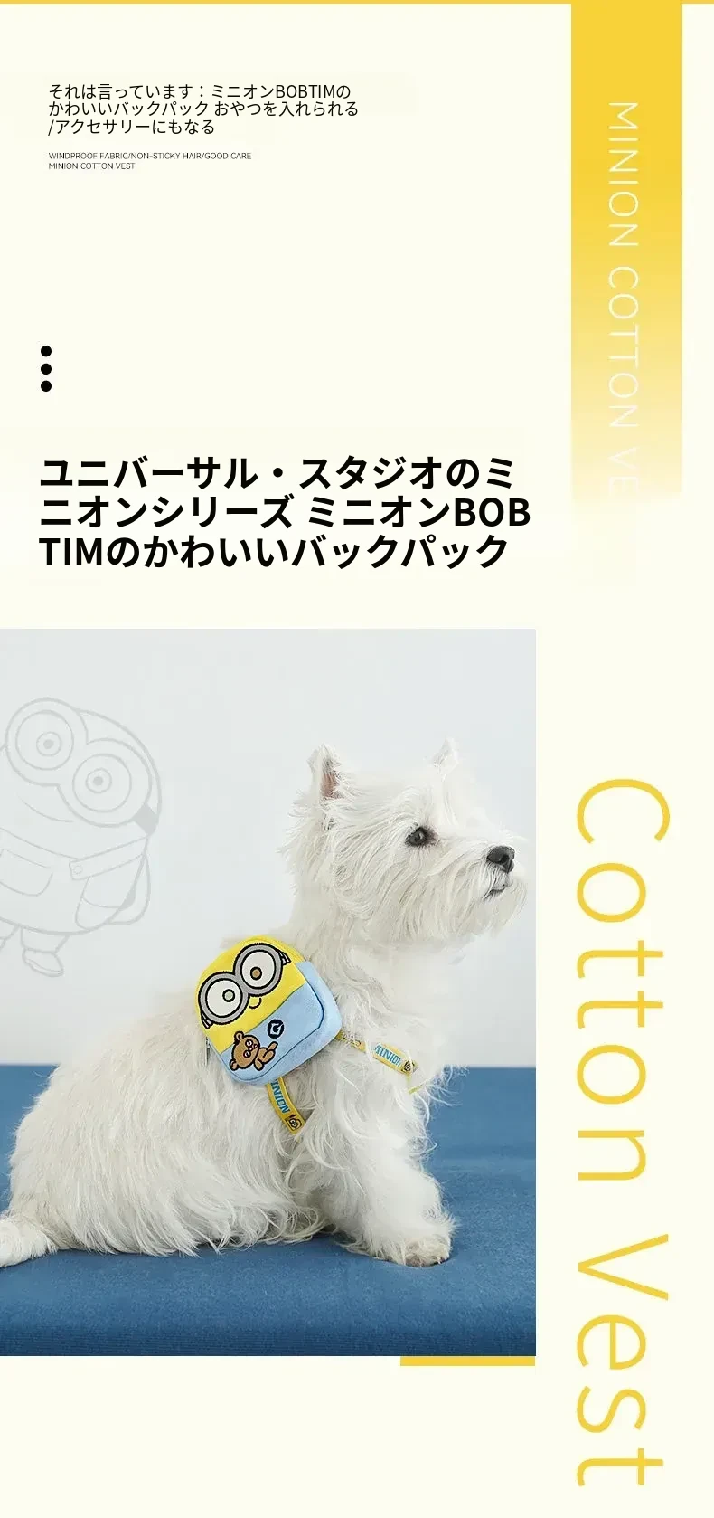 小黄人BOBTIM可爱ペット用バックパック - 愛犬とのお出かけに最適!便利な旅行用ミニバッグ、スナックやティッシュも収納可能!