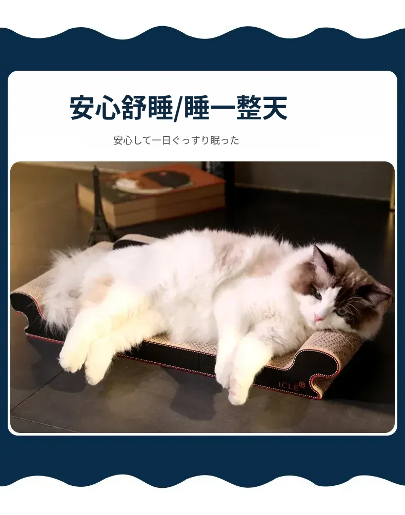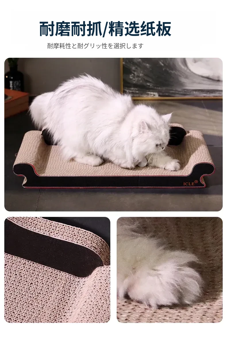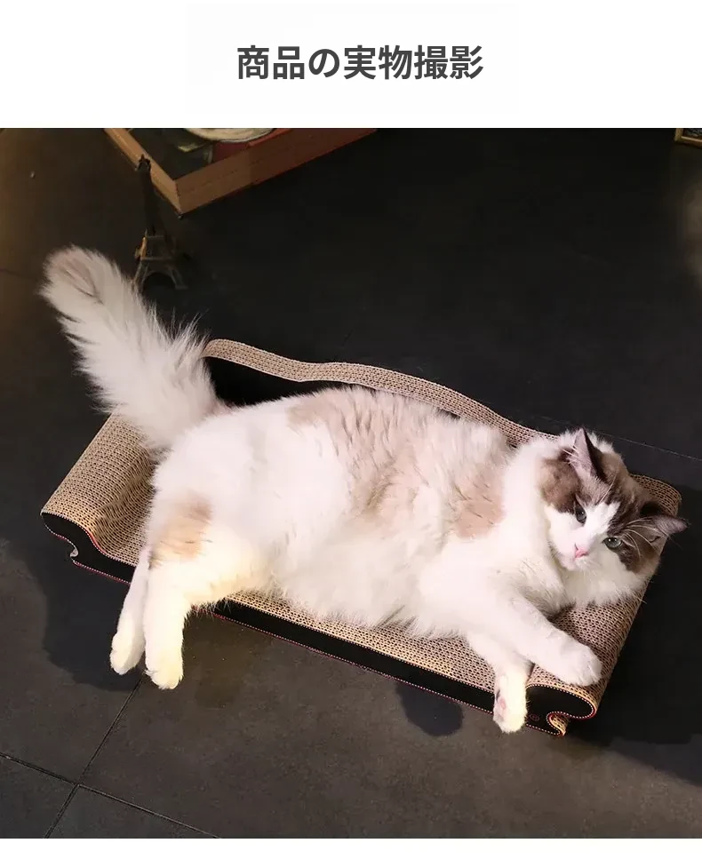 高級キャットソファ兼用爪とぎボックス!耐久性のある段ボール製、無駄な毛が落ちない特大サイズ。猫ちゃんがくつろぎながら爪を研げる理想的な隠れ家。快適な寝床と遊び場を兼ね備えた贅沢なアイテムです!