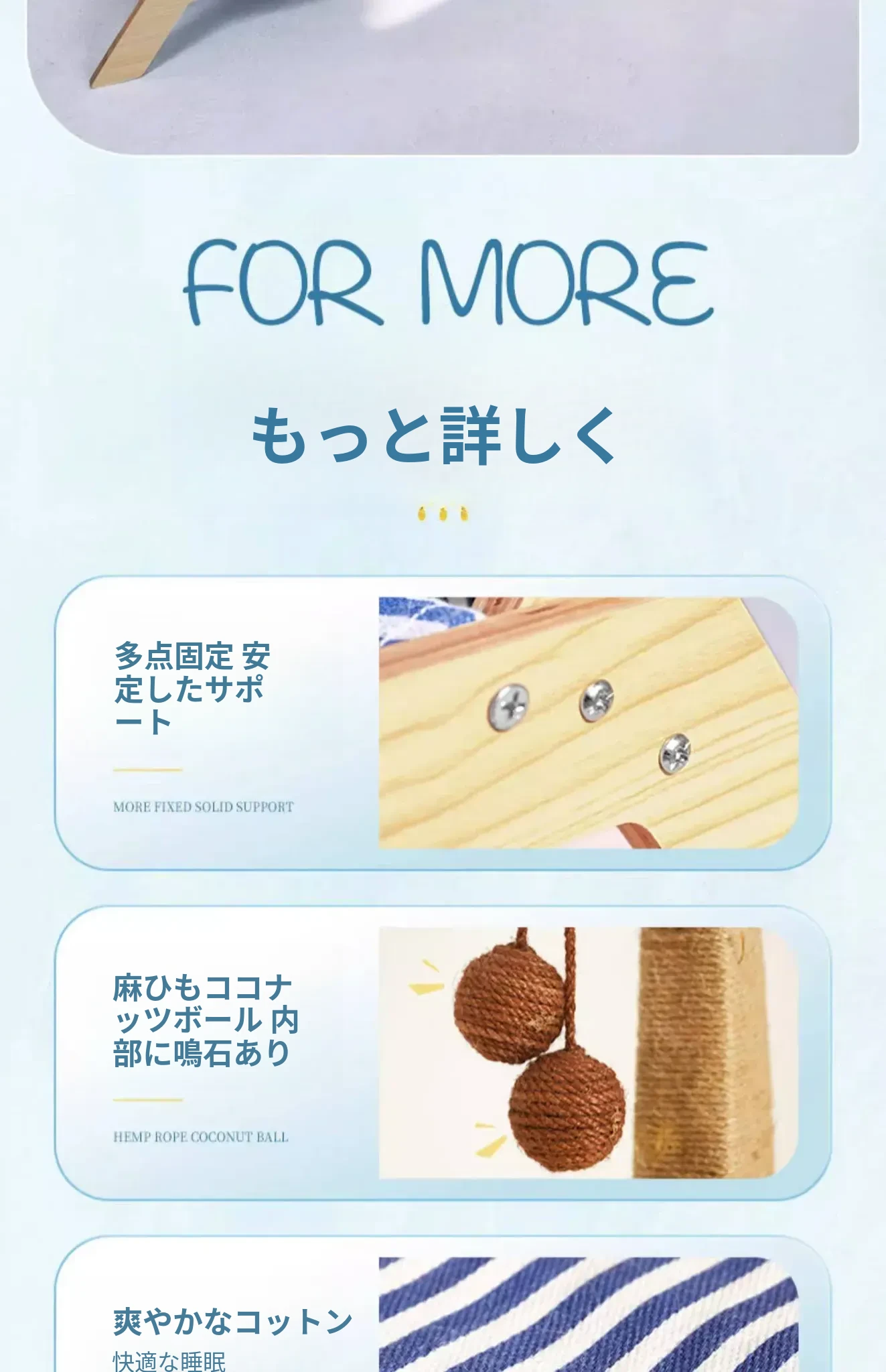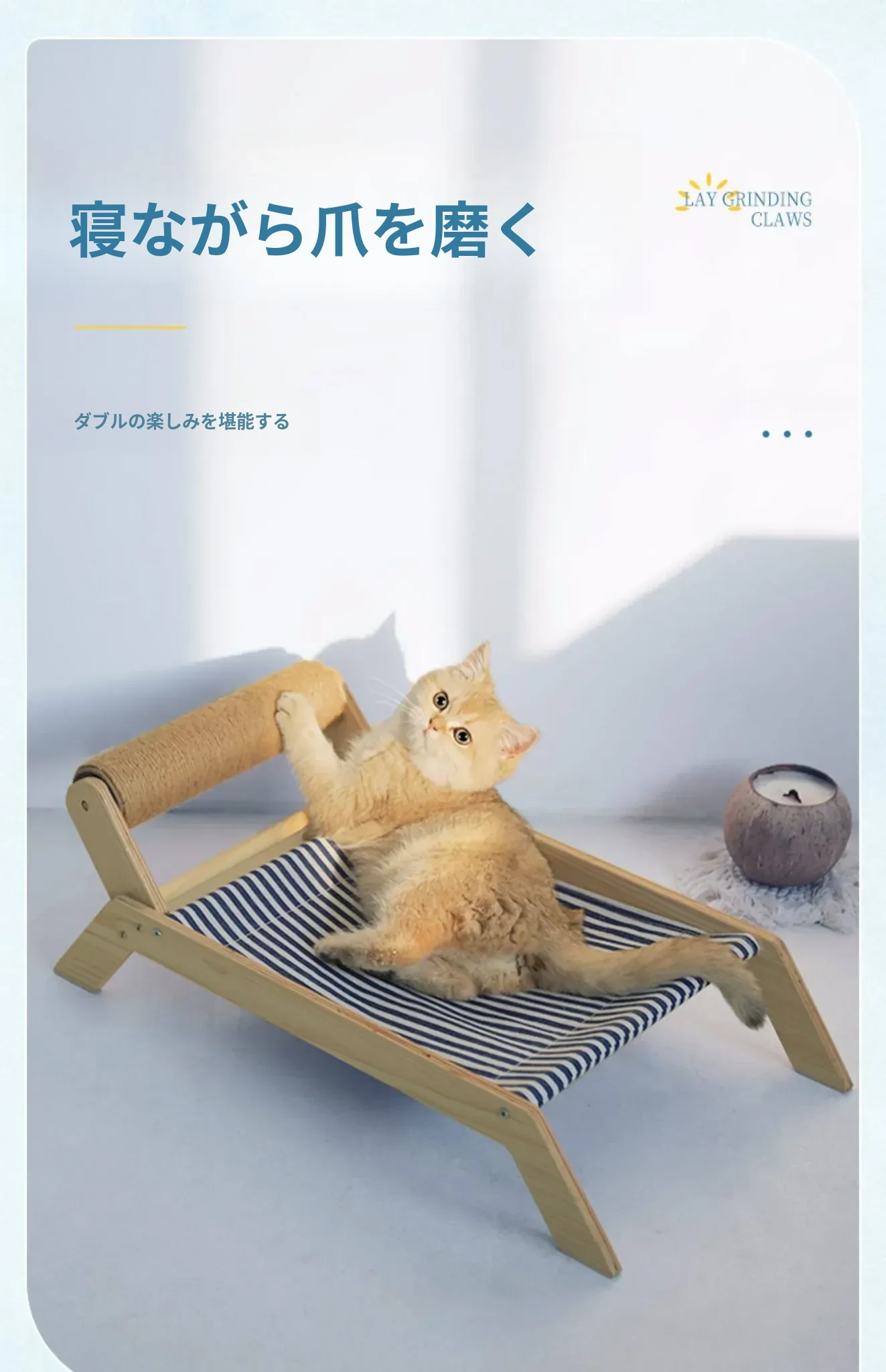 猫ちゃんのためのプレミアムキャットタワー&ベッド!おしゃれなキャットハンモック、爪研ぎボード、快適なクレードルベッド付き。子猫も大満足の夏にぴったりなリラックス空間を提供します!