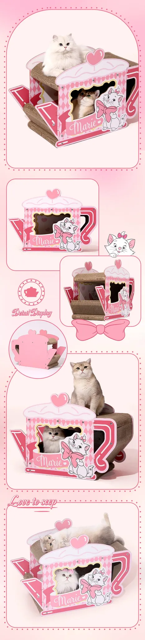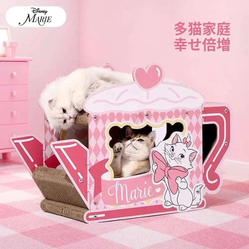 ディズニー ペット用 ダブルレイヤー キャットスクラッチハウス - 高級新型キャットベッド & スクラッチボード一体型!猫ちゃんの爪研ぎも楽しく、快適な眠りを提供します!