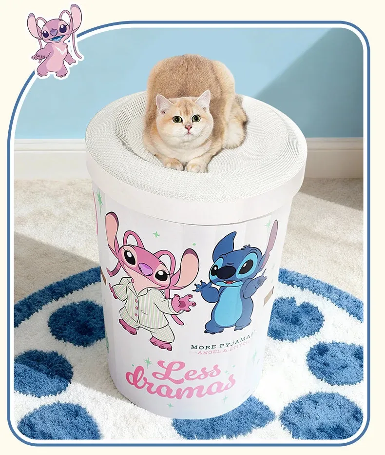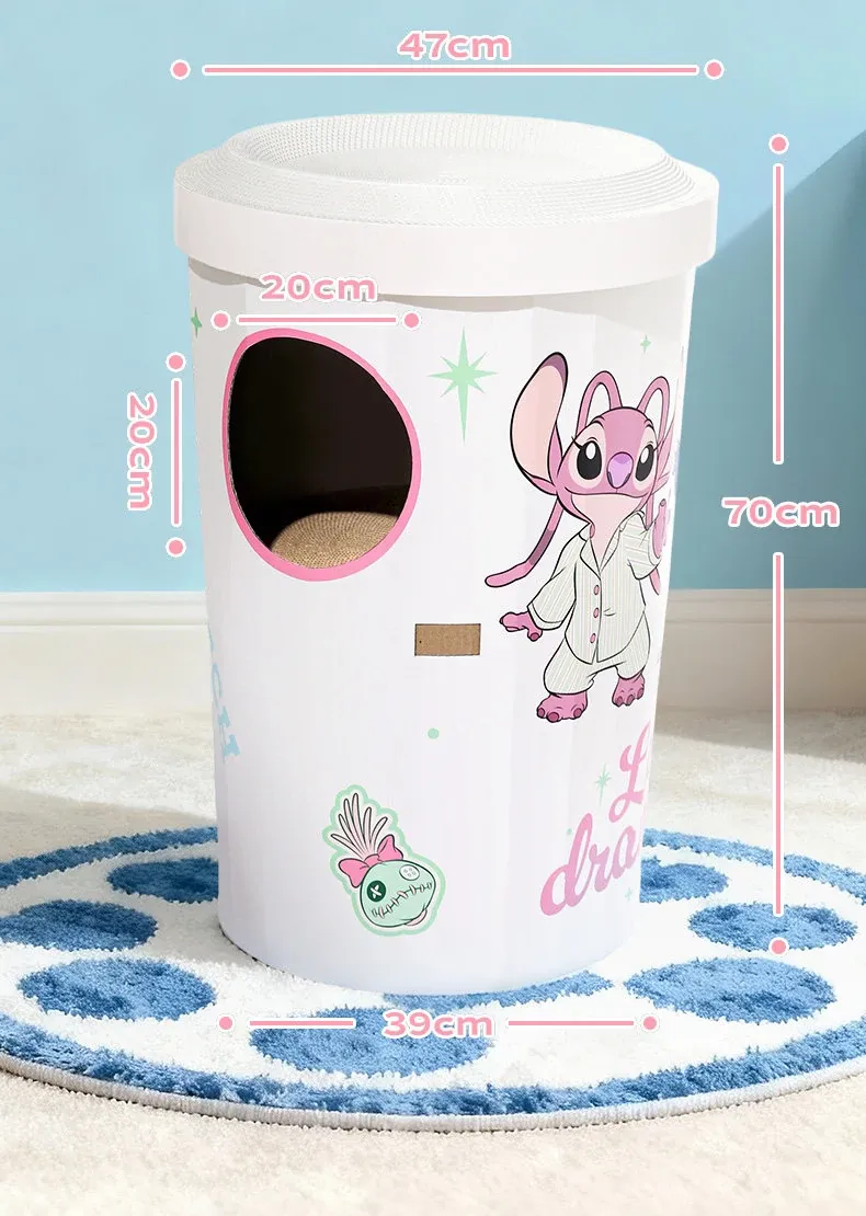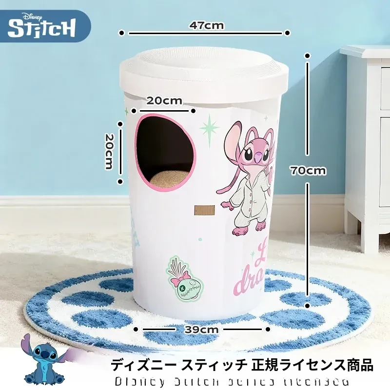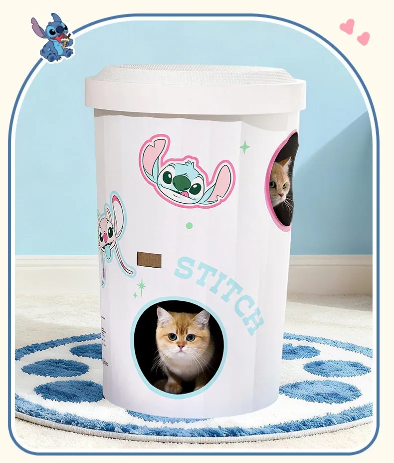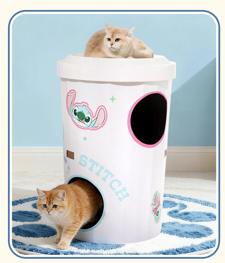 ディズニースティッチシリーズ スティッチキャットグラブトンネル 猫型キャットハウス一体型キャットタワー スティッチ多層ミルクティーバケツで、愛猫の遊びとリラックスを実現!
