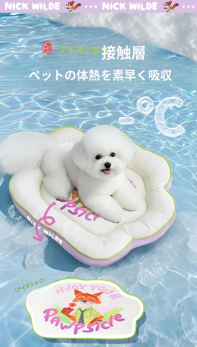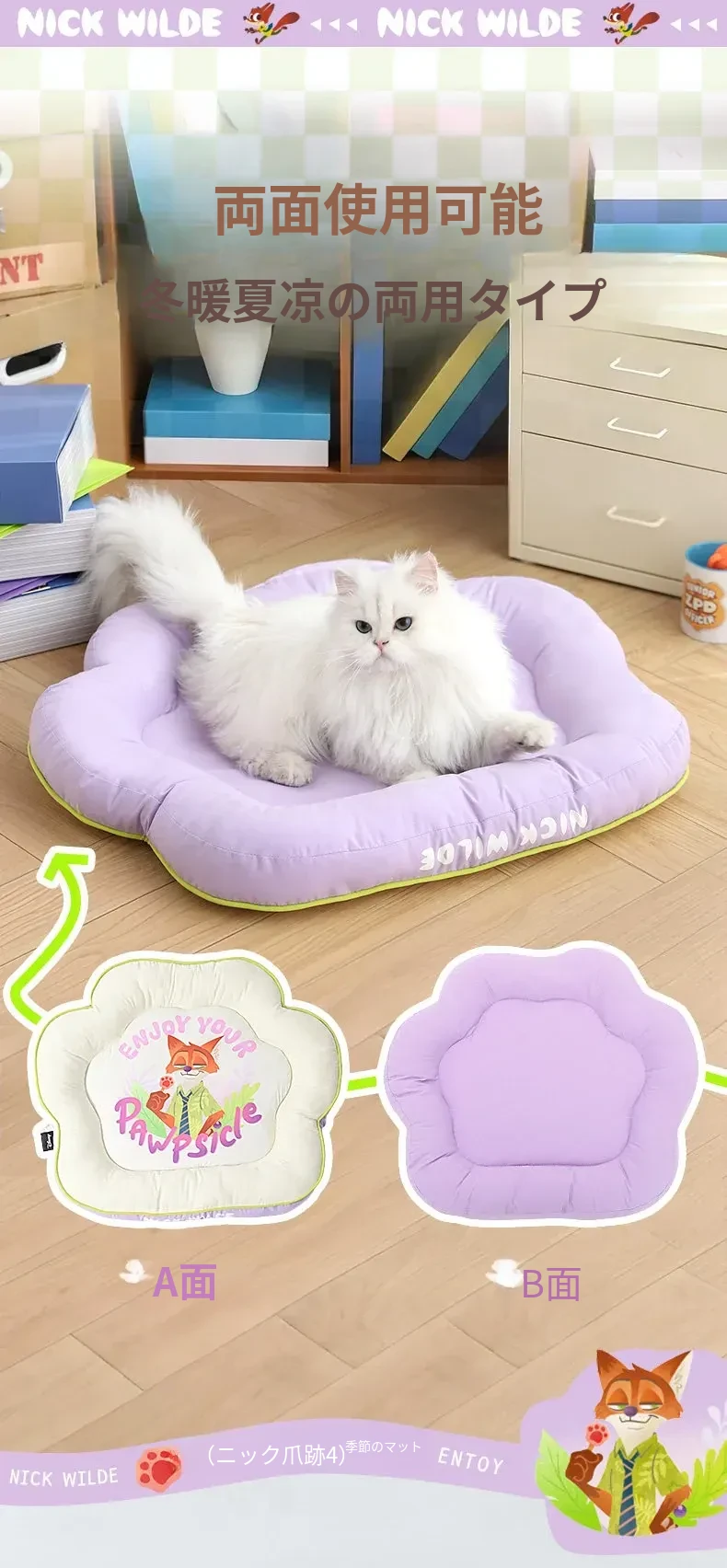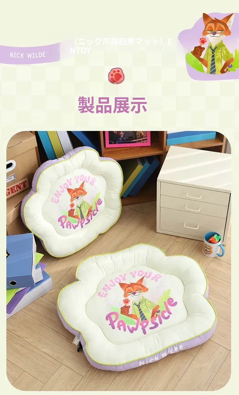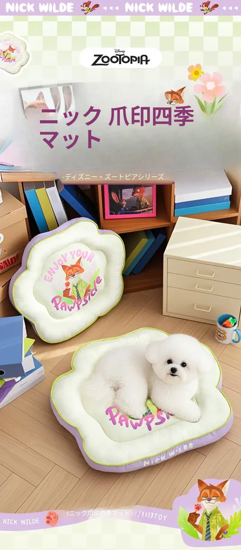 ディズニー・ズートピアシリーズ ニックの足跡 四季折々のアイスシルククッション!犬や猫に最適な夏の防水クールマットで、愛するペットを快適に保ちます。涼しさと可愛さを両立した特別なアイテムです!