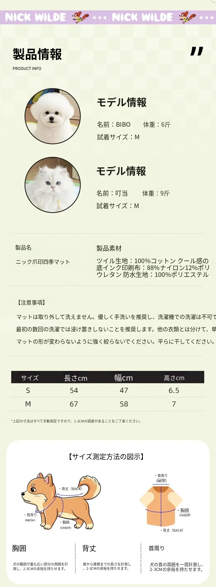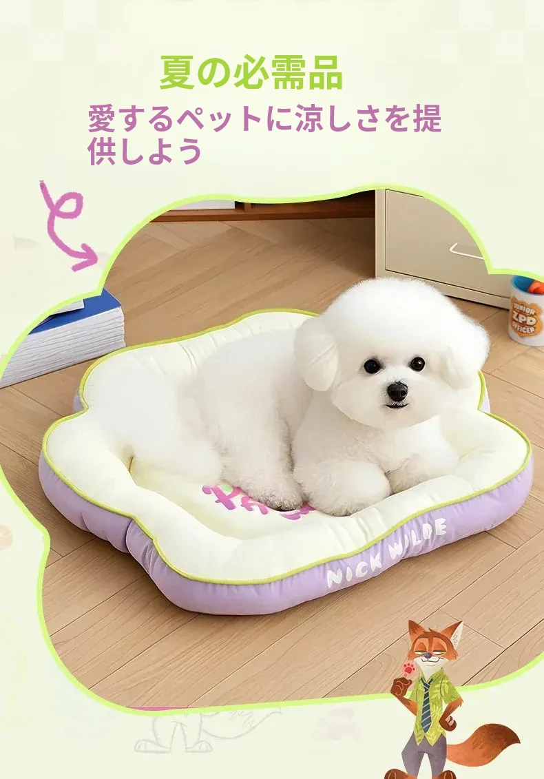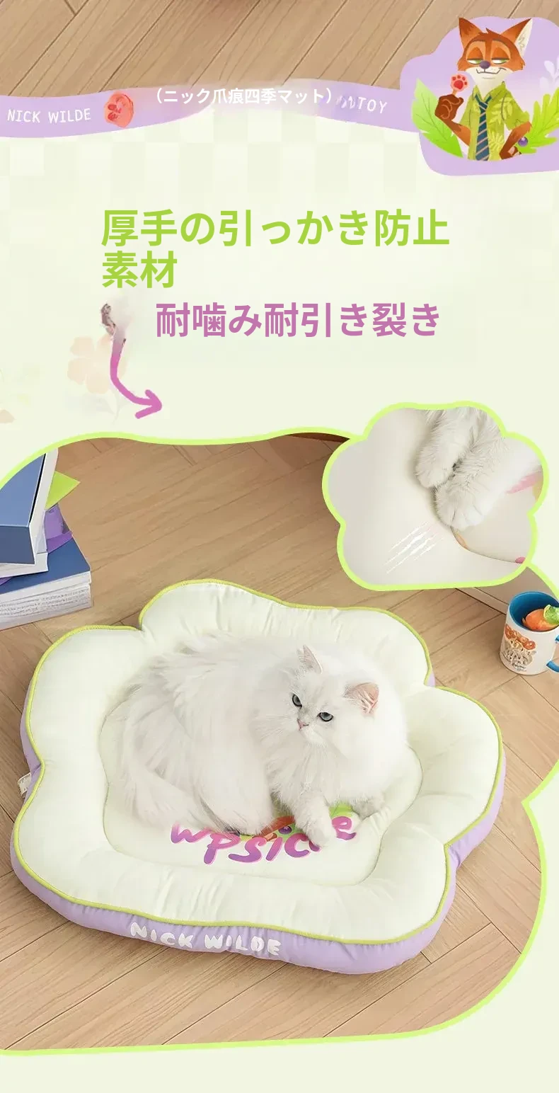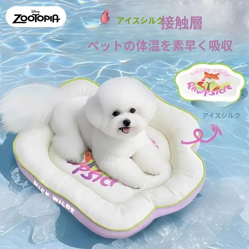 ディズニー・ズートピアシリーズ ニックの足跡 四季折々のアイスシルククッション!犬や猫に最適な夏の防水クールマットで、愛するペットを快適に保ちます。涼しさと可愛さを両立した特別なアイテムです!