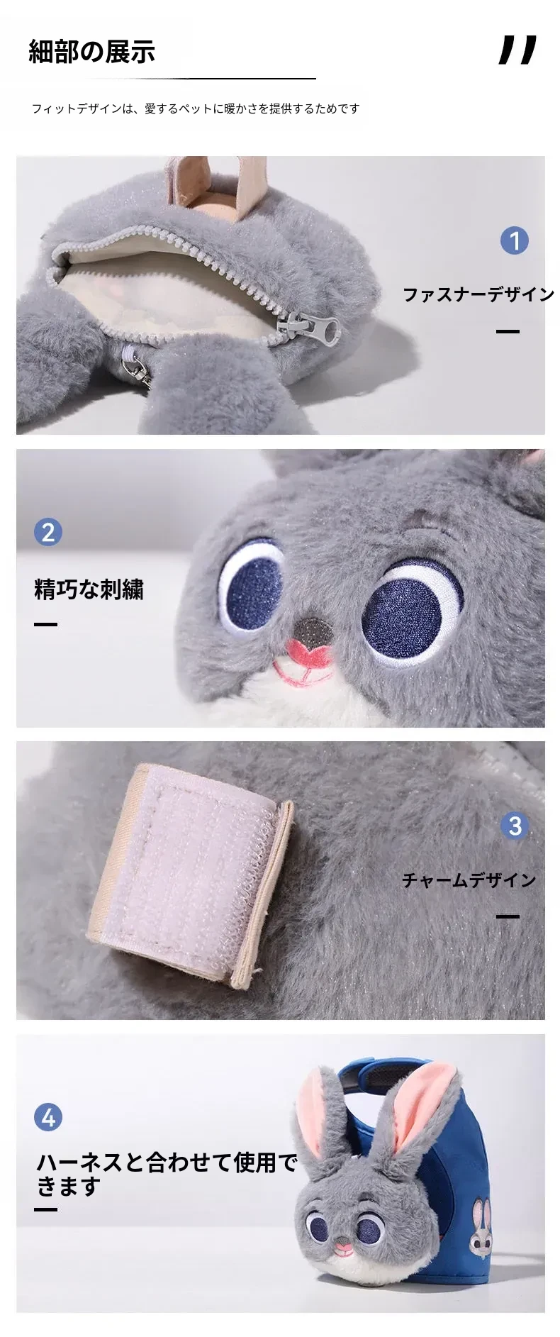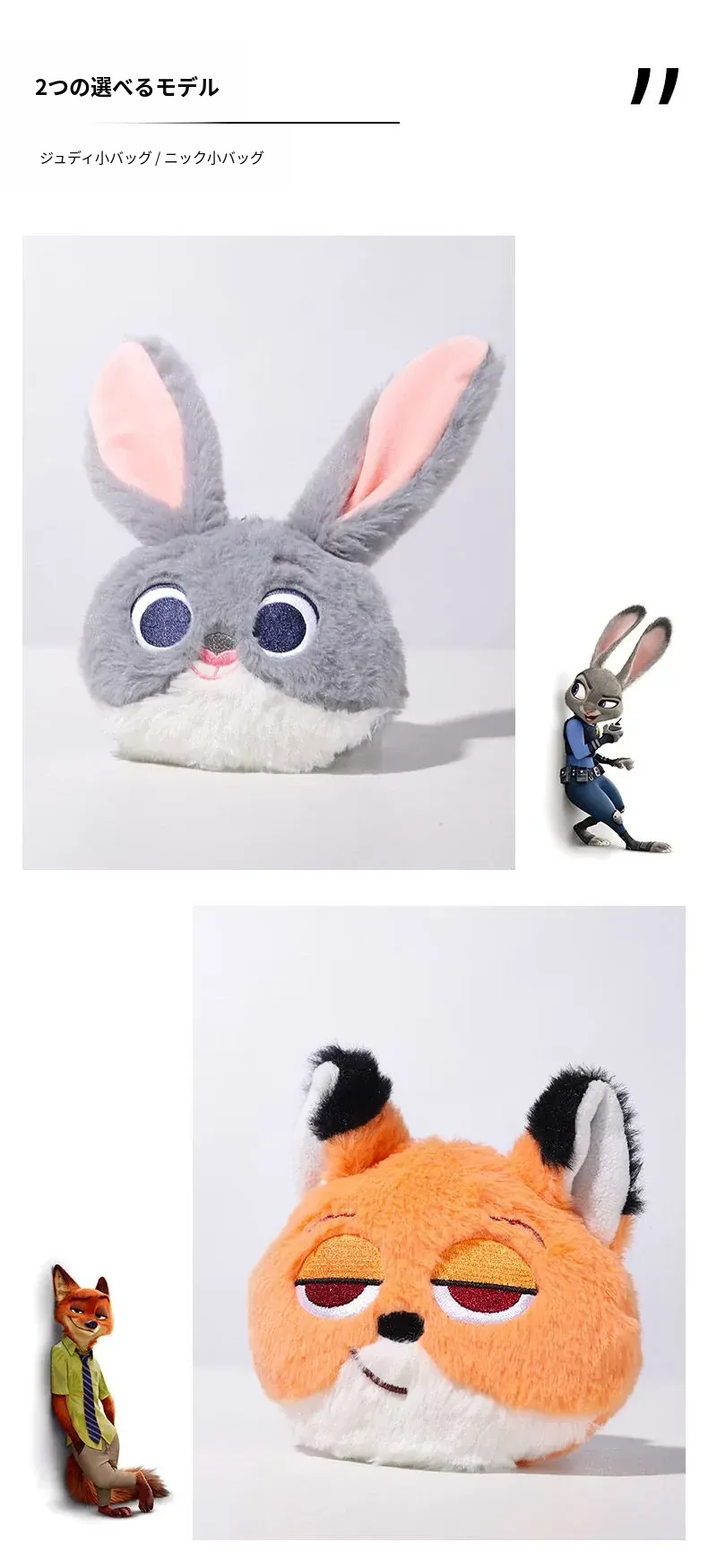 ディズニーのズートピアシリーズ!柔らかいウサギのフリース素材で作られた収納小物ポーチ。胸ストラップに取り付け可能で、外出時のおやつや小物をおしゃれに持ち運べます。あなたの冒険にぴったりのアイテムです!
