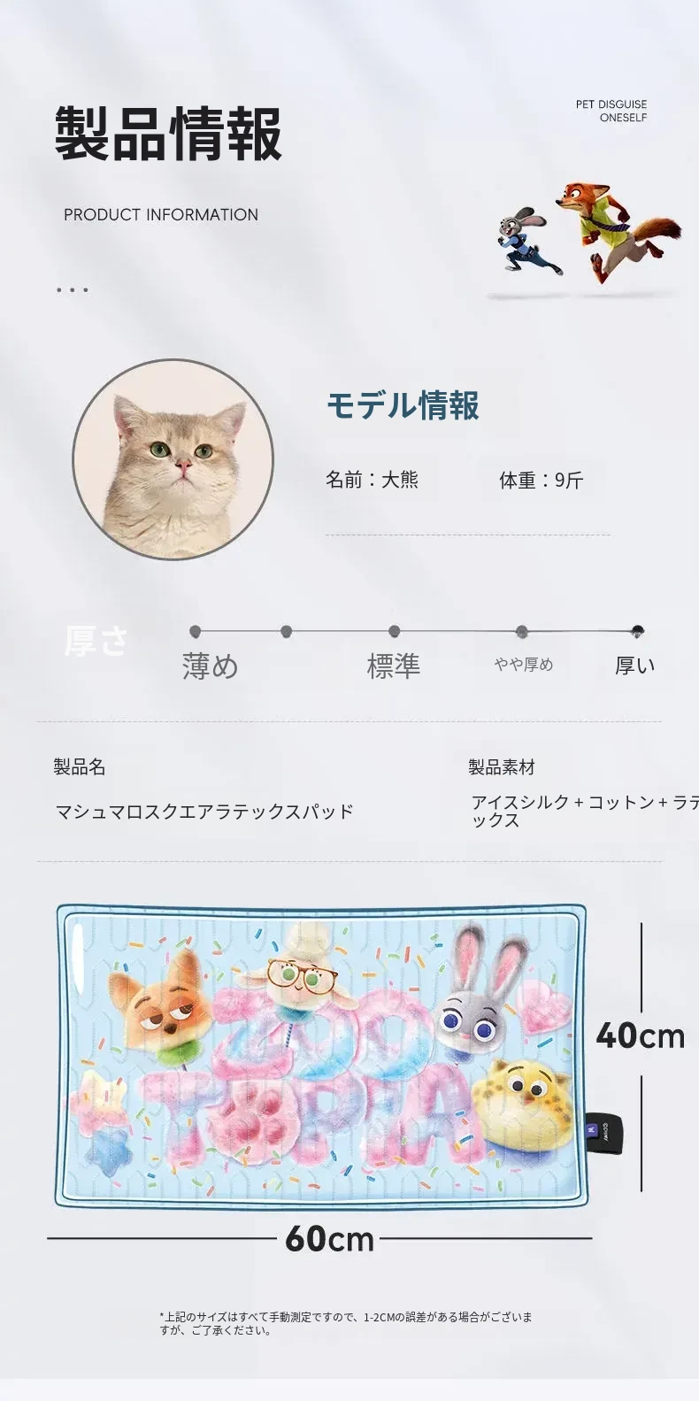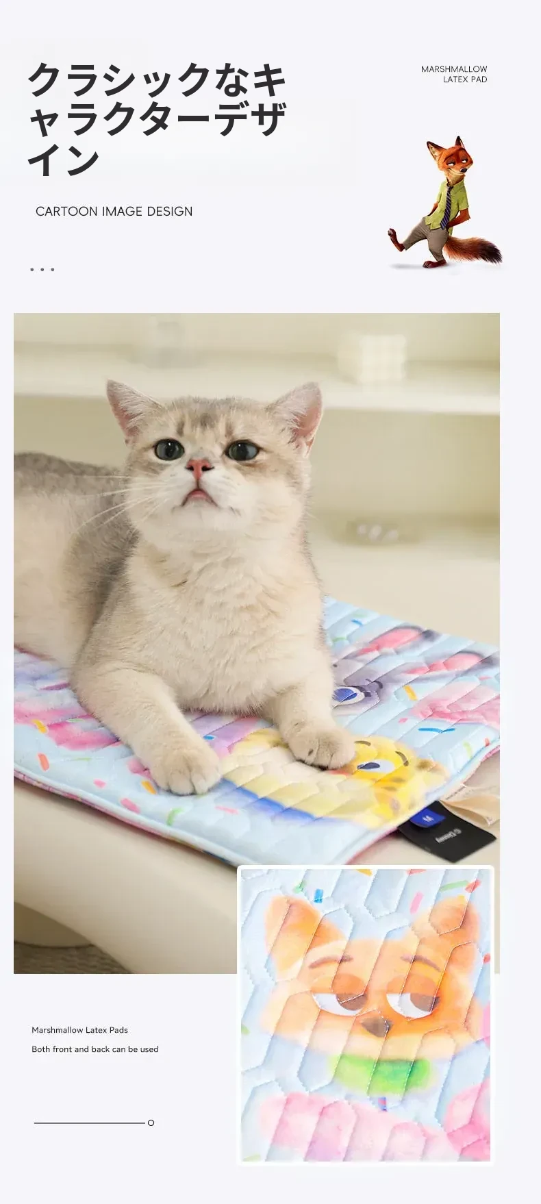 ディズニー・ズートピアシリーズ ペット用スクエアラテックスマット 夏のペット用クールマット 猫ちゃんの快適な眠りをサポート!