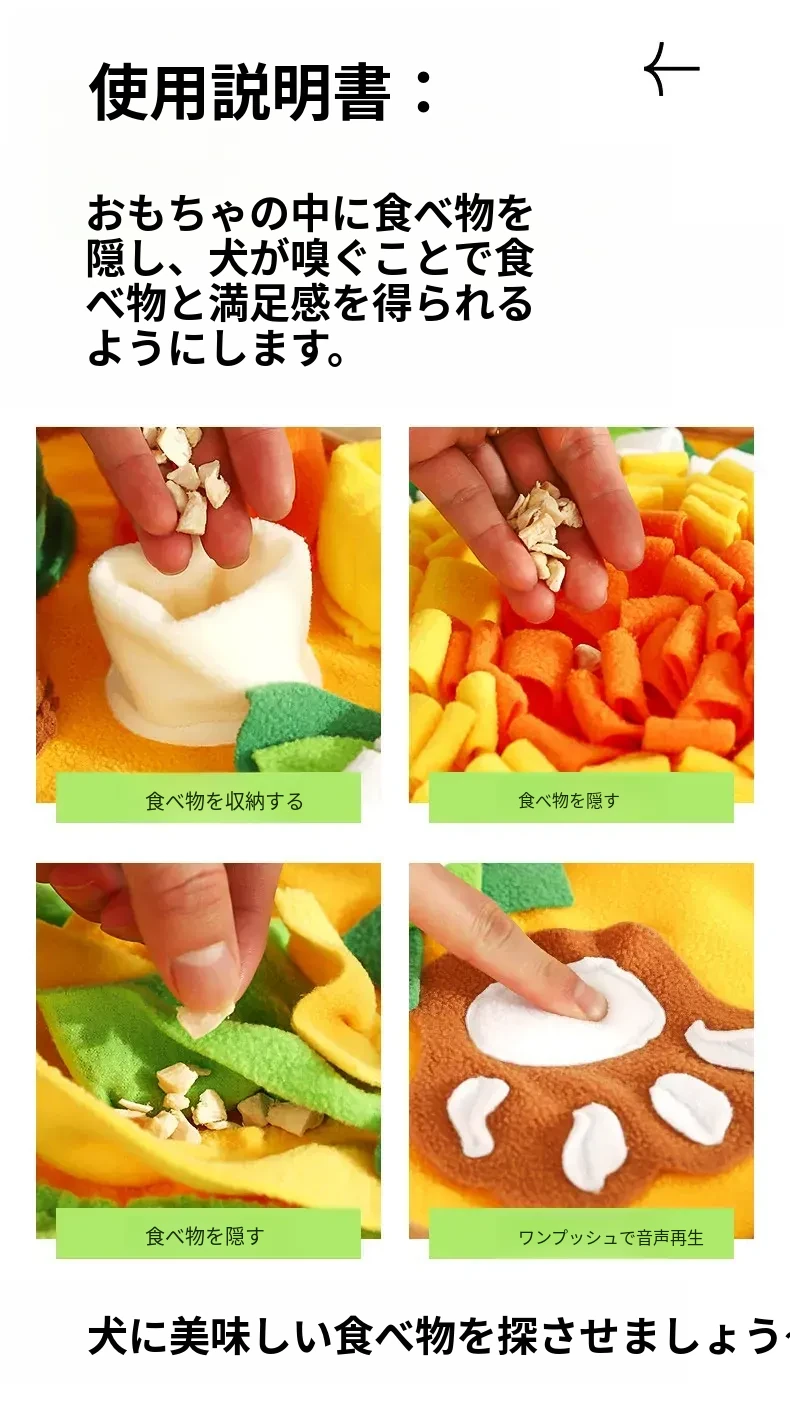 犬用嗅ぎマット - 食べ物を隠して探す楽しさ!ペットの知育おもちゃで、退屈を解消!小型犬にも最適な知能向上アイテム。楽しく遊びながら、嗅覚を刺激して健康的な生活をサポートします!