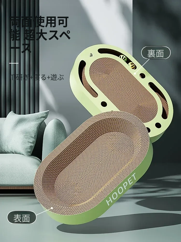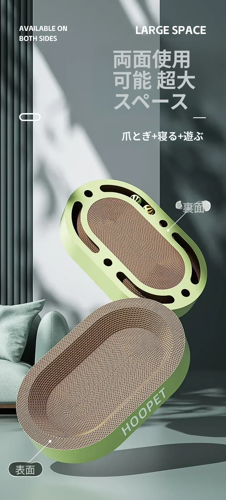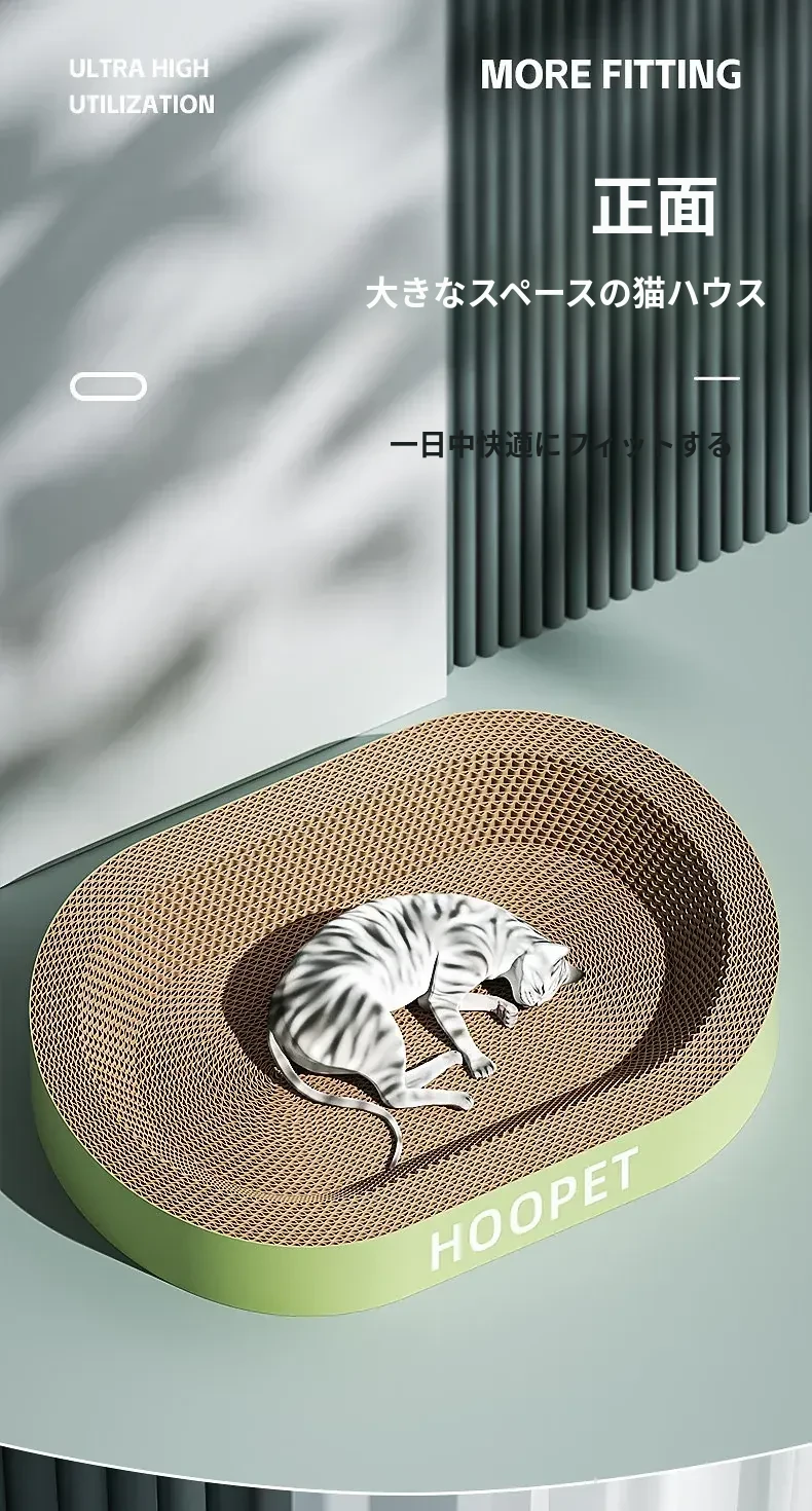 超大型猫用ハウス&爪とぎ!両面耐摩耗、毛が落ちないキャットボード。段ボール製で猫ちゃんも大満足!快適な遊び空間を提供するラウンド型デザイン!