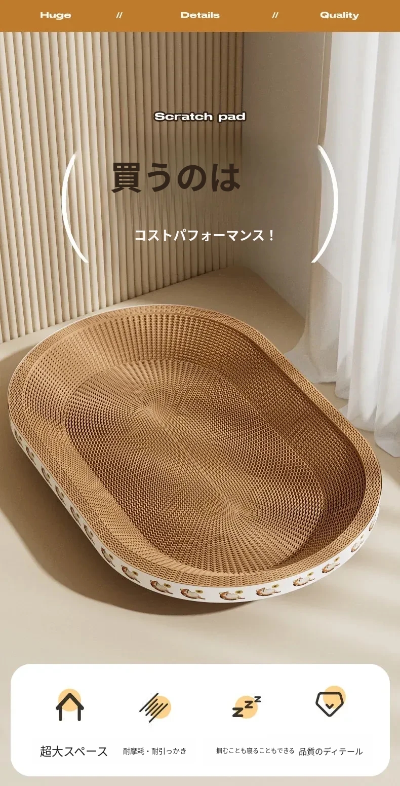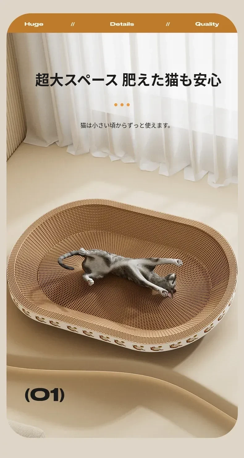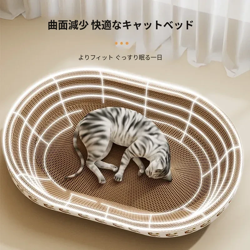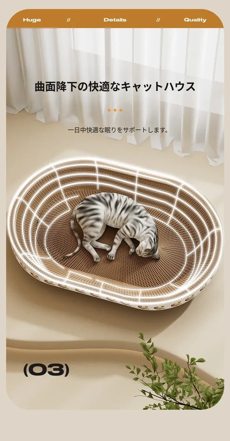 耐久性抜群!キャットハウス兼用キャットグラブボード - 大型段ボール製、毛が抜けないデザインの猫用グラブボウル。愛猫が夢中になること間違いなし!