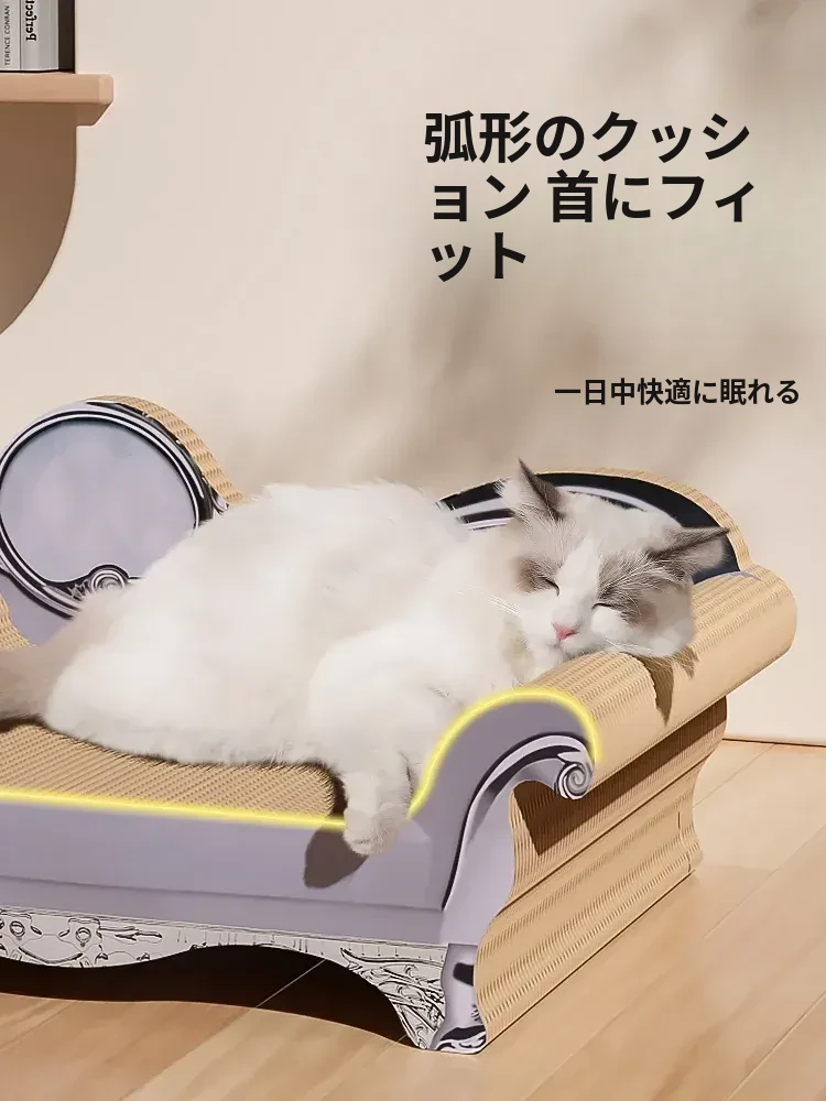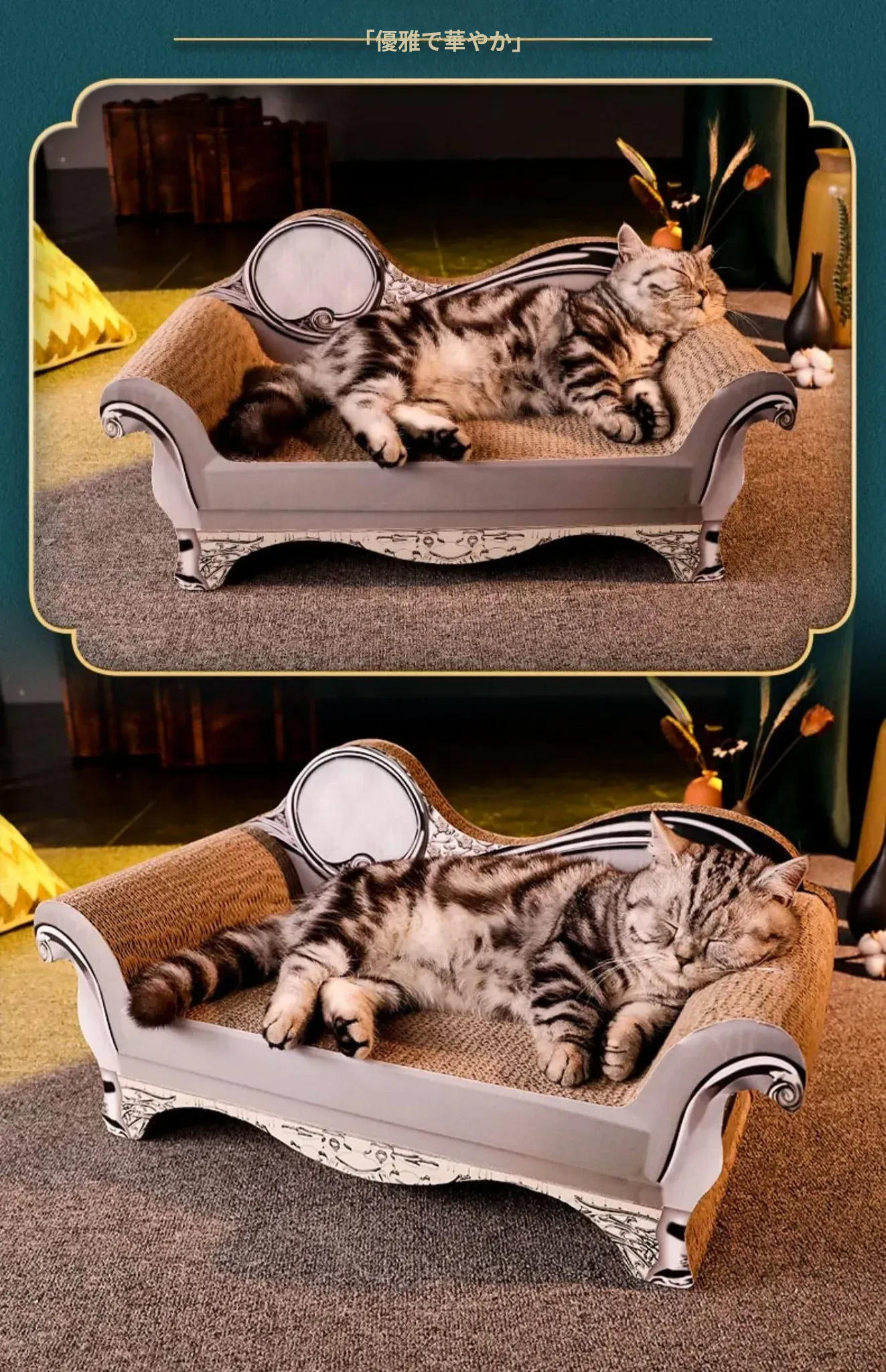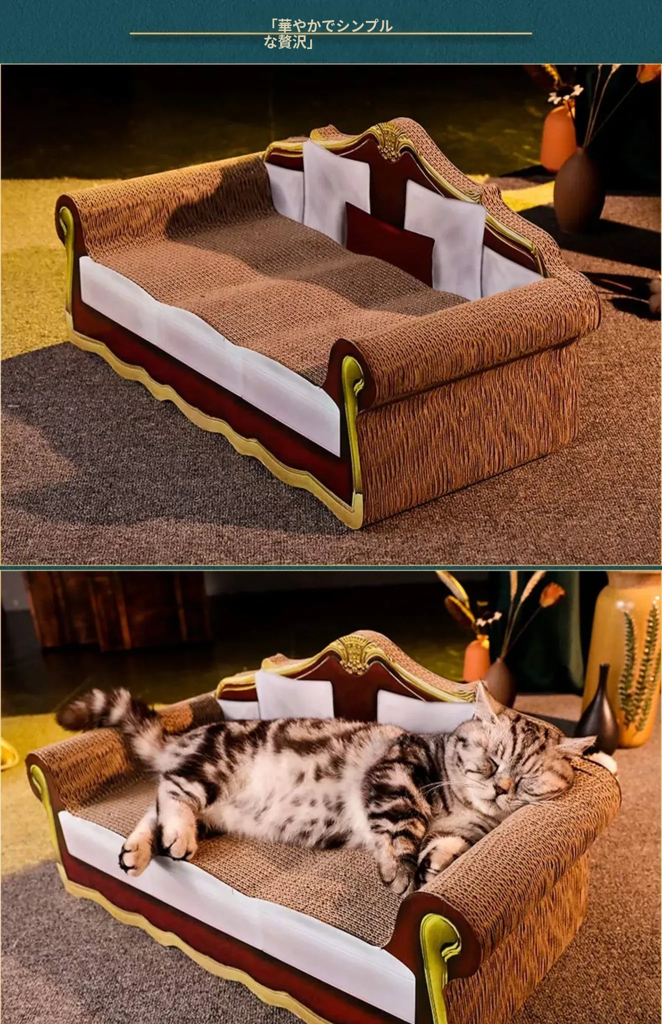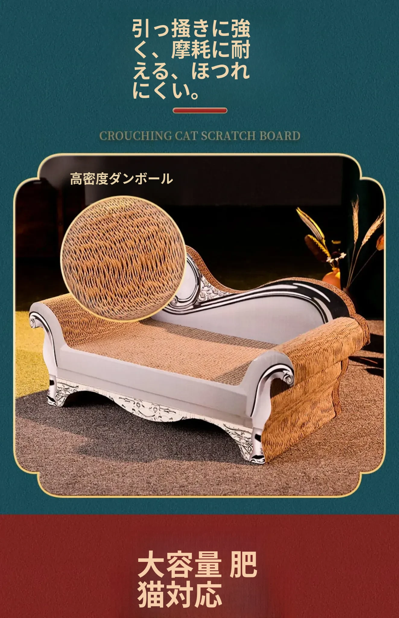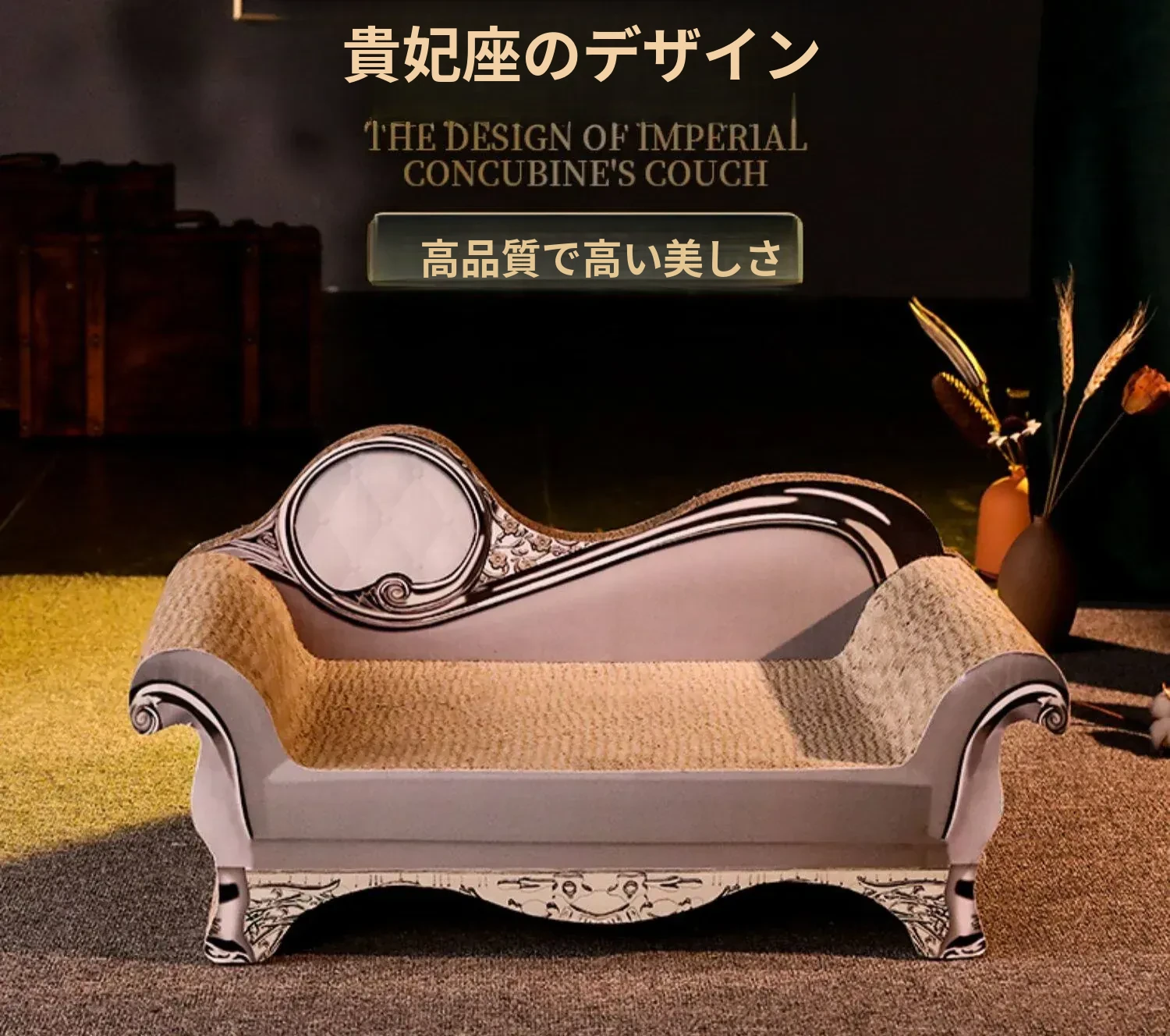 耐久性抜群!高級感溢れる貴妃椅子型キャットタワー、キャットグラブボード一体型で、猫ちゃんが安心してくつろげる特大サイズのソファ!刃物を使わずに爪を研げる、無駄なチップも出ないエコ設計。