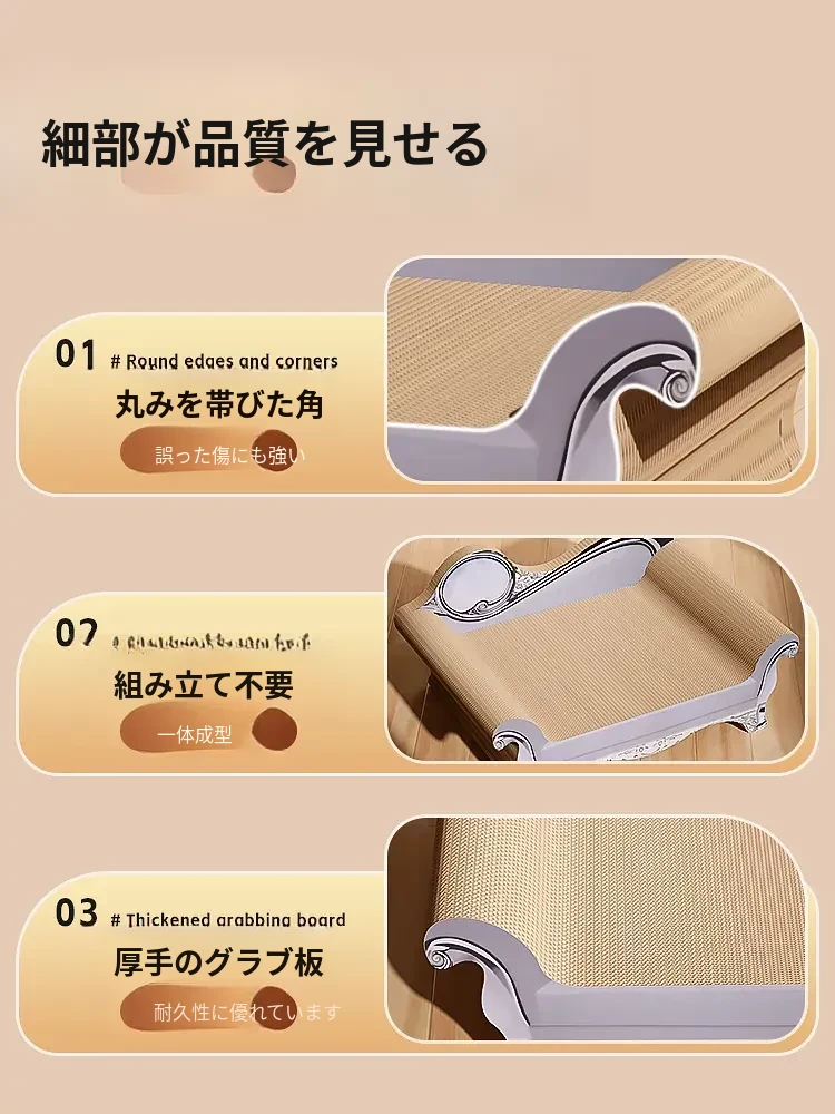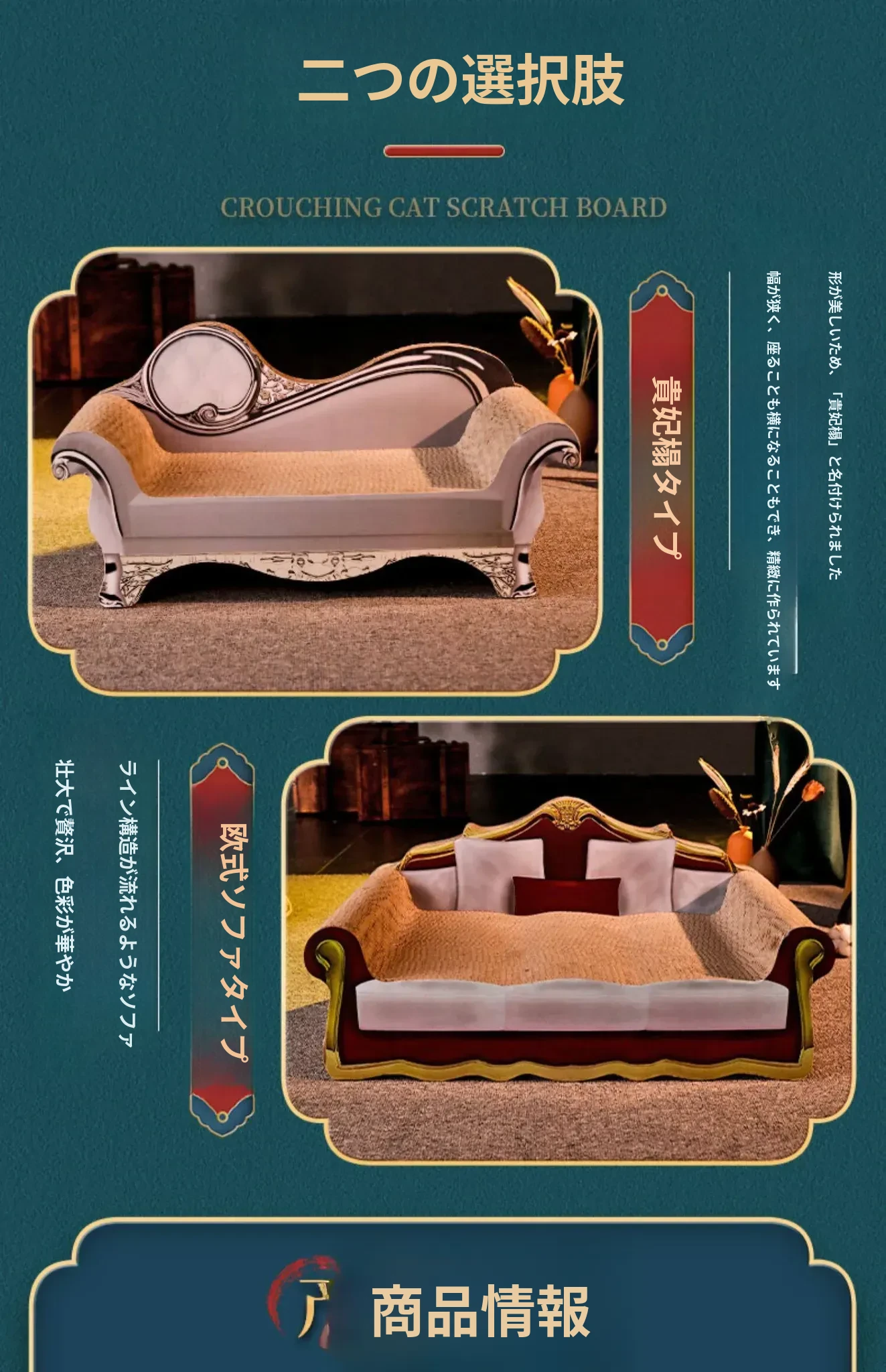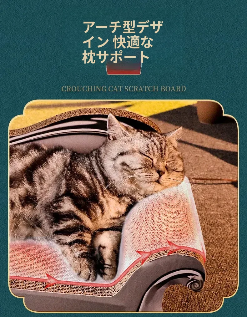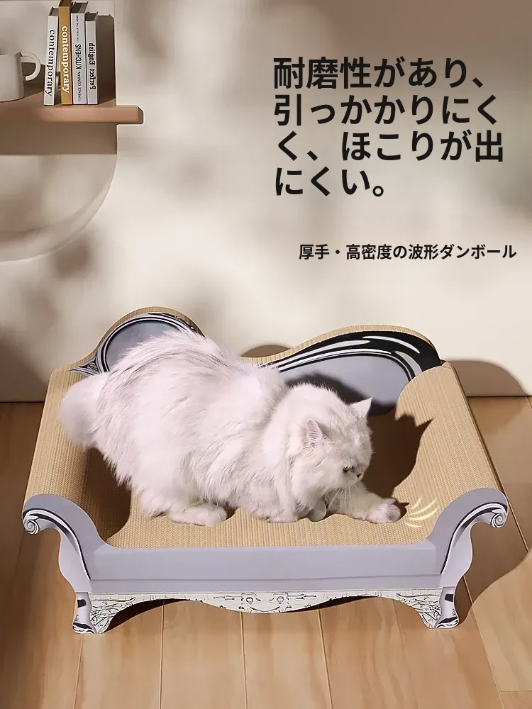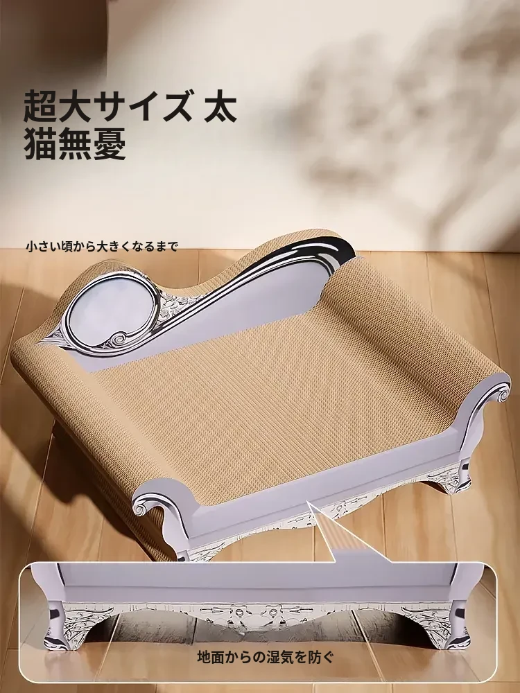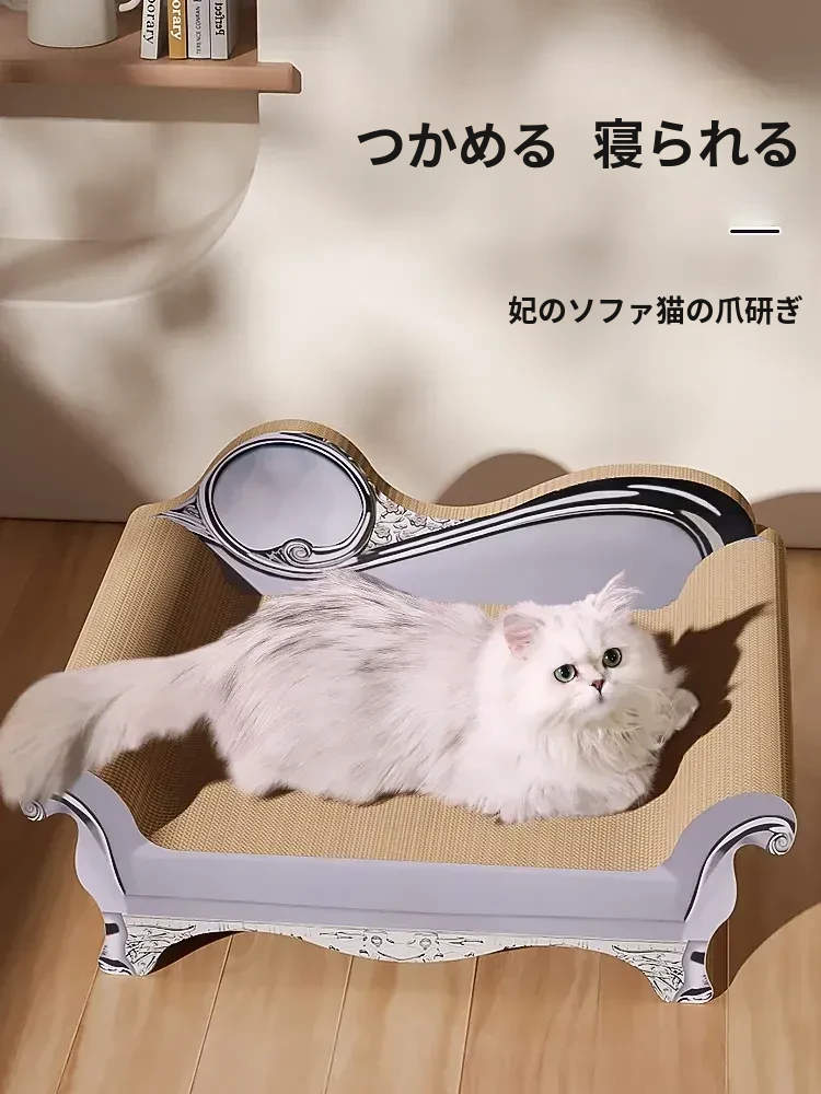 耐久性抜群!高級感溢れる貴妃椅子型キャットタワー、キャットグラブボード一体型で、猫ちゃんが安心してくつろげる特大サイズのソファ!刃物を使わずに爪を研げる、無駄なチップも出ないエコ設計。