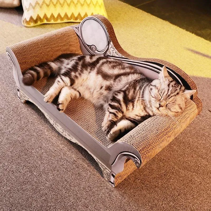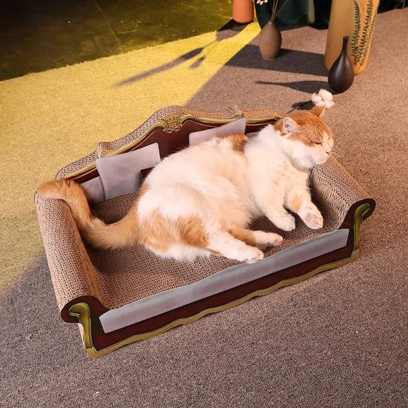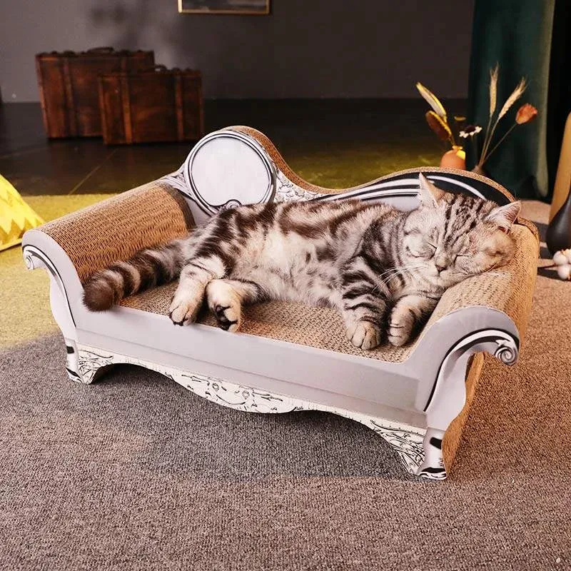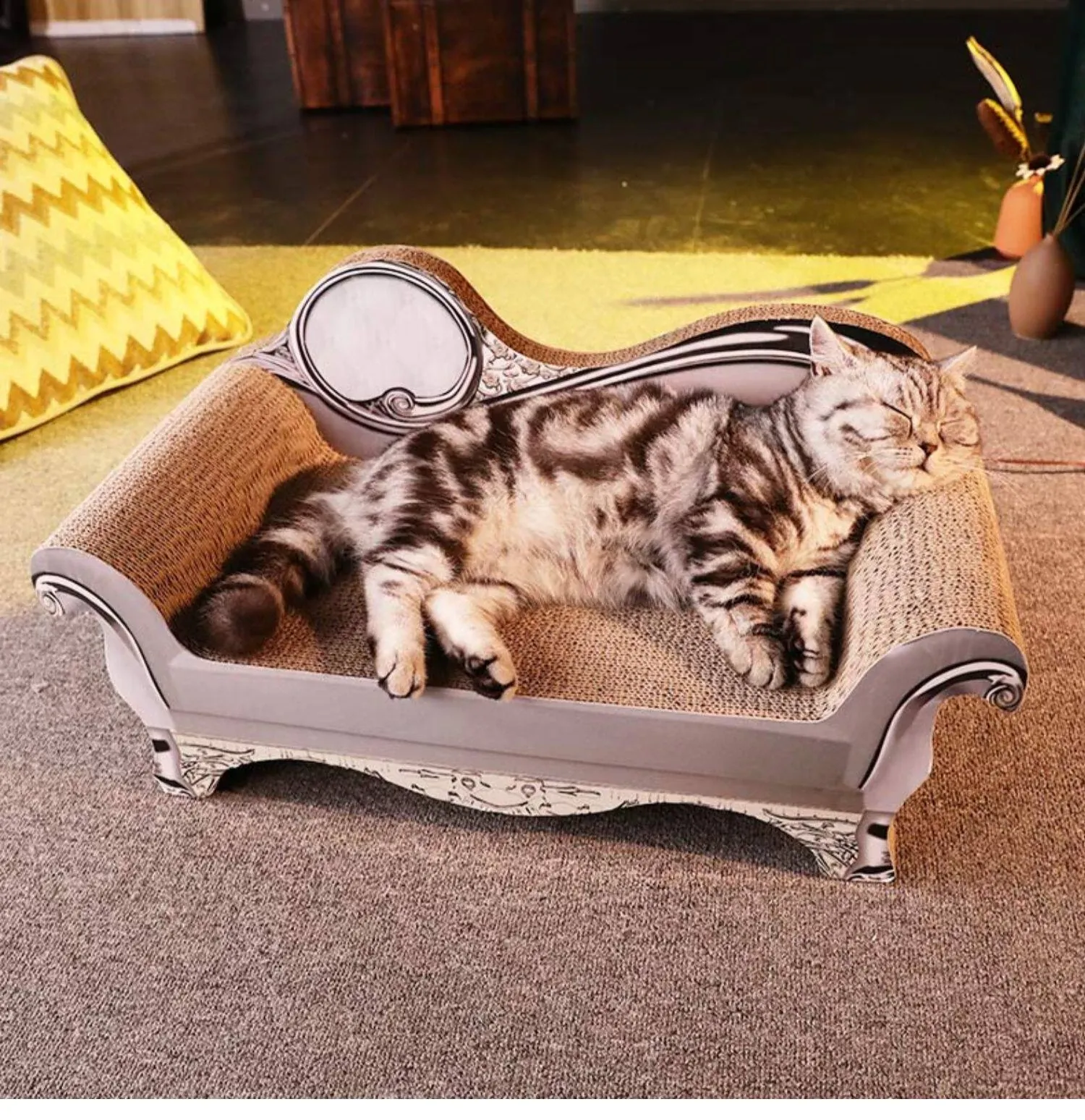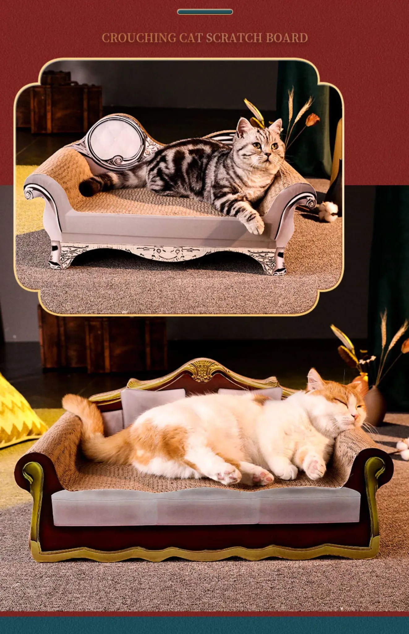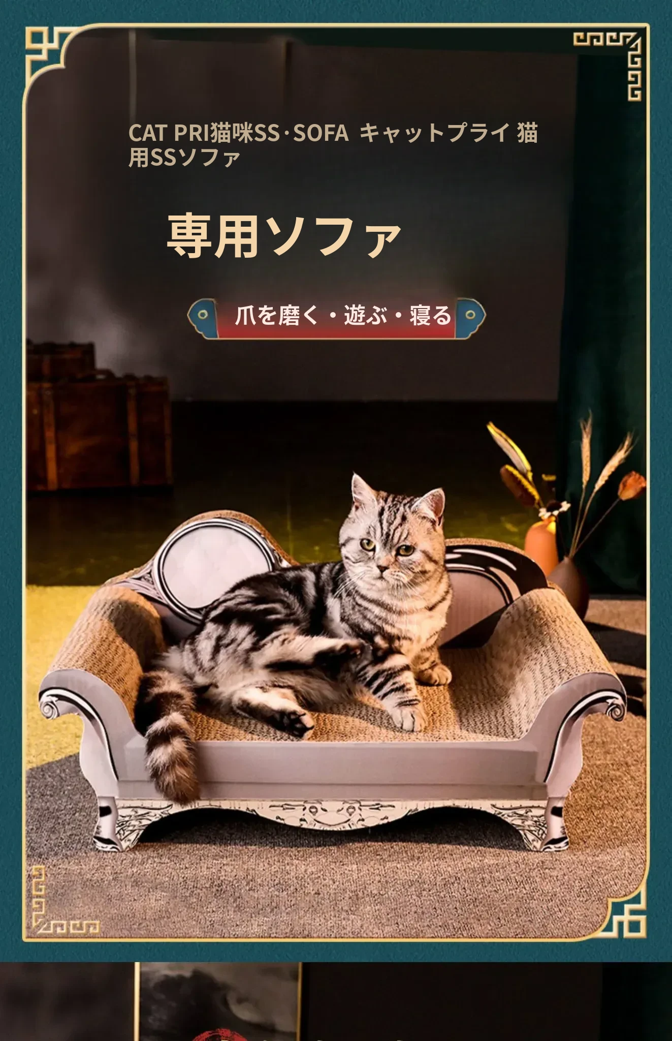 耐久性抜群!高級感溢れる貴妃椅子型キャットタワー、キャットグラブボード一体型で、猫ちゃんが安心してくつろげる特大サイズのソファ!刃物を使わずに爪を研げる、無駄なチップも出ないエコ設計。