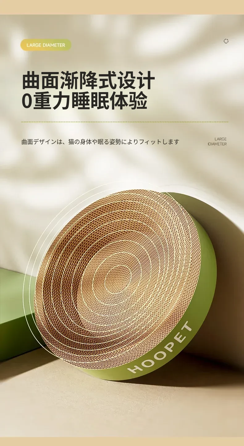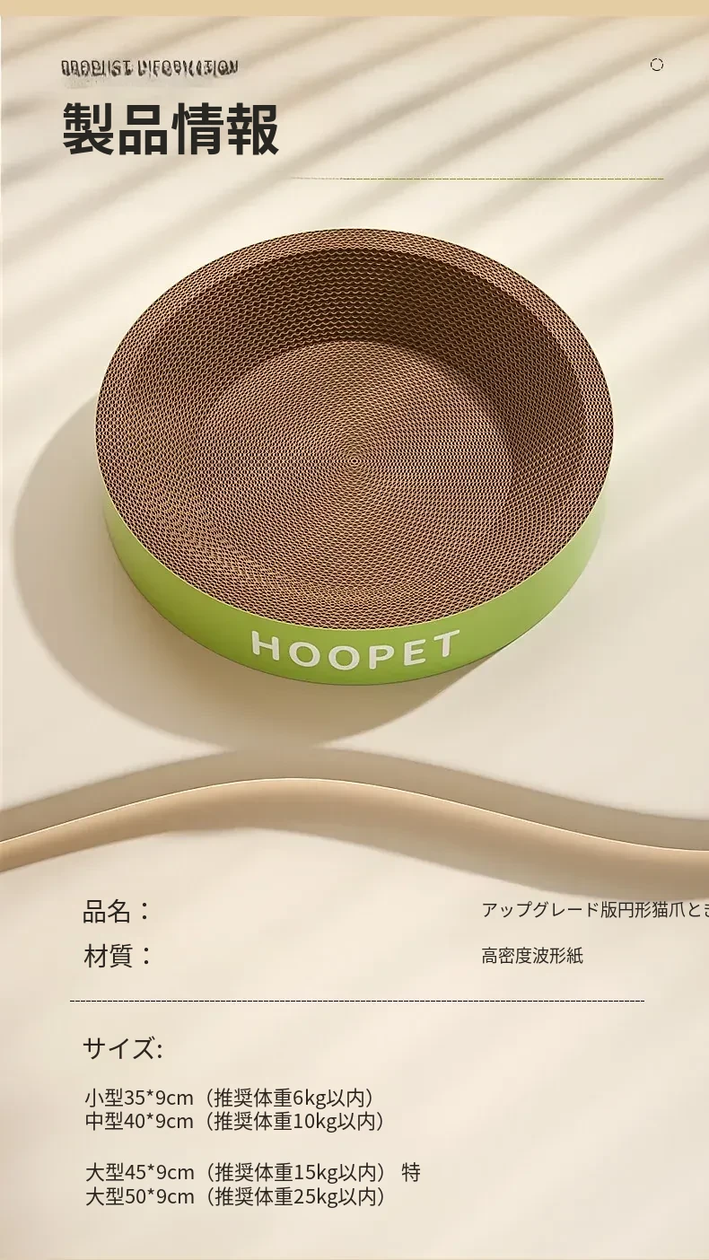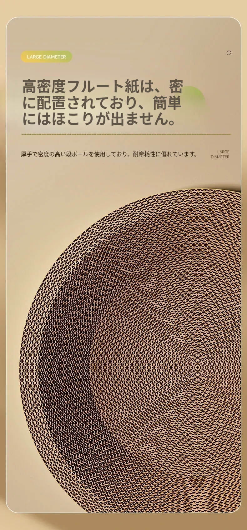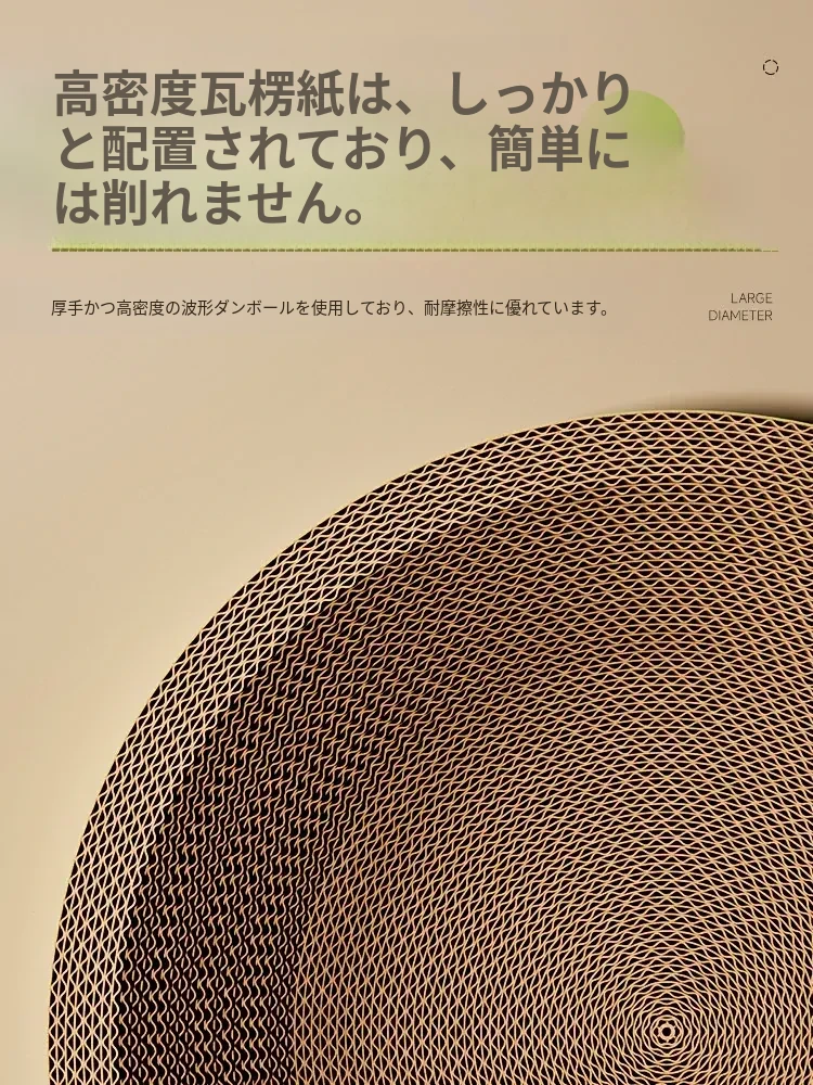 耐久性抜群!猫が夢中になる丸型キャットタワー兼爪研ぎボード - 高密度波形紙使用、大型サイズで安定感抜群!お部屋のインテリアにも最適なデザインで、愛猫の快適空間を提供します。