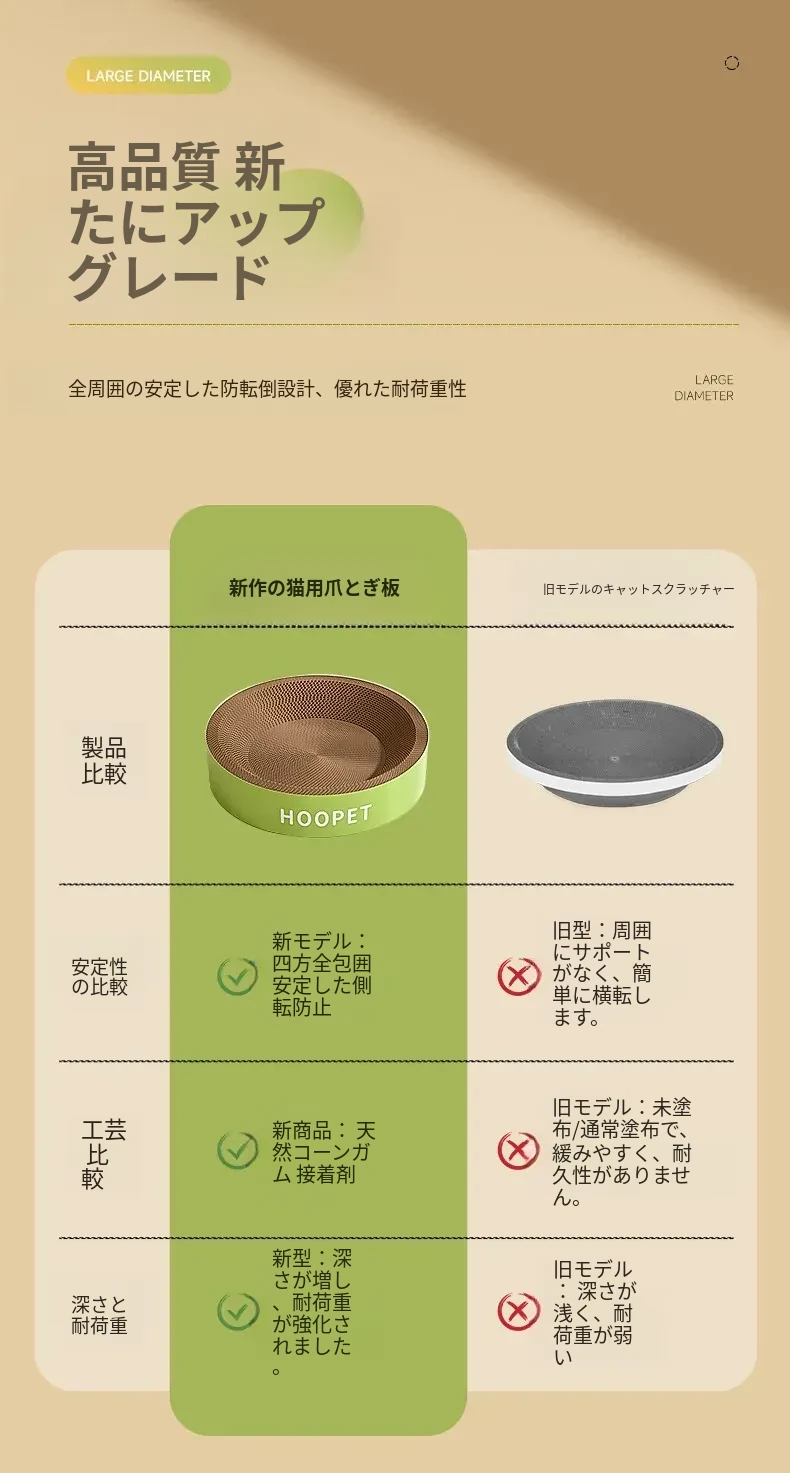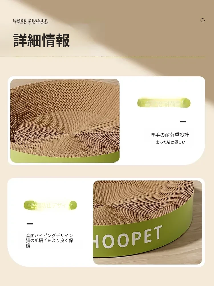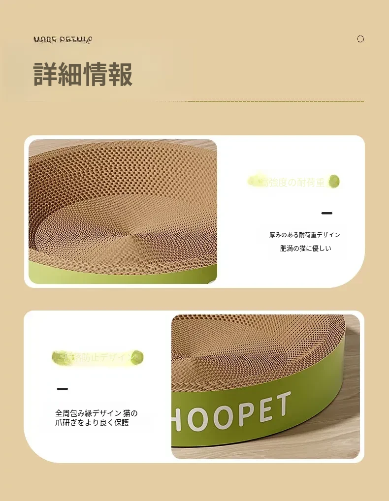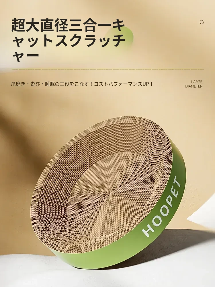 耐久性抜群!猫が夢中になる丸型キャットタワー兼爪研ぎボード - 高密度波形紙使用、大型サイズで安定感抜群!お部屋のインテリアにも最適なデザインで、愛猫の快適空間を提供します。