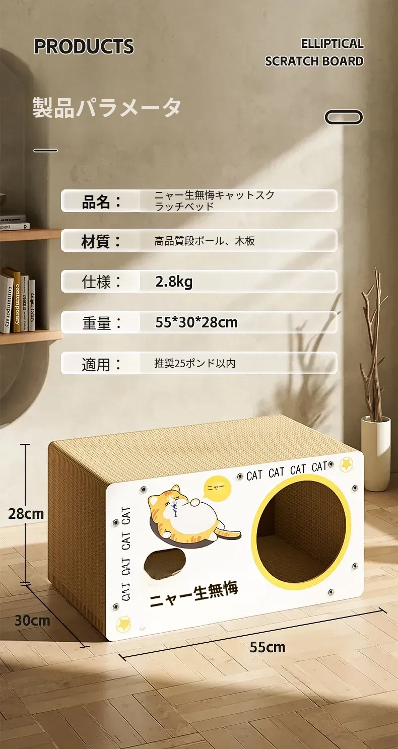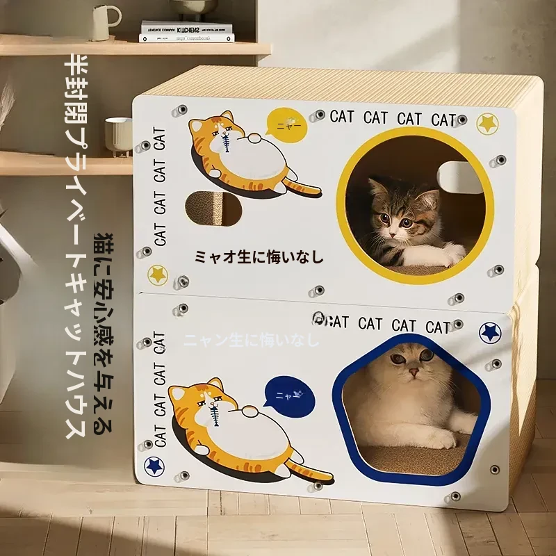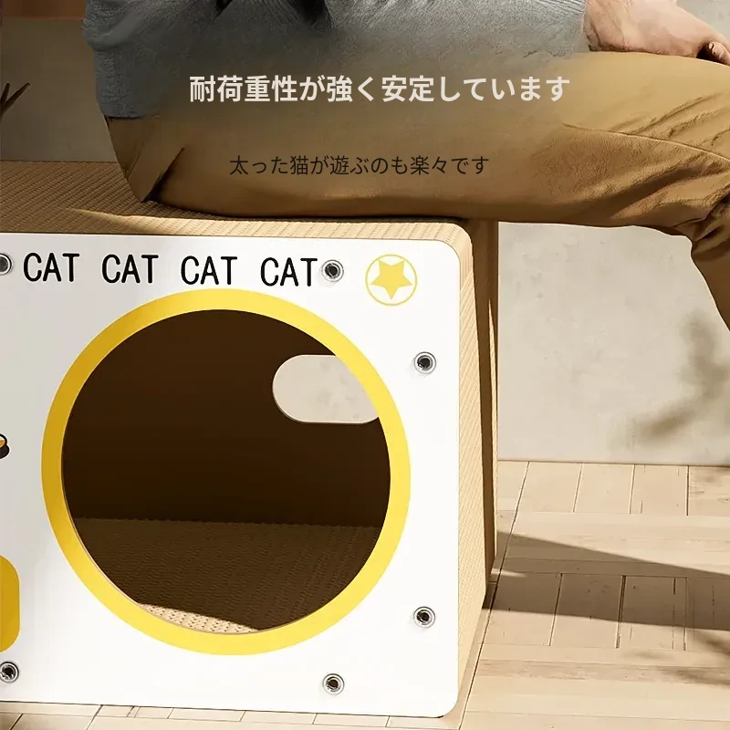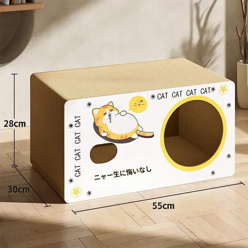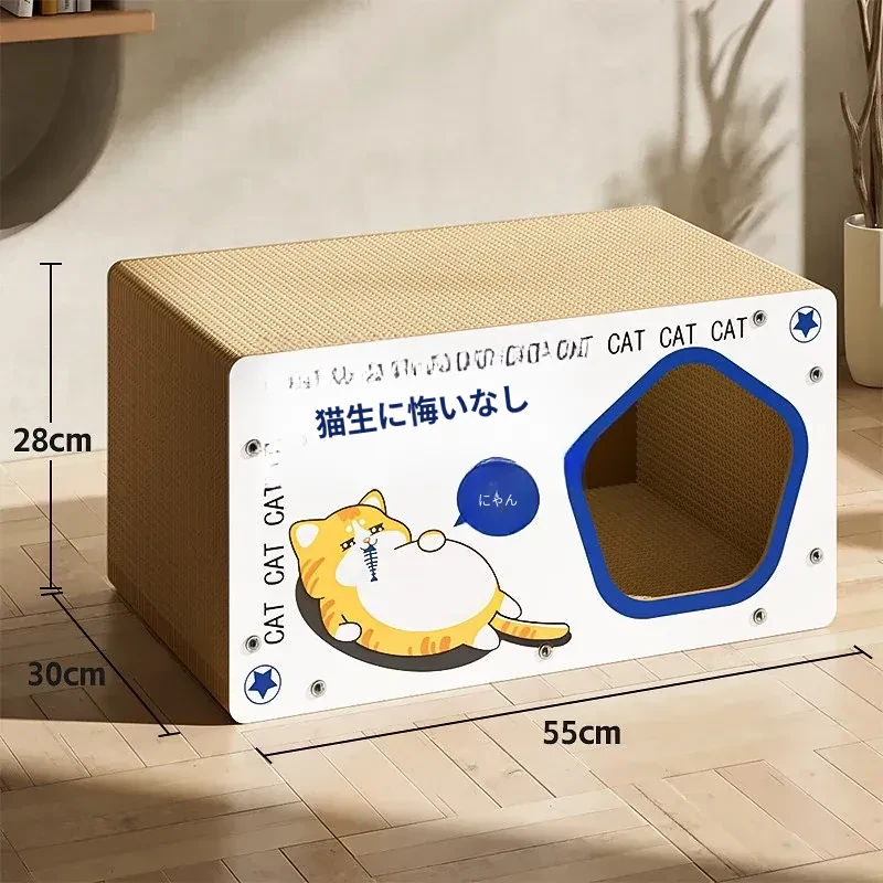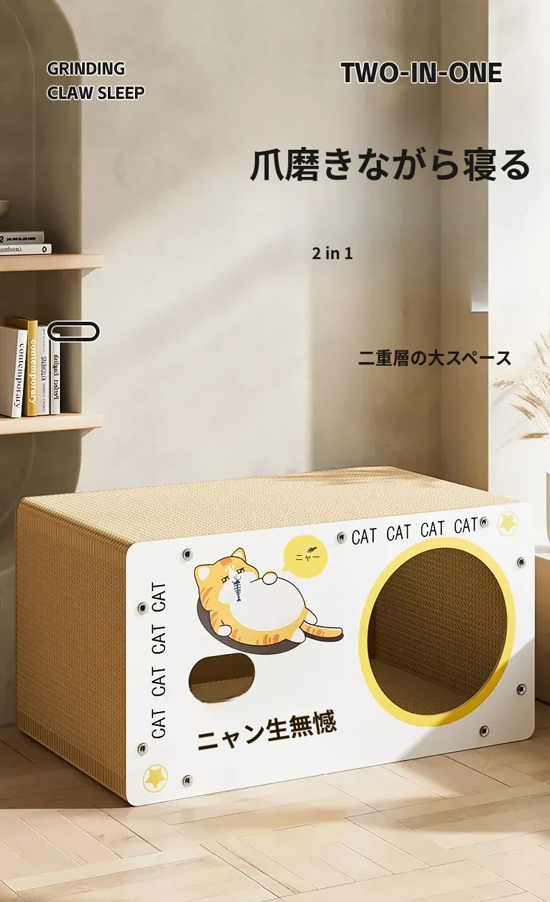 耐久性抜群!ダブルレイヤーの段ボールキャットハウス&爪研ぎボード - 大型猫に最適な、毛が抜けない猫用ベッド!快適で遊び心満載、愛猫にぴったりのアイテムです!