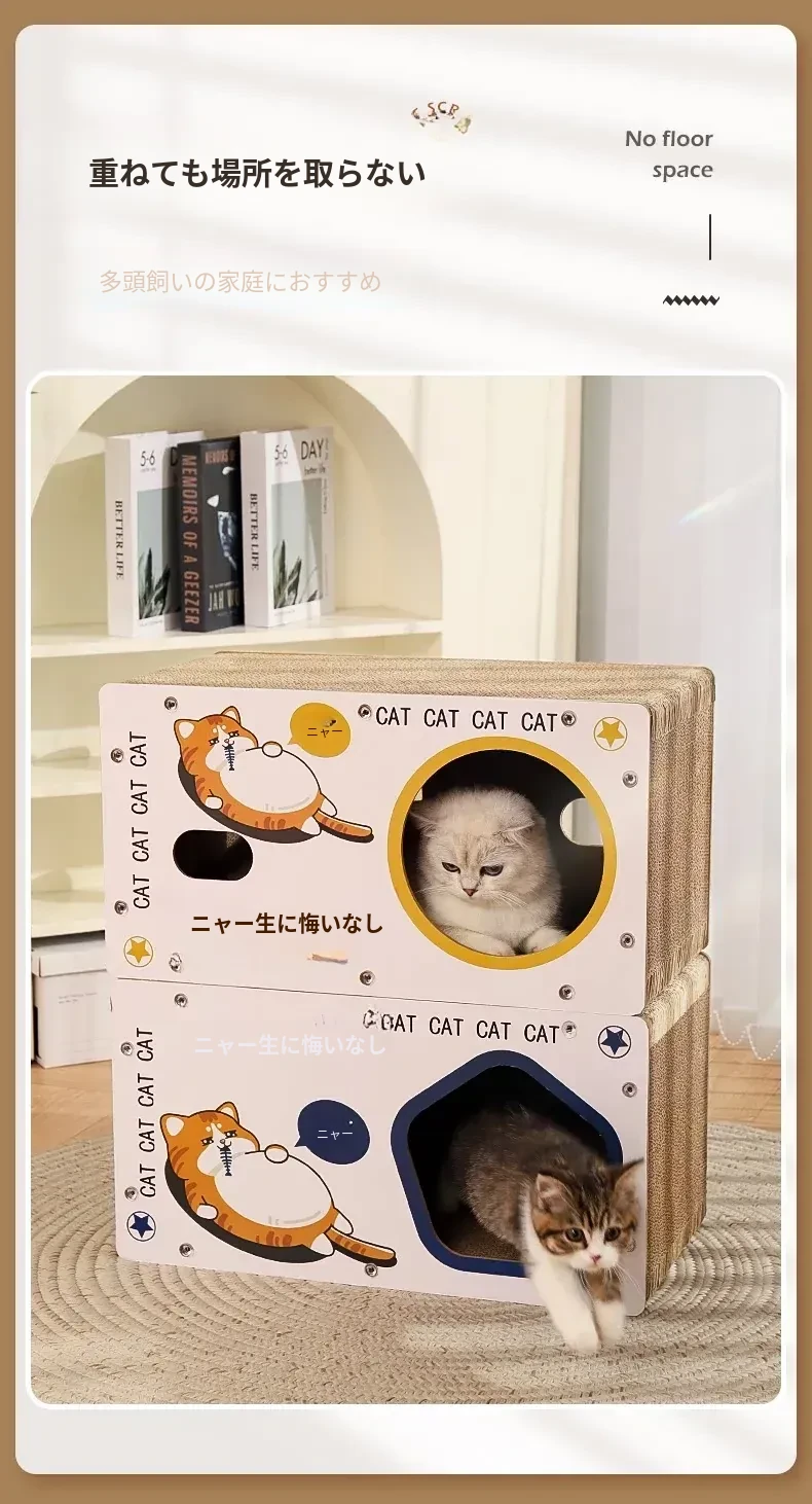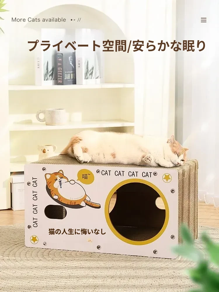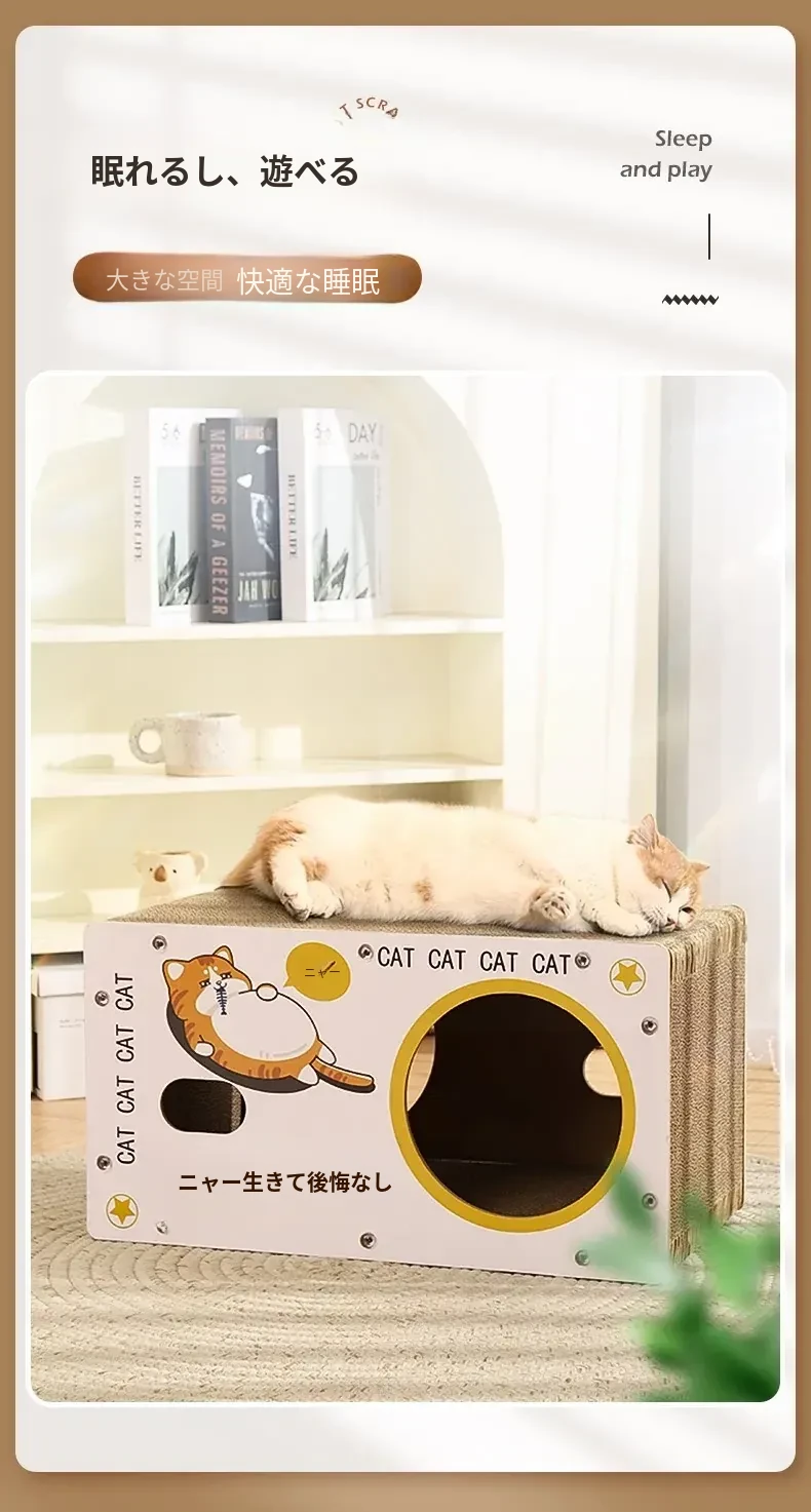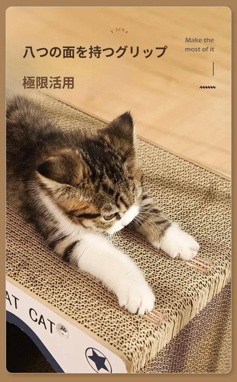 耐久性抜群の立て式キャットクローラー!脱落しない段ボール製、猫ちゃんの隠れ家と爪研ぎが一体に。遊びながら爪を研ぎ、安心してくつろげるスペースを提供します!