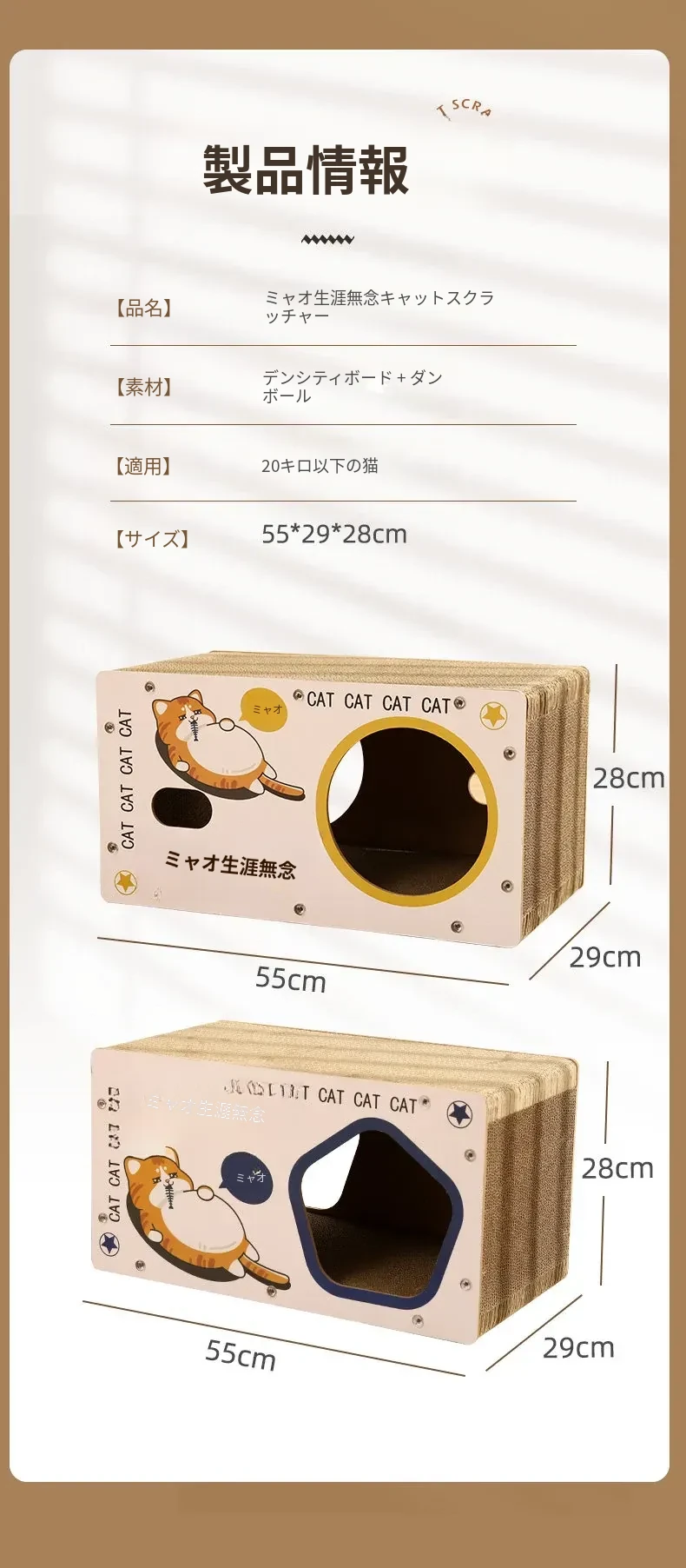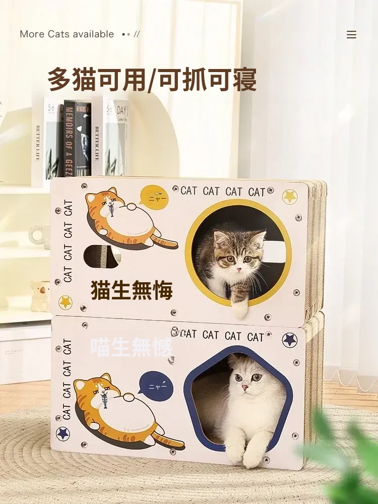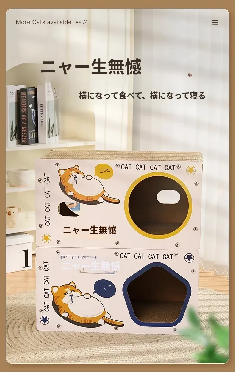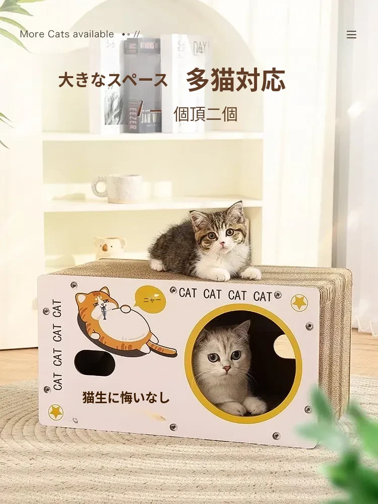 耐久性抜群の立て式キャットクローラー!脱落しない段ボール製、猫ちゃんの隠れ家と爪研ぎが一体に。遊びながら爪を研ぎ、安心してくつろげるスペースを提供します!