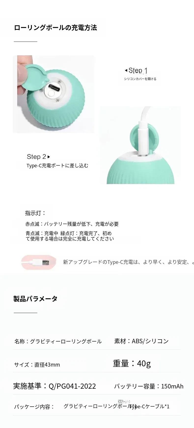 電動猫おもちゃ 猫じゃらし 小猫用 自動おもちゃ スマートローリングボール 猫のストレス解消に最適!自動で楽しく遊べる猫の必需品!