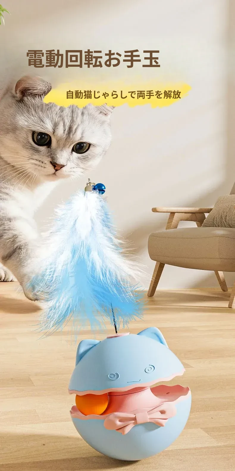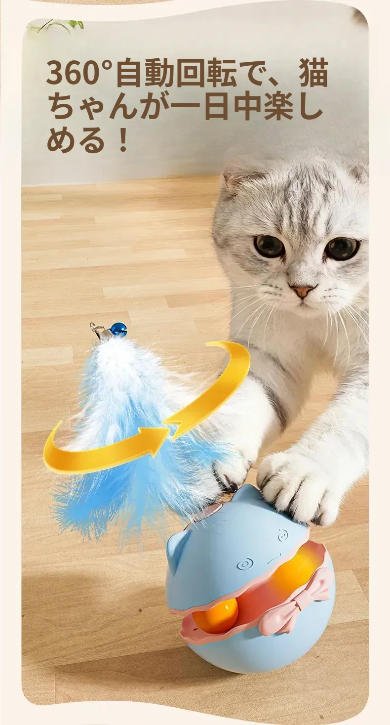 電動キャットトイ・ふらふらおもちゃで楽しむ!子猫や成猫に最適な自動おもちゃ、ボールとフェザーで猫ちゃんを夢中にさせる解消神器!