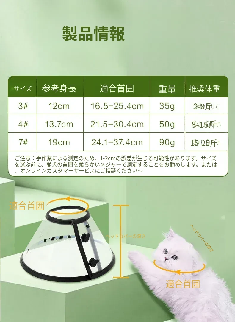 3#:首周り16.5-25.4cmに適合(推奨体重2-8斤)
