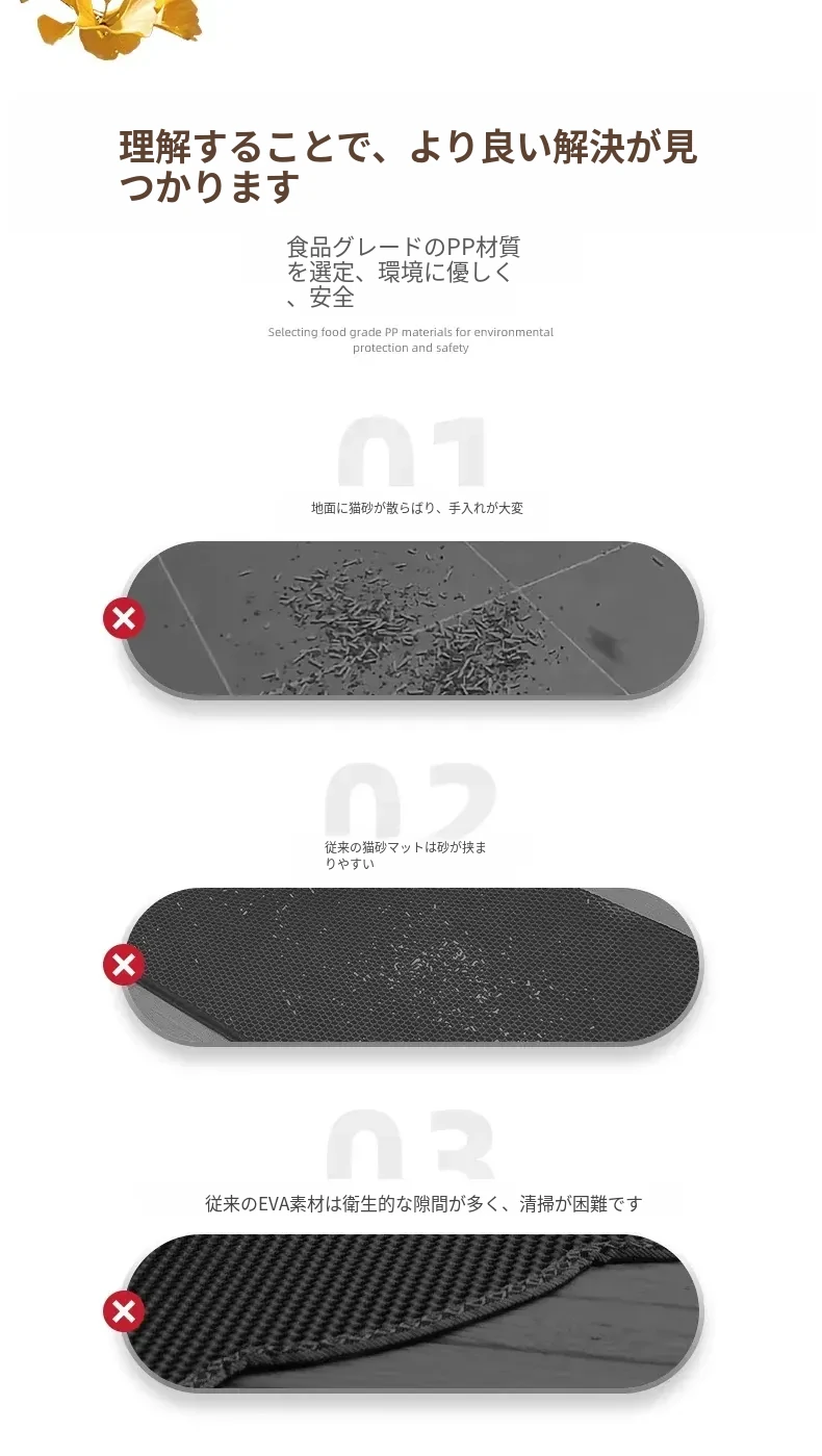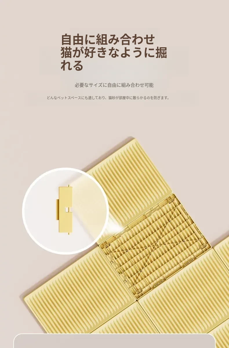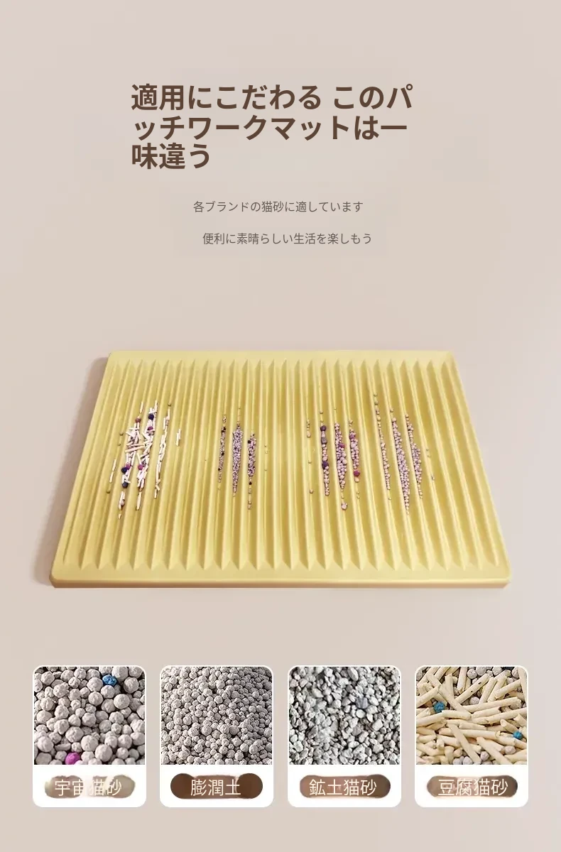 猫砂を外に持ち出さない!洗濯可能で自由に組み合わせ可能な超大サイズの防砂マット。こぼれた砂をしっかりキャッチして、清潔な生活空間を実現!