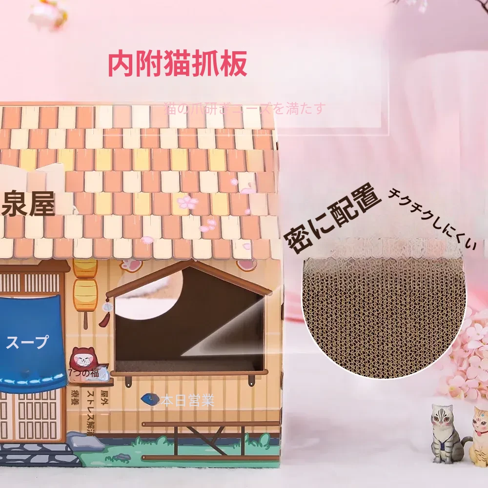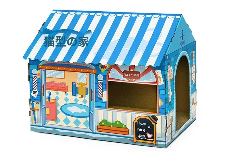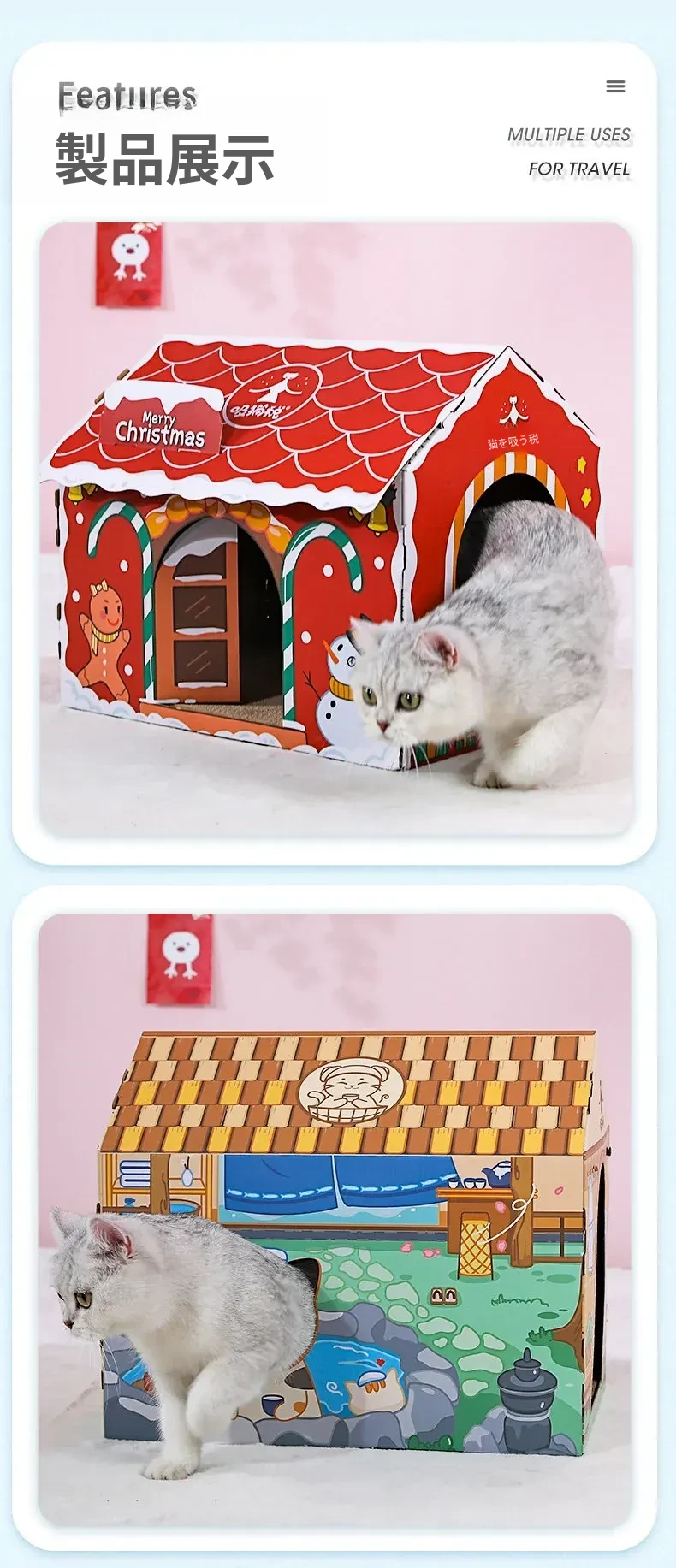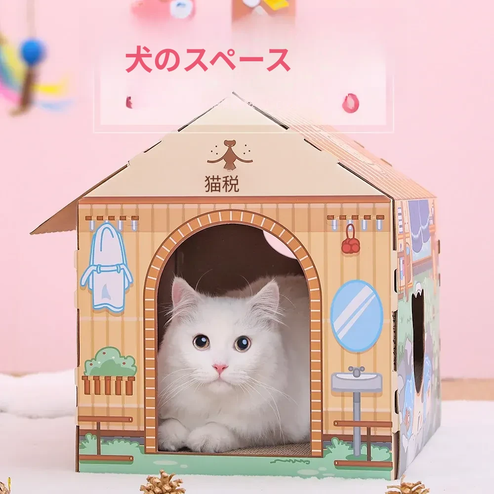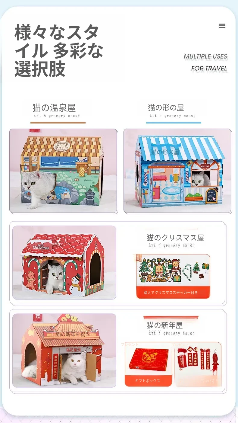 クリスマス猫爪研ぎ&キャットハウス一体型特大サイズ!立てられる段ボールキャットハウス、猫ちゃんの楽しい遊び場に最適なボックスです!