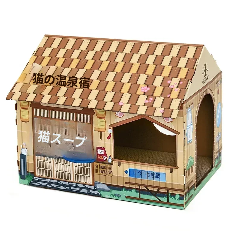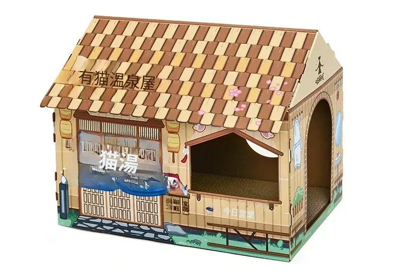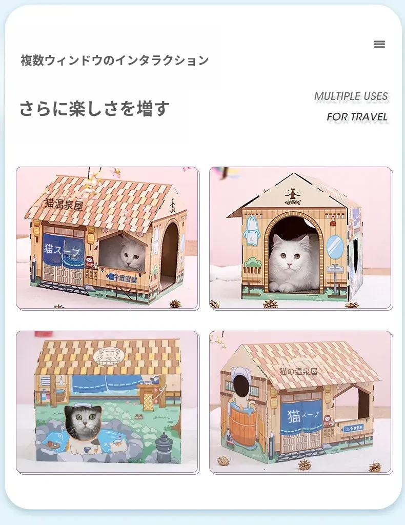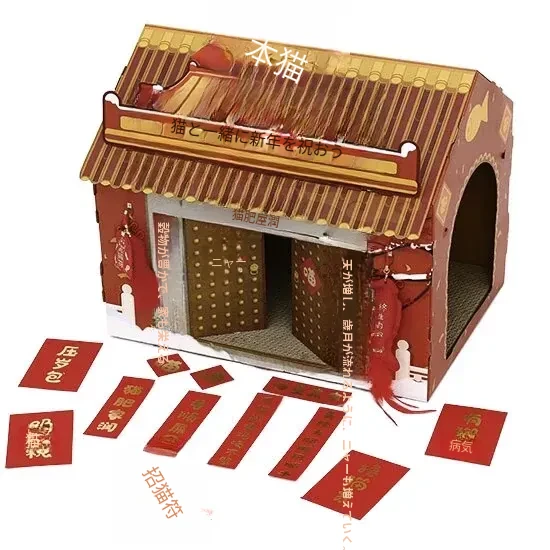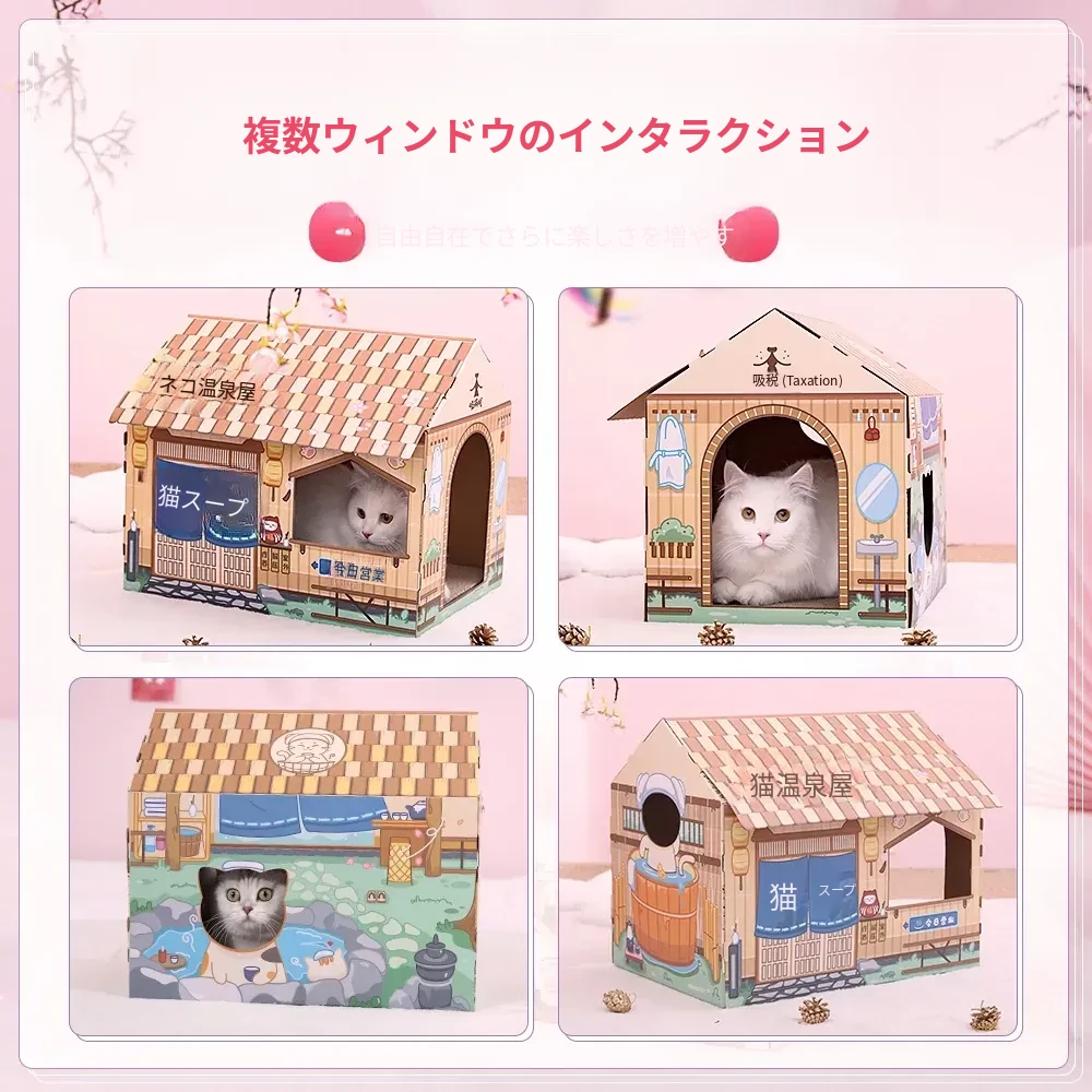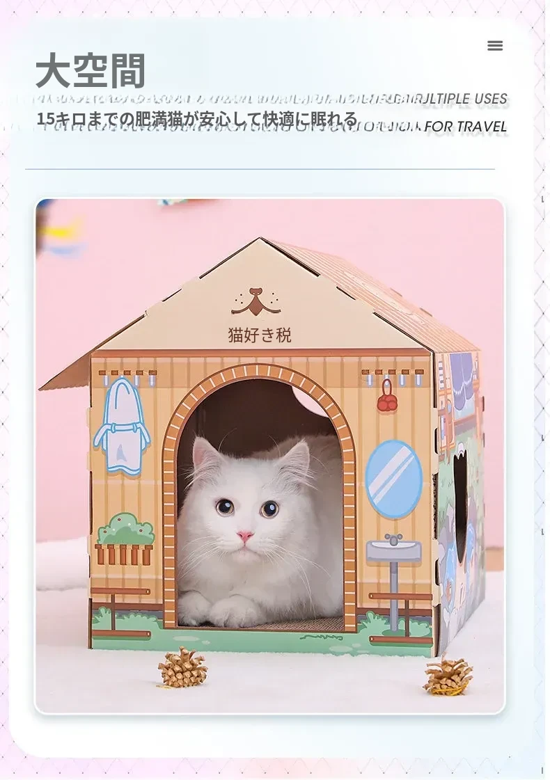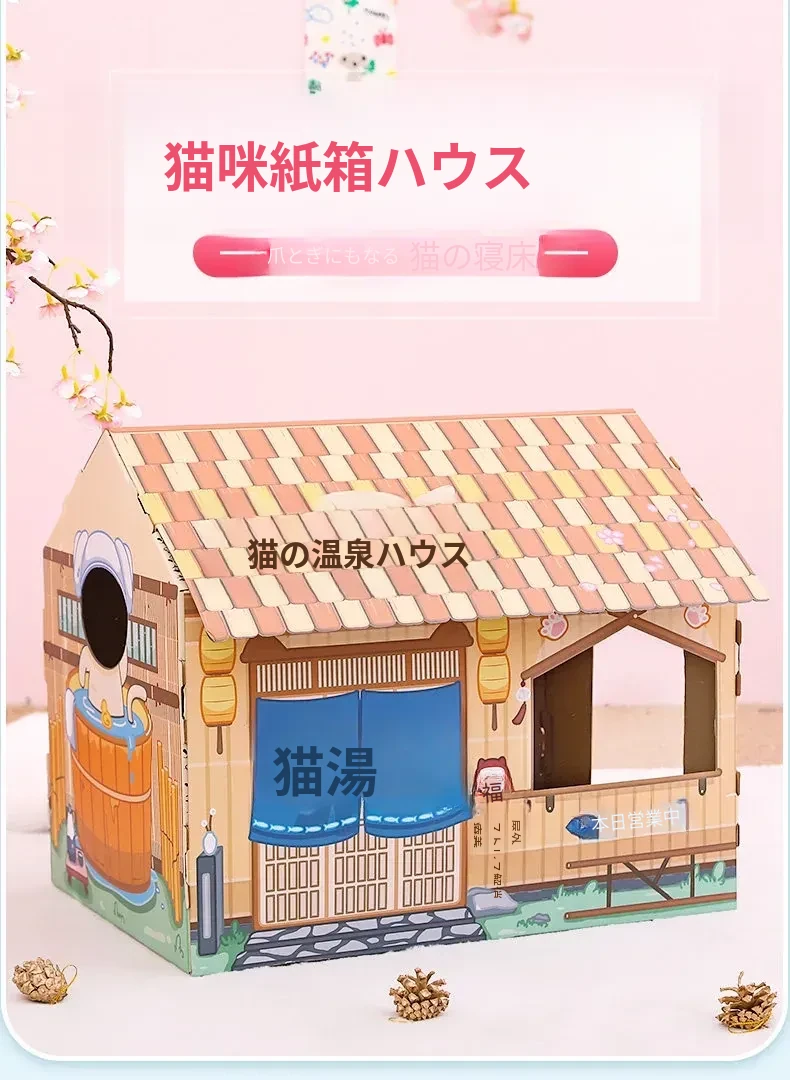 クリスマス猫爪研ぎ&キャットハウス一体型特大サイズ!立てられる段ボールキャットハウス、猫ちゃんの楽しい遊び場に最適なボックスです!