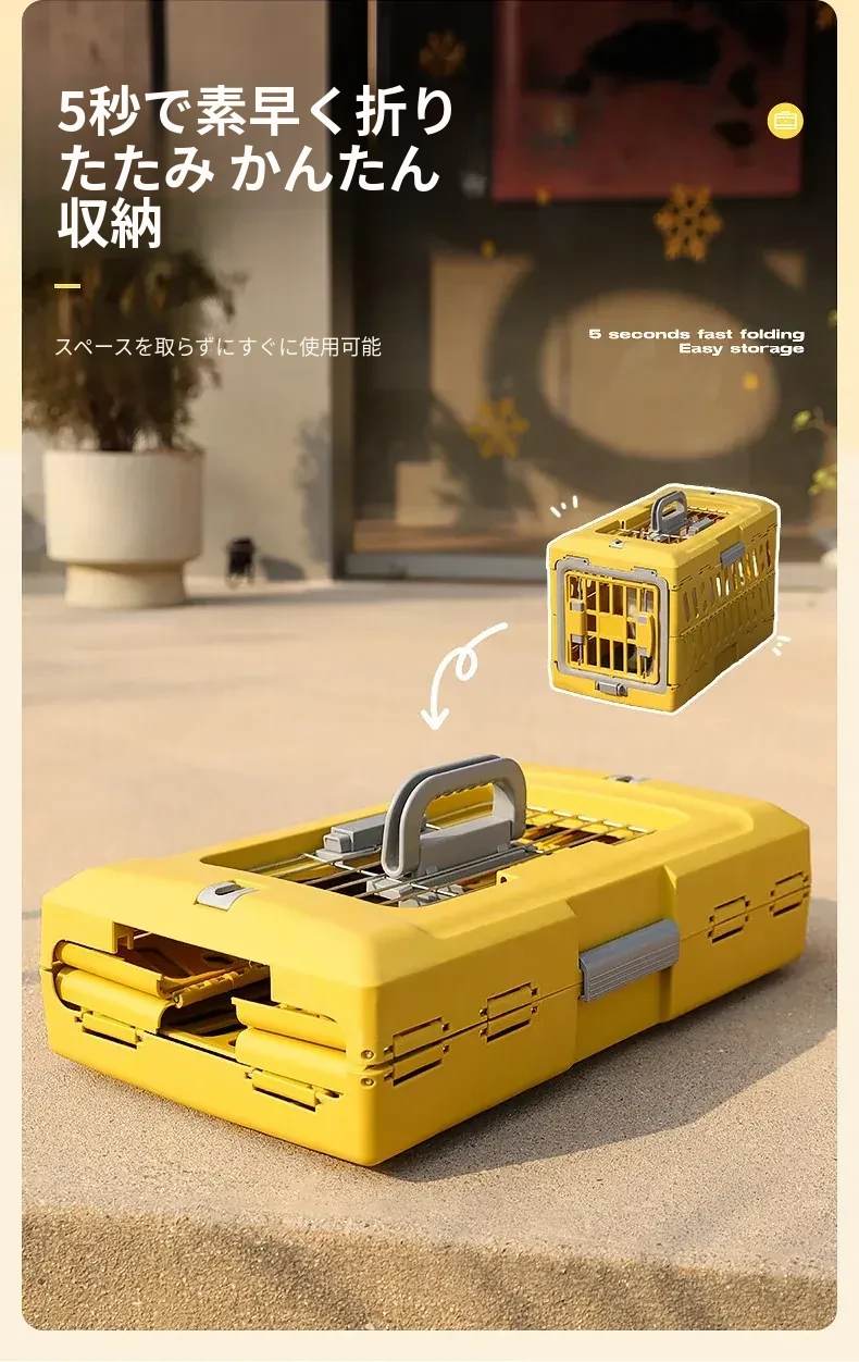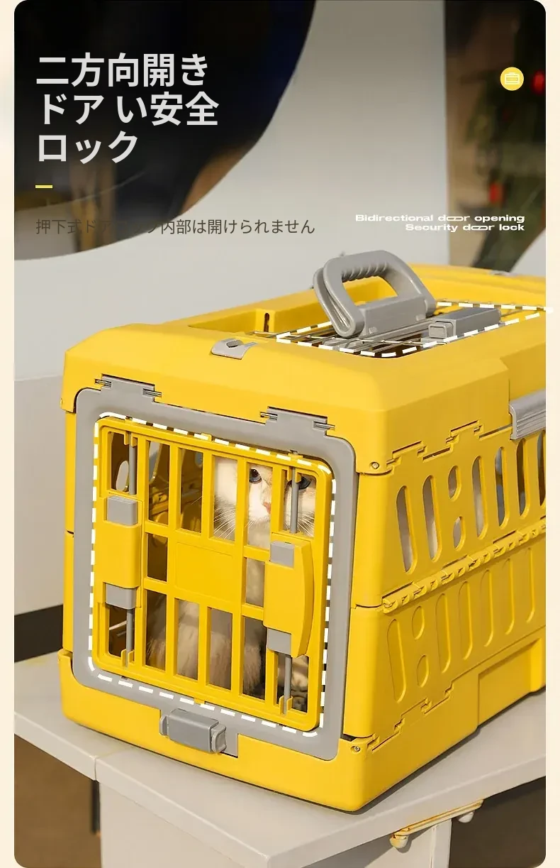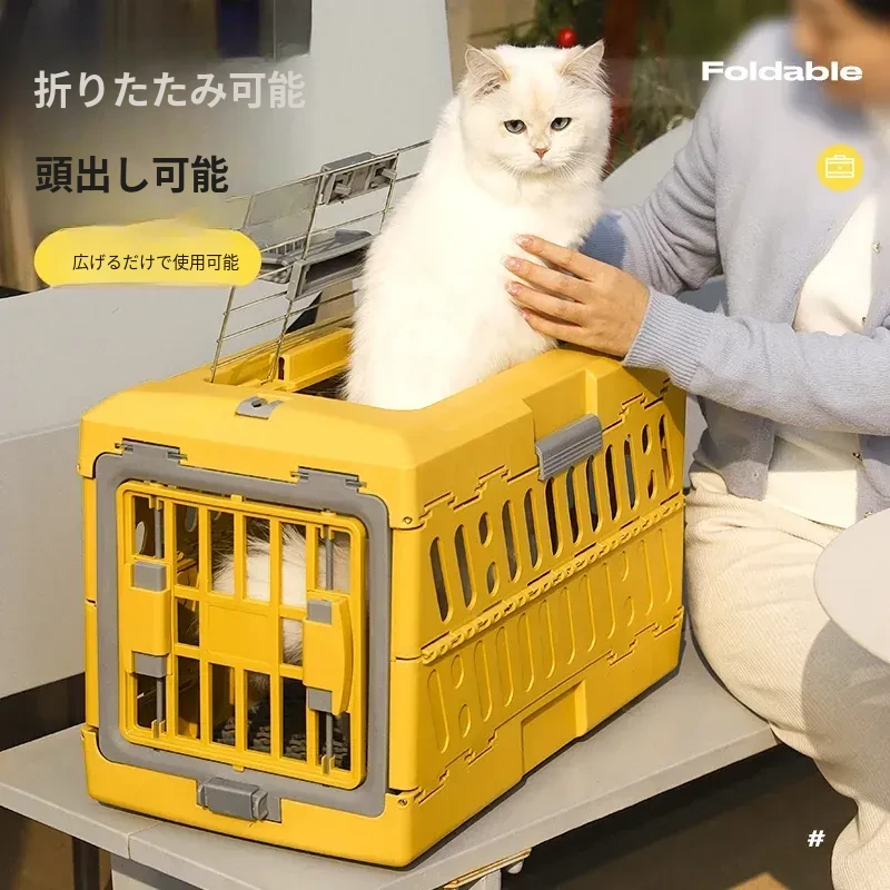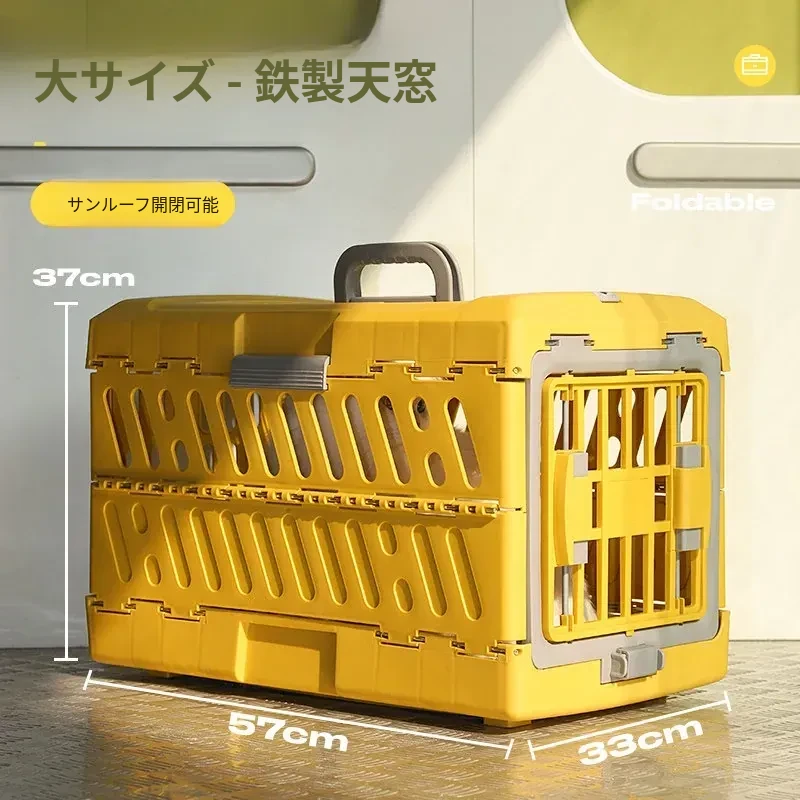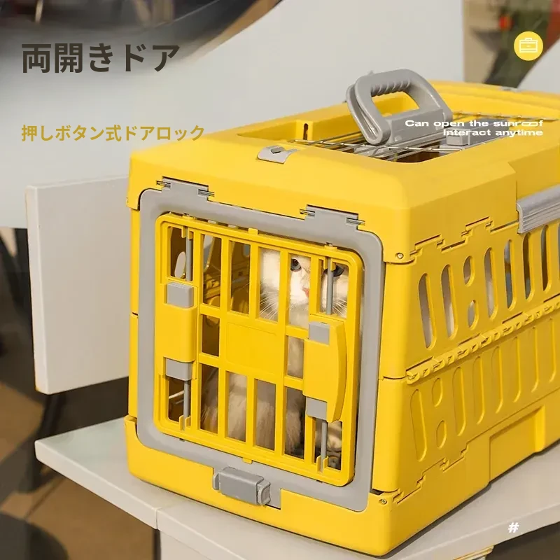折りたたみ式ペットキャリーケース - 猫の宇宙船!お出かけに最適な天窓付きで、車にもぴったりフィット。愛猫と一緒に快適な旅を楽しもう!