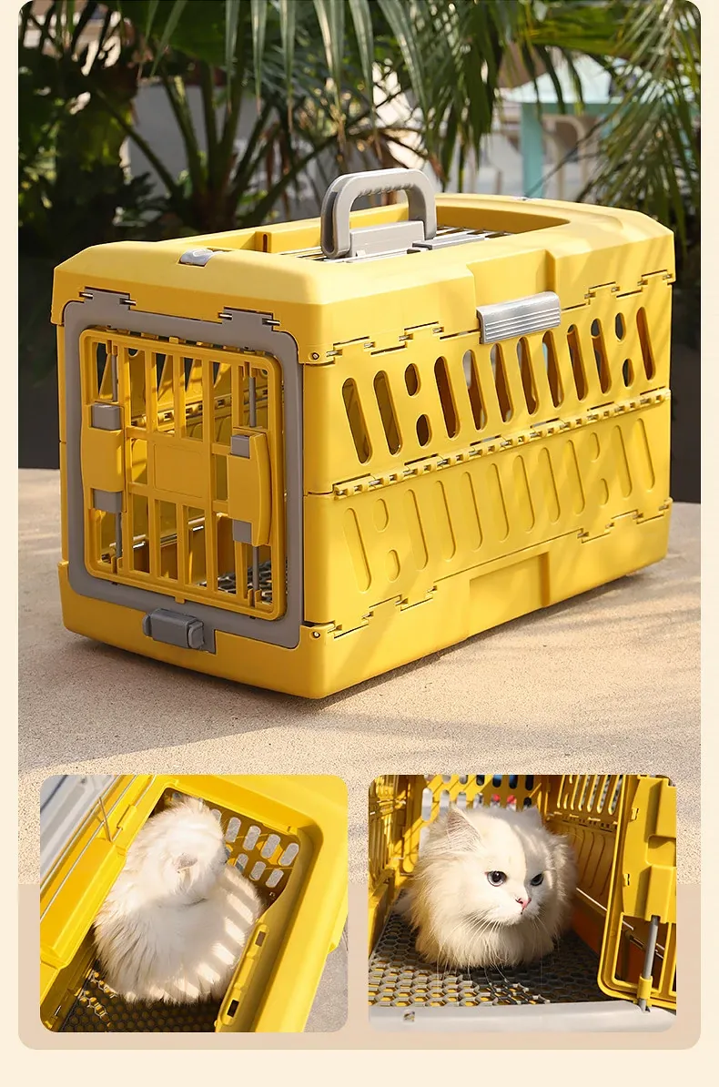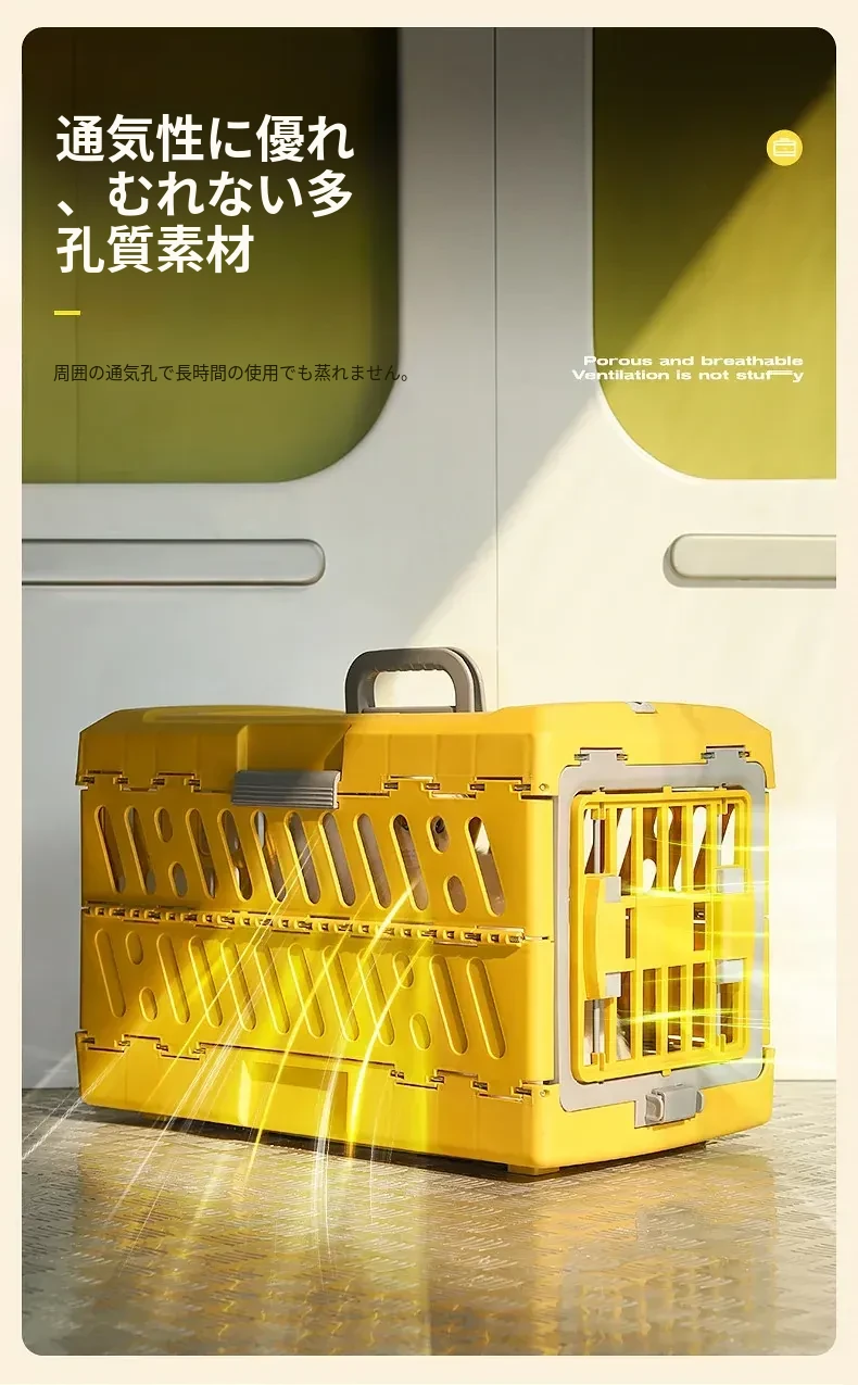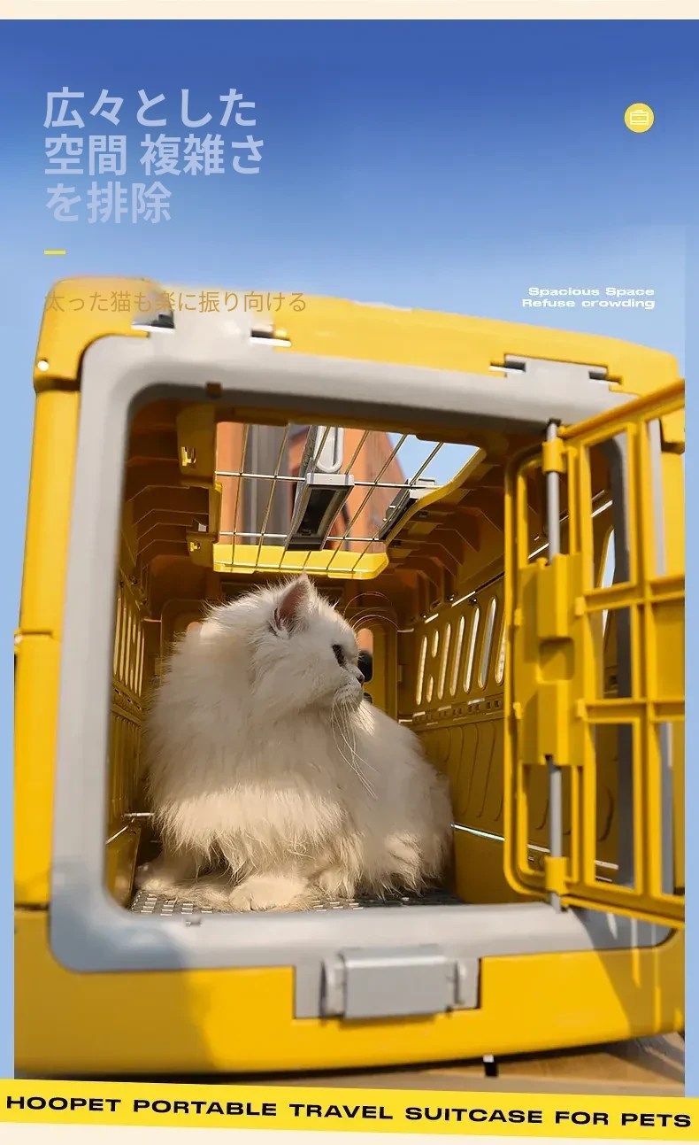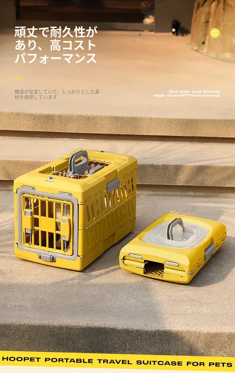 折りたたみ式ペットキャリーケース - 猫の宇宙船!お出かけに最適な天窓付きで、車にもぴったりフィット。愛猫と一緒に快適な旅を楽しもう!