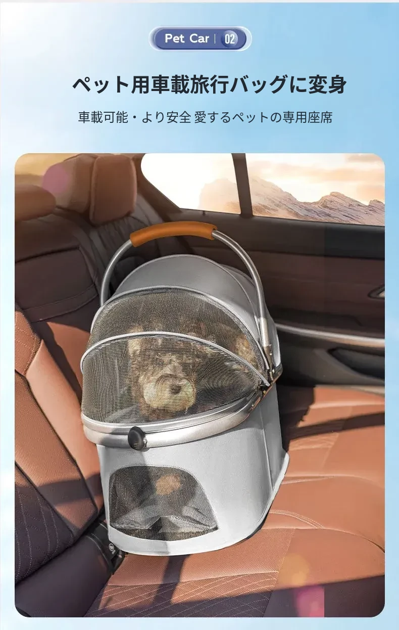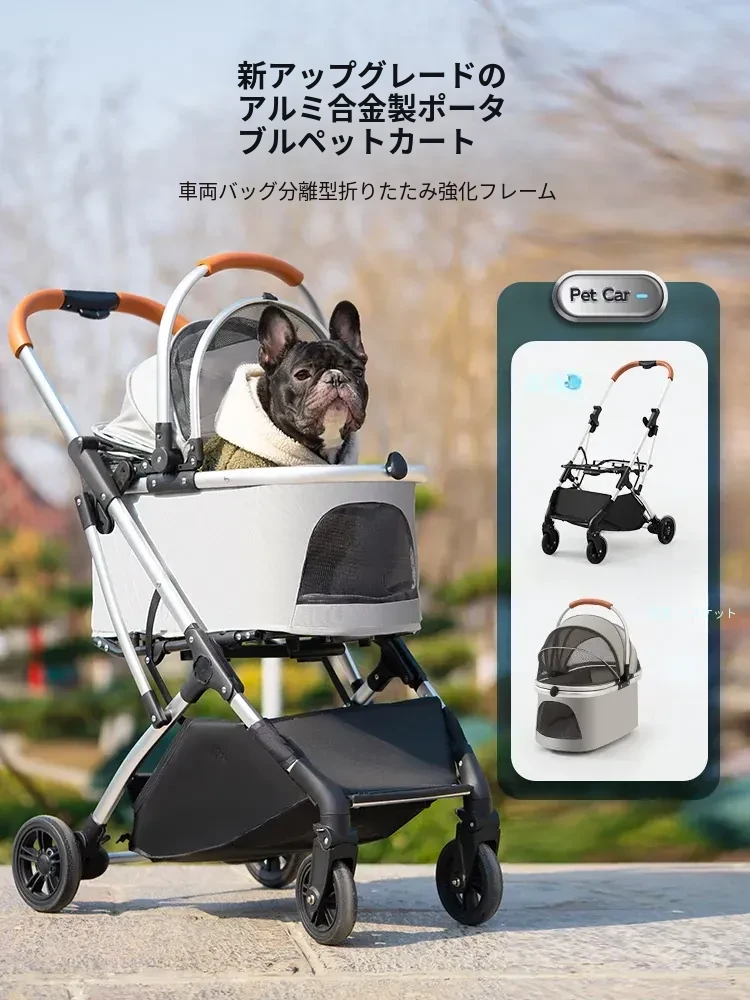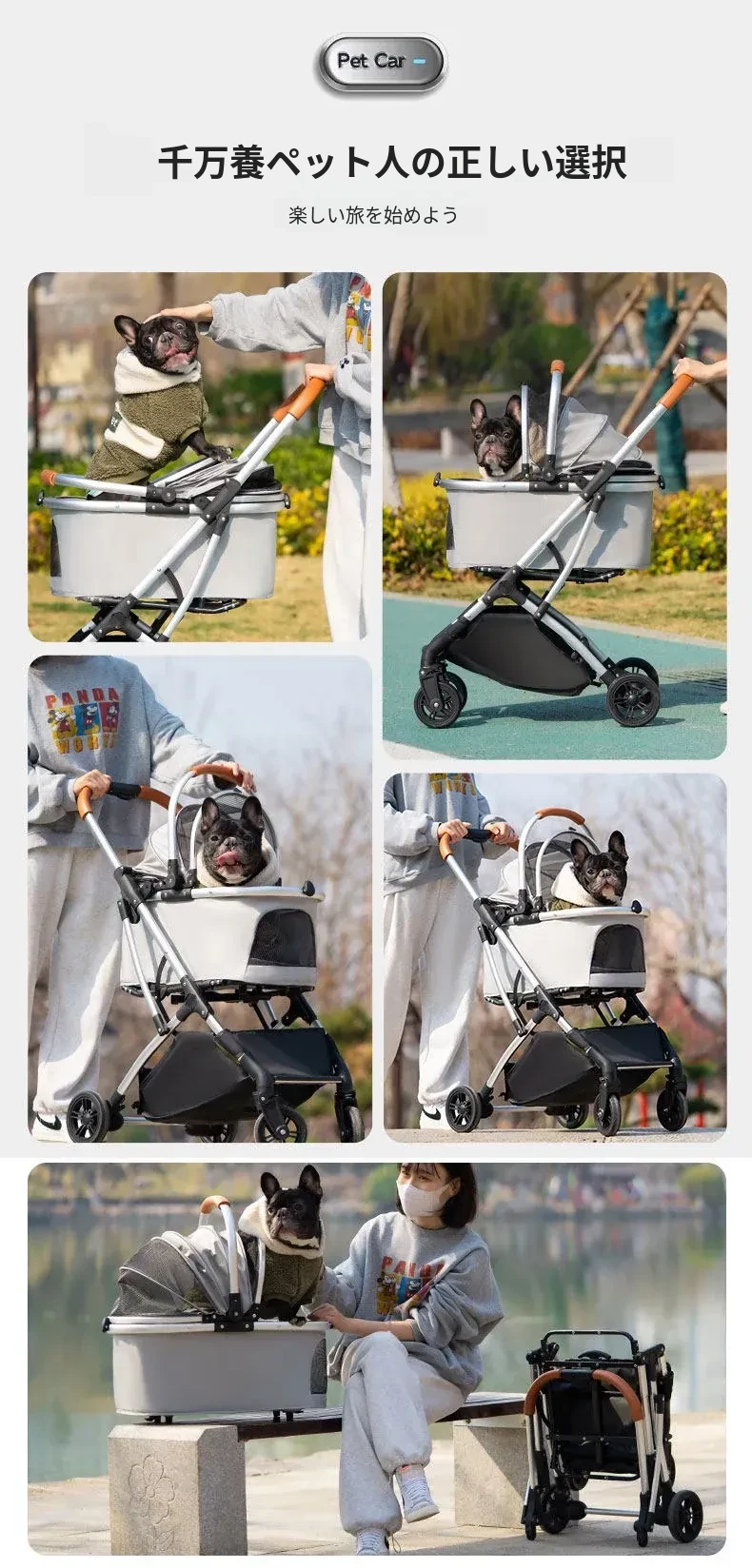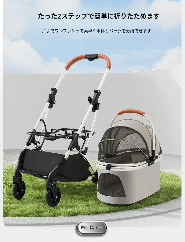ペットキャリーカート - 小型犬・猫用折りたたみ式ポータブルキャリー、軽量・大容量でお出かけも安心!快適な移動を提供します!