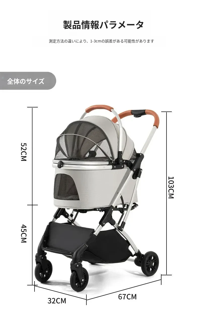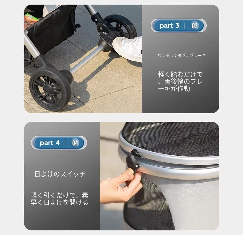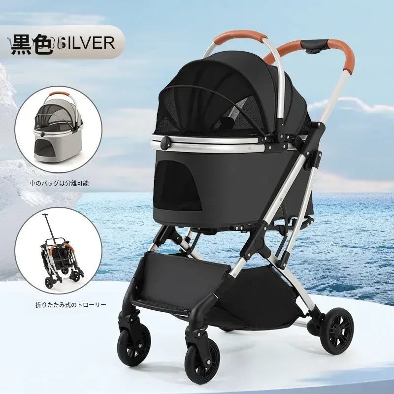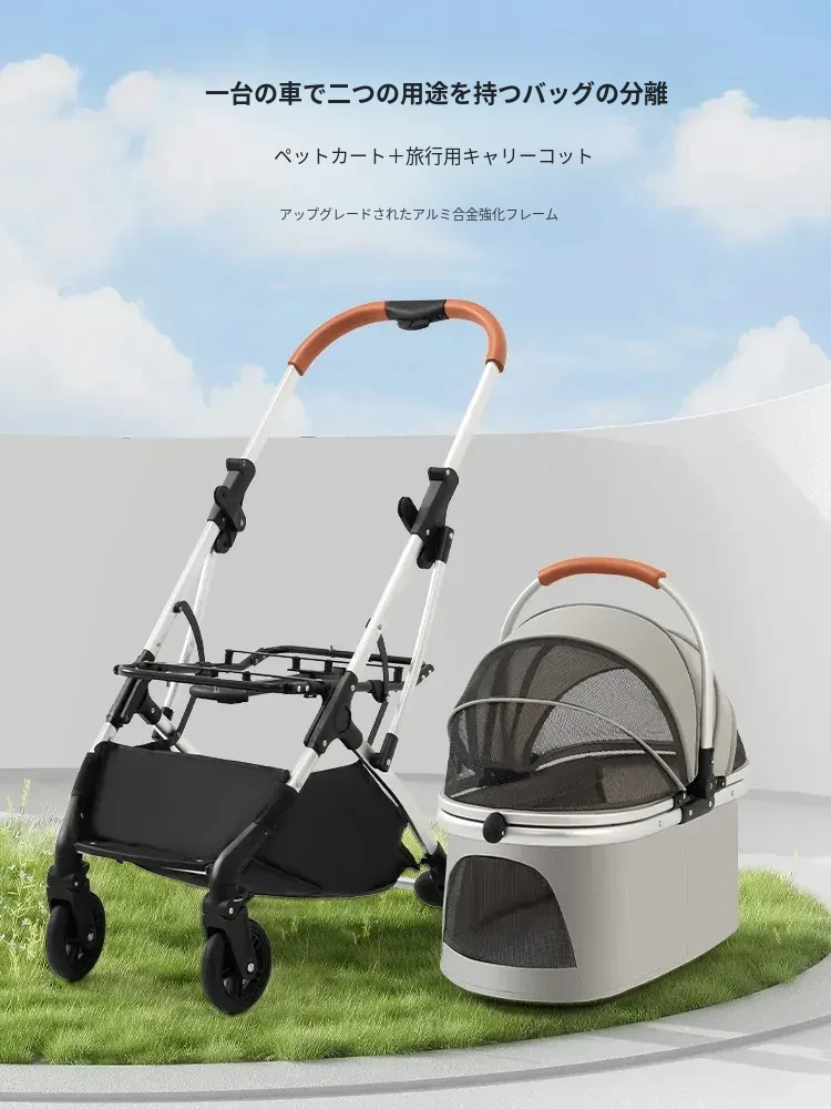 ペットキャリーカート - 小型犬・猫用折りたたみ式ポータブルキャリー、軽量・大容量でお出かけも安心!快適な移動を提供します!