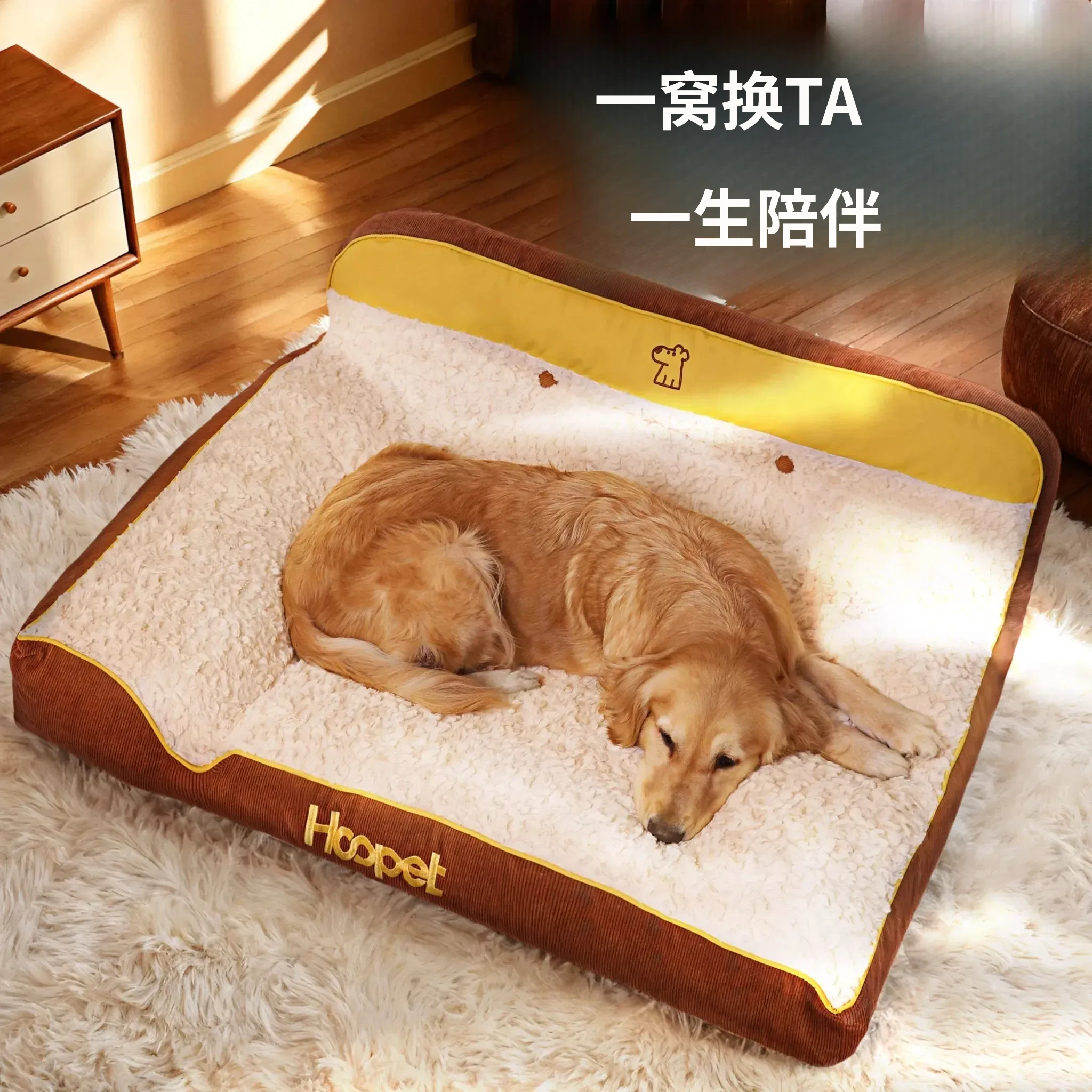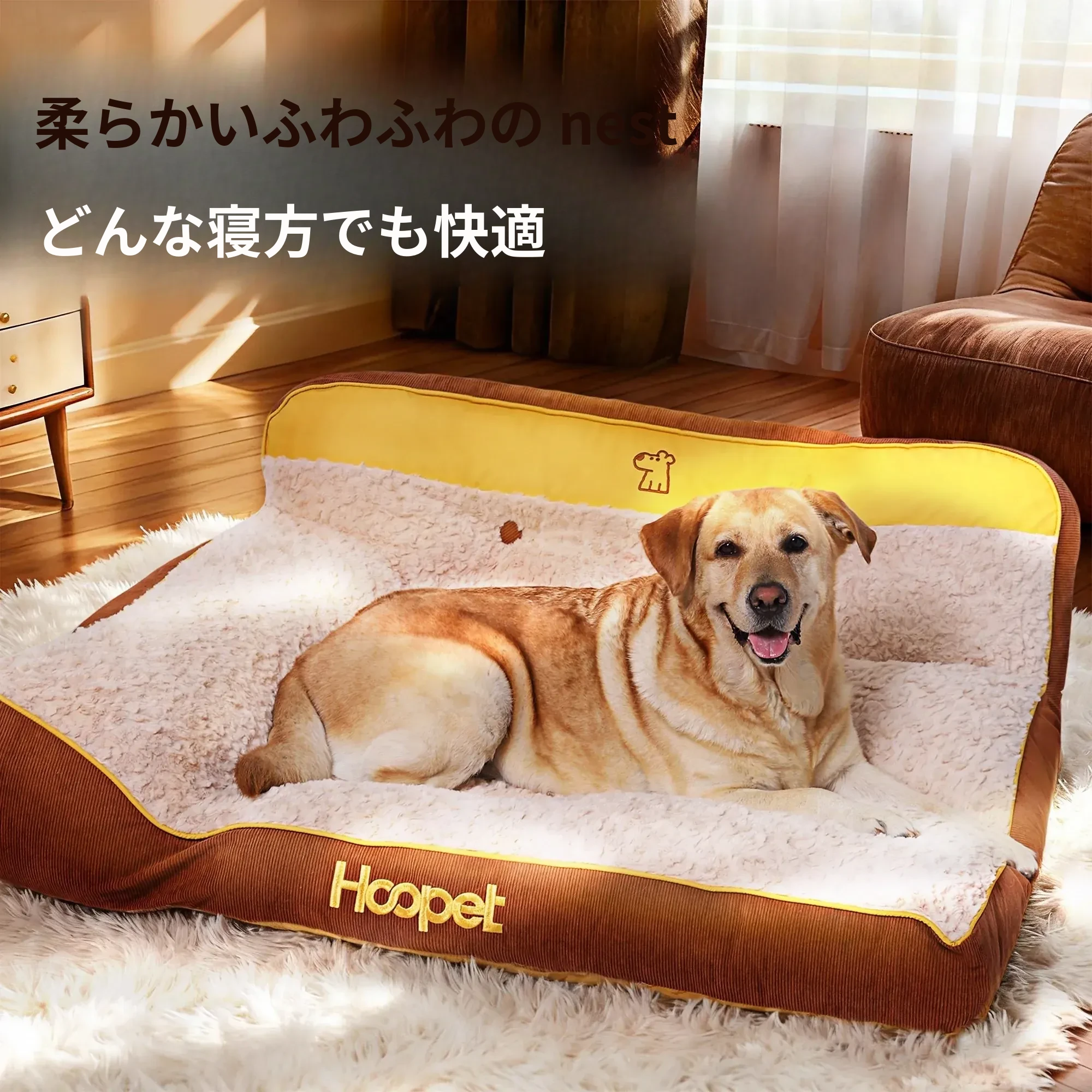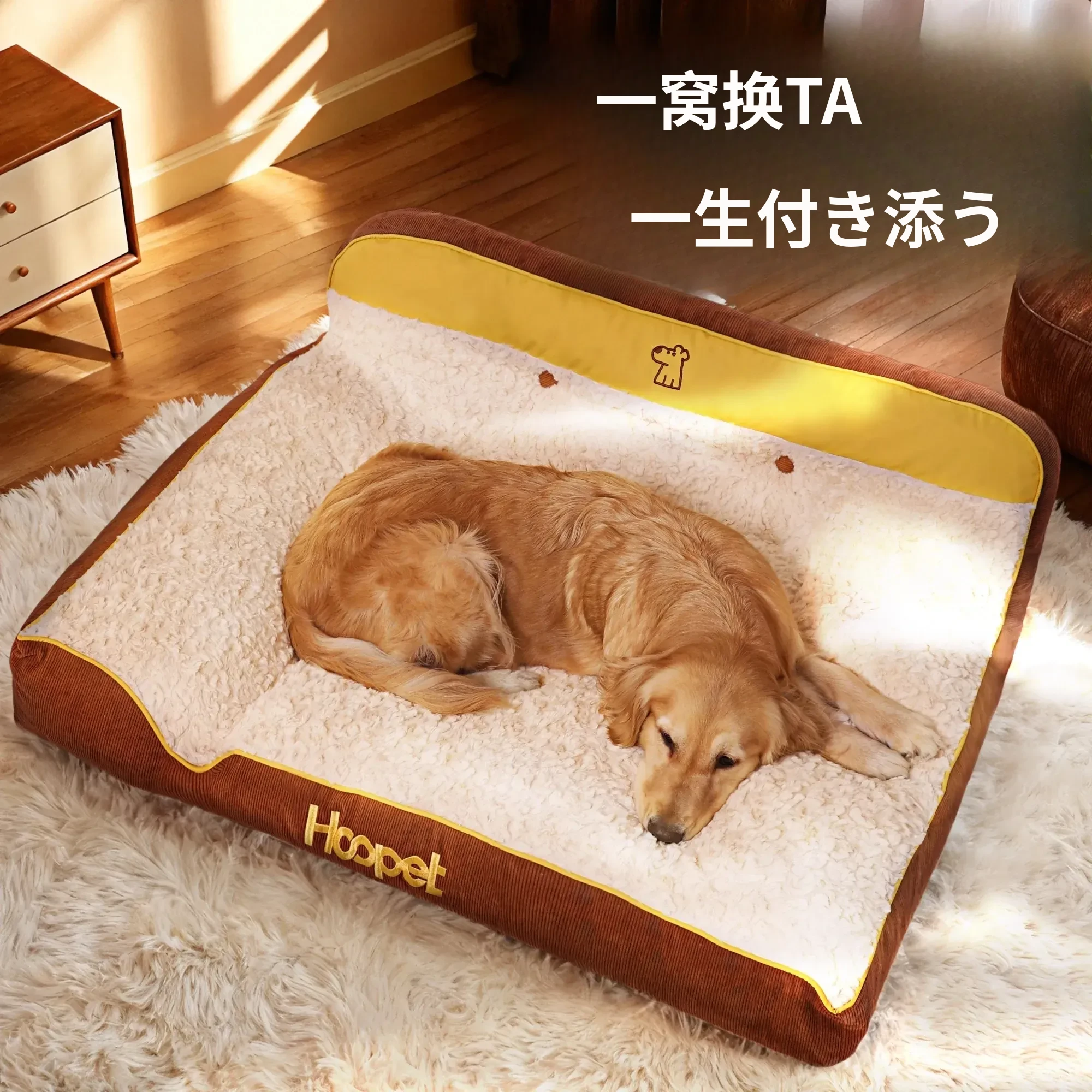 Hoopet冬用大型犬用厚型ペットソファベッド - ゴールデンレトリバーにも最適!洗えるデザインで清潔感アップ、愛犬の快適な睡眠をサポート!寒い季節にぴったりの暖かい寝床です。