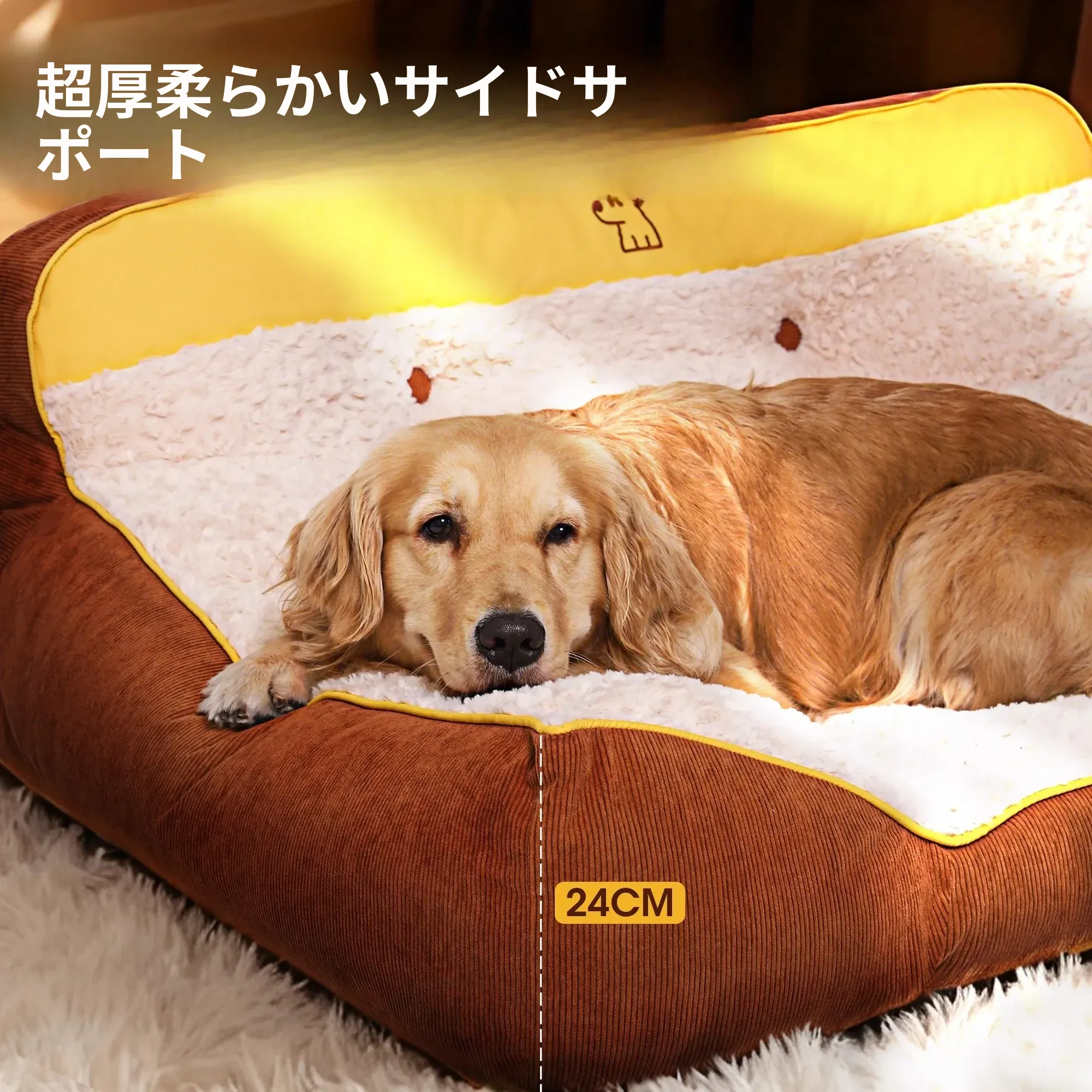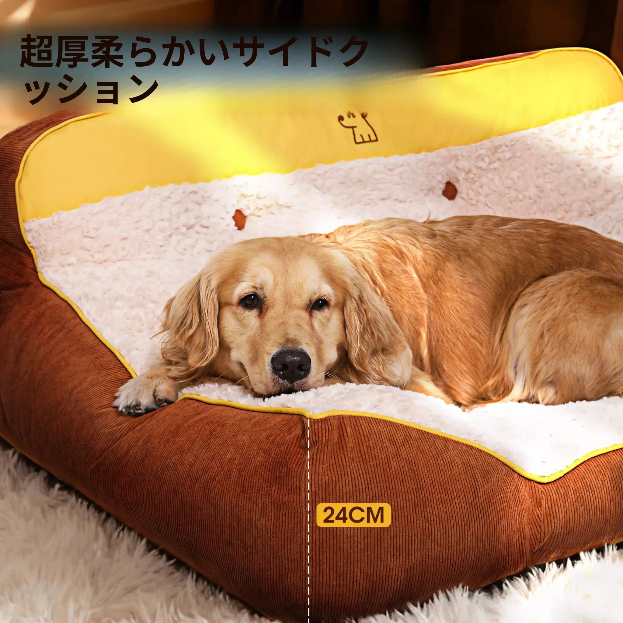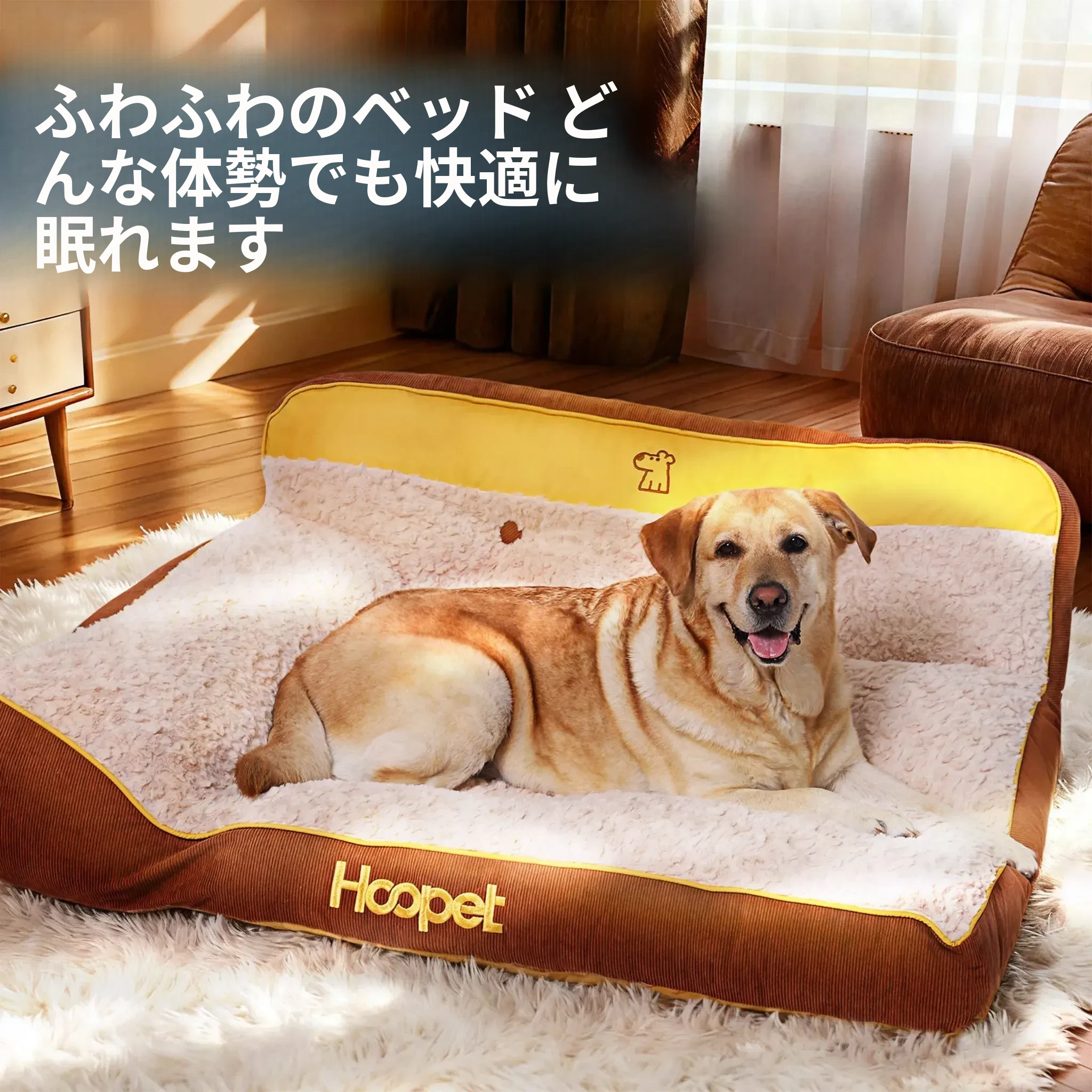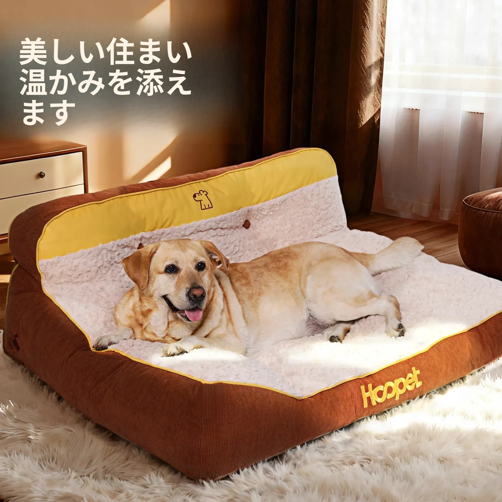 Hoopet冬用大型犬用厚型ペットソファベッド - ゴールデンレトリバーにも最適!洗えるデザインで清潔感アップ、愛犬の快適な睡眠をサポート!寒い季節にぴったりの暖かい寝床です。