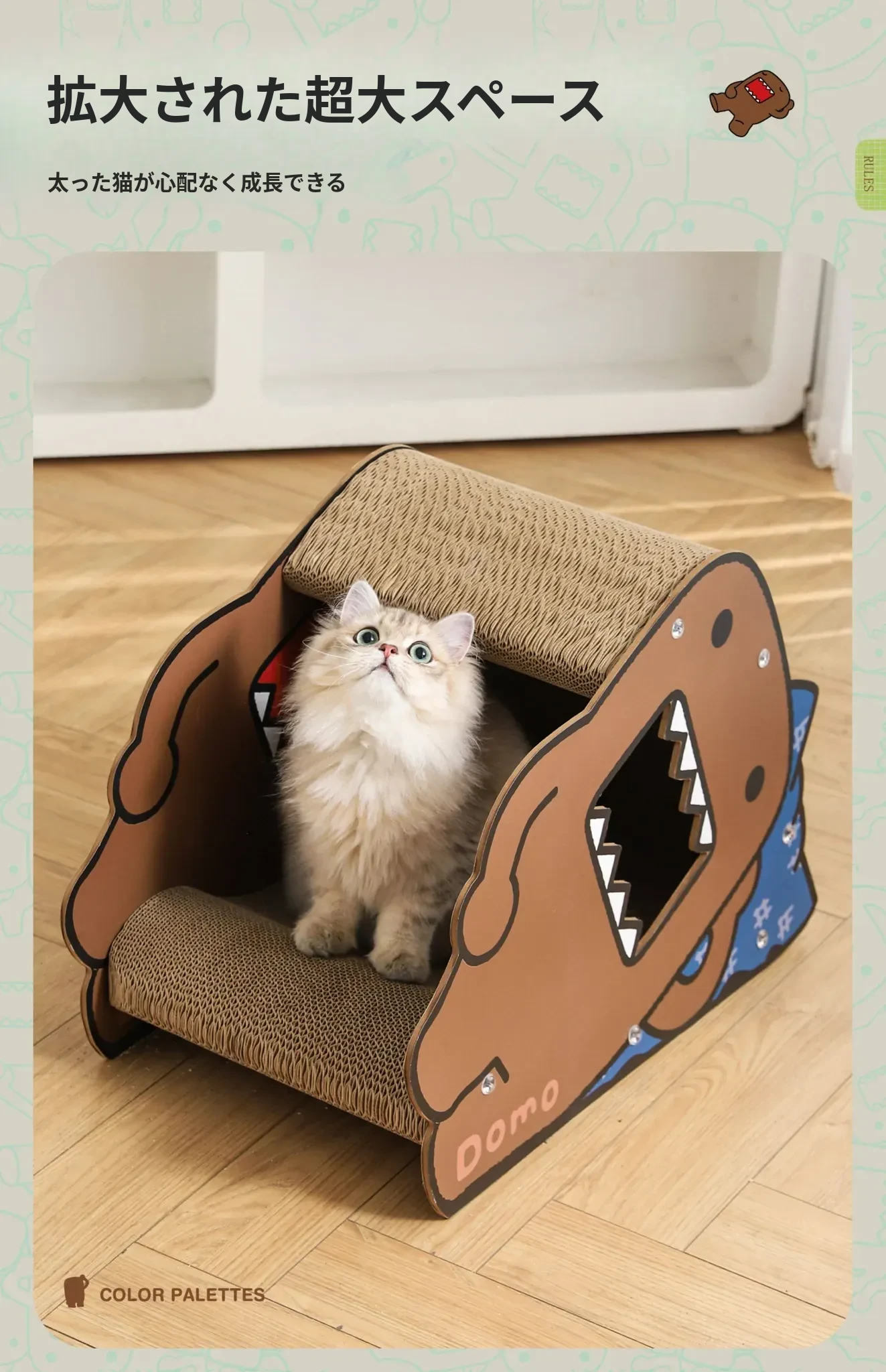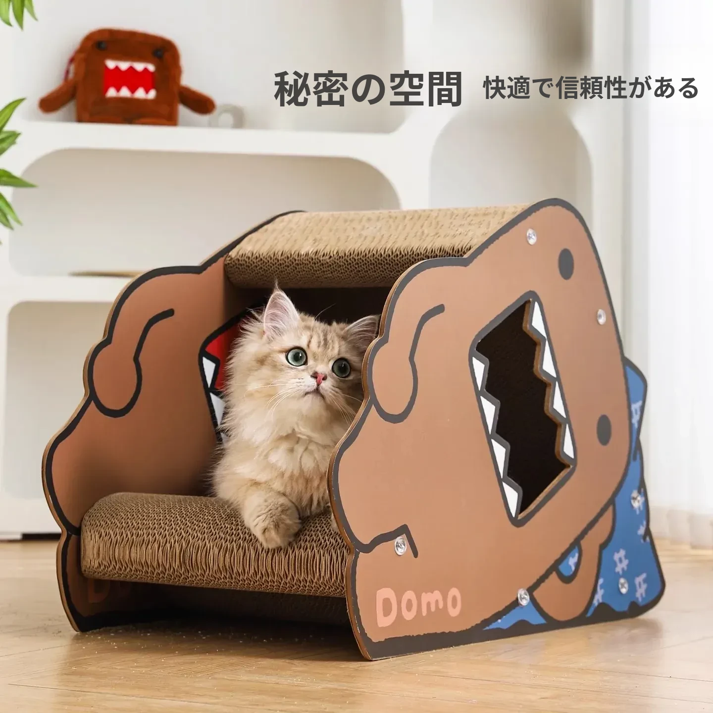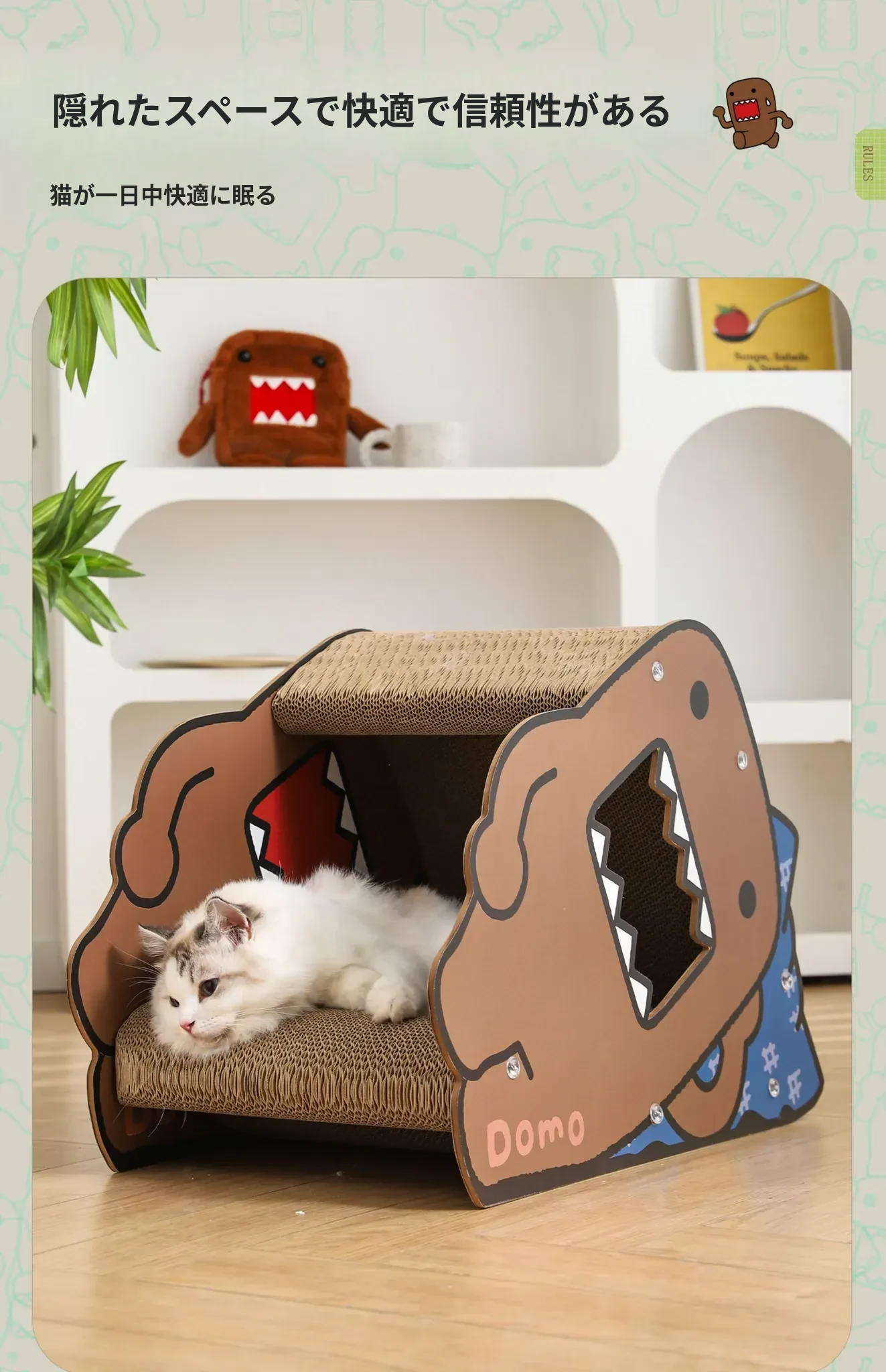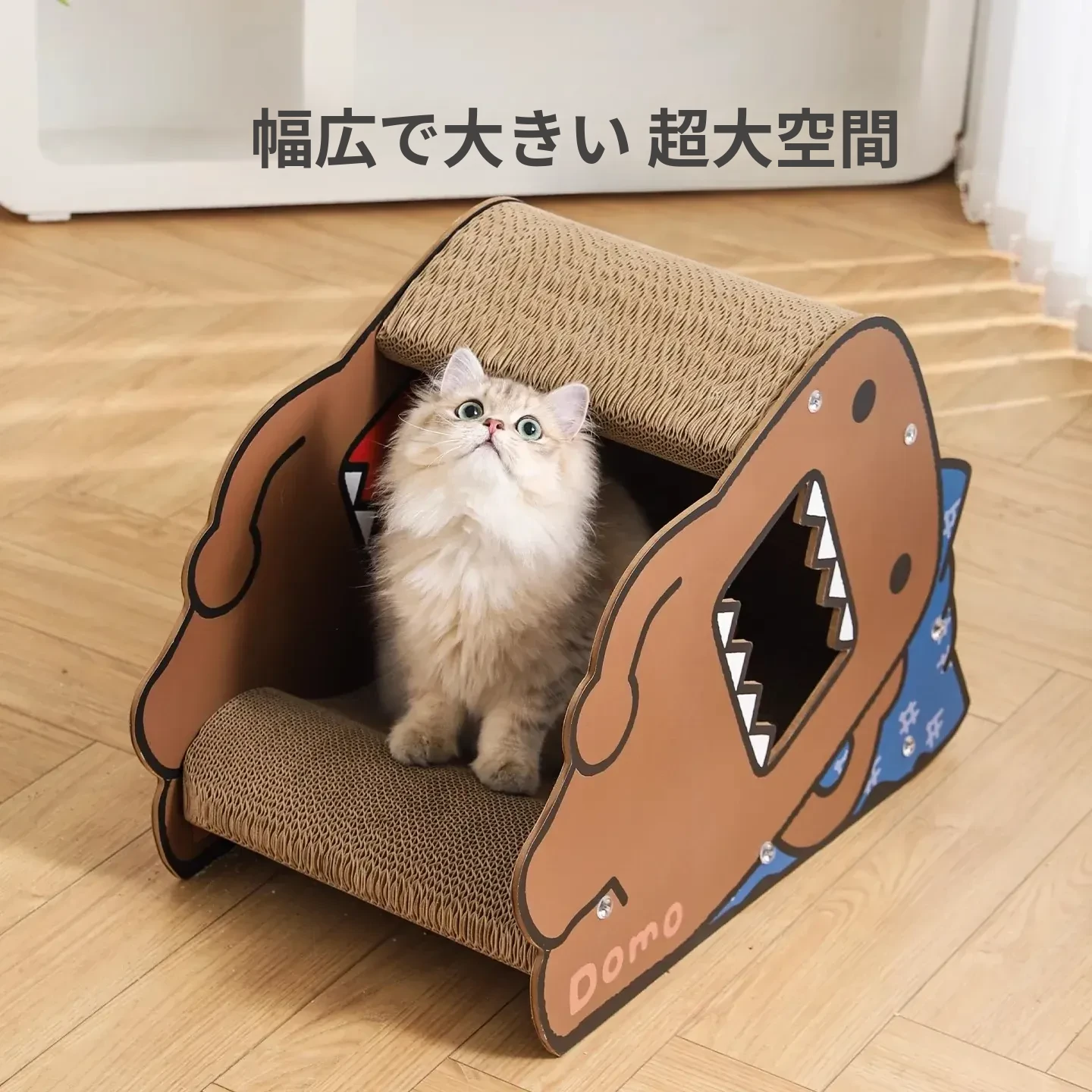 耐久性抜群!Hoopet多摩君のペット用サイドスリープ立体段ボールキャットベッド - 猫の爪とぎおもちゃ、汚れに強く、ほこりも出ない!快適な睡眠空間で愛猫を癒してあげてください。