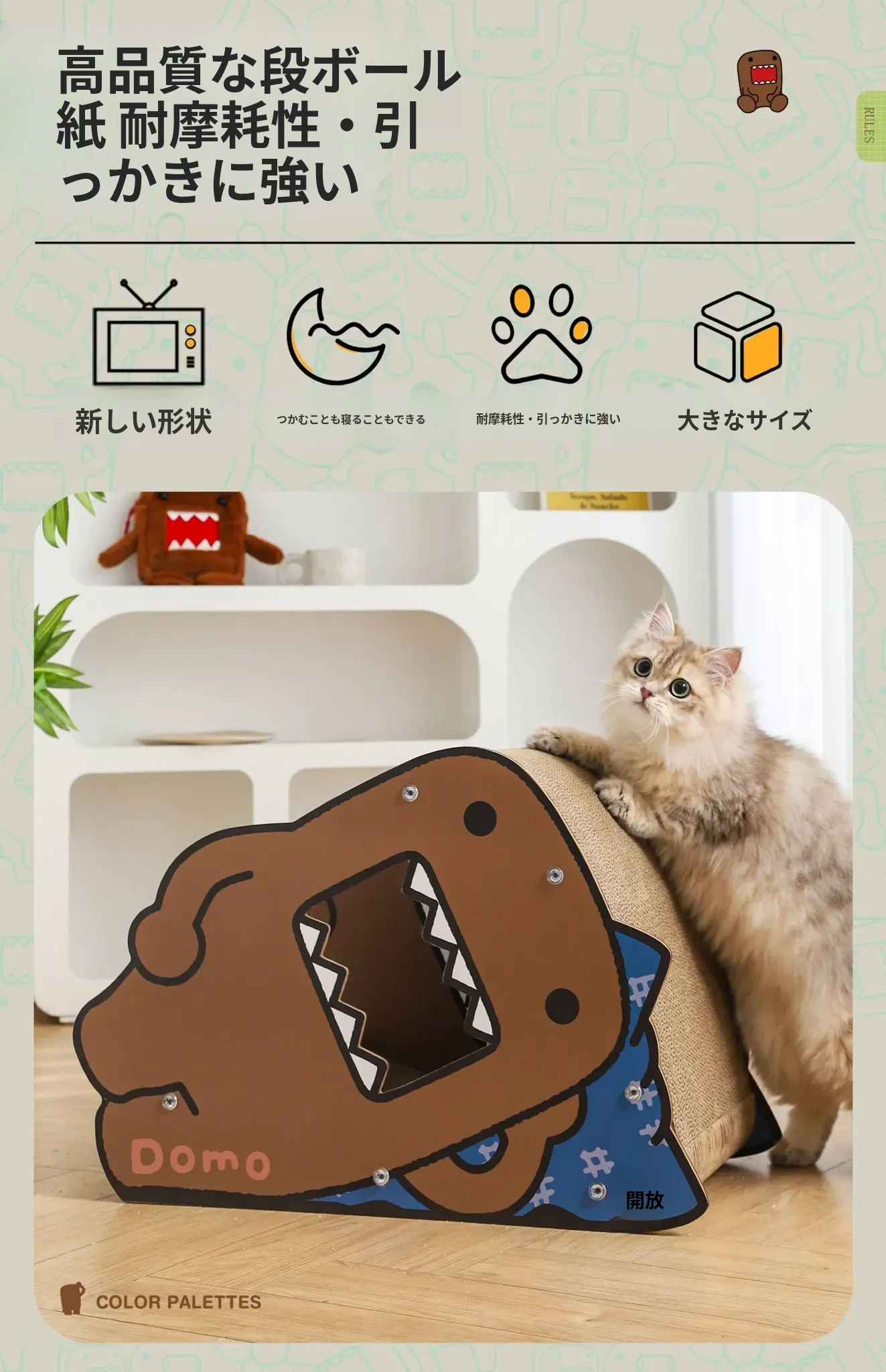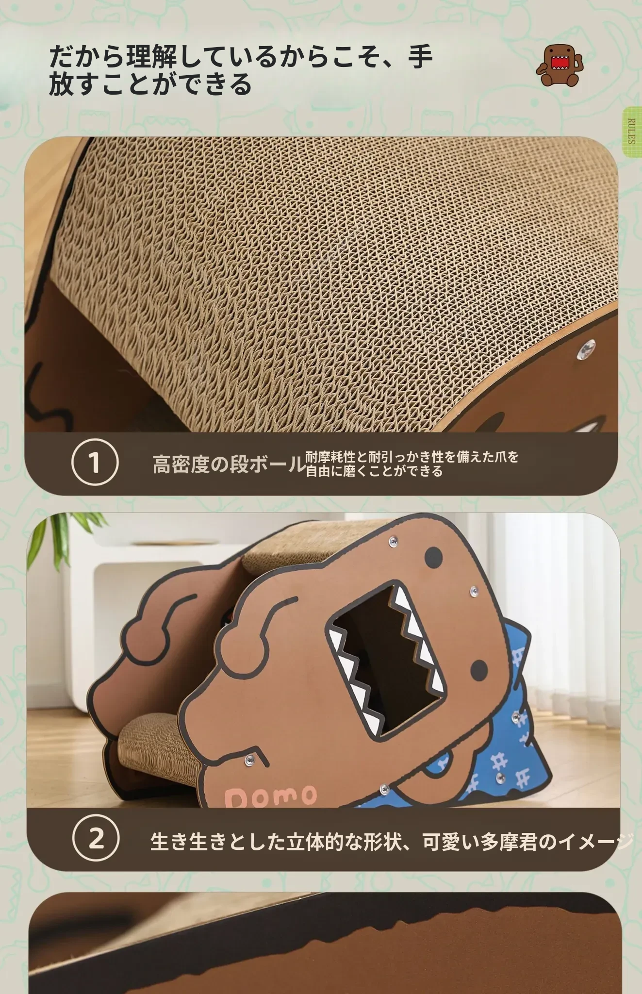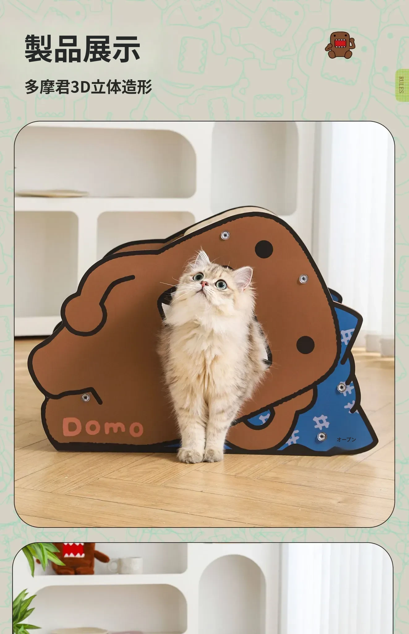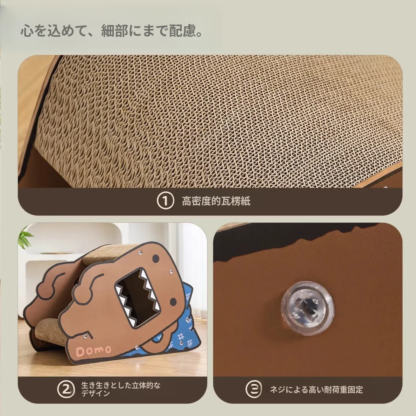 耐久性抜群!Hoopet多摩君のペット用サイドスリープ立体段ボールキャットベッド - 猫の爪とぎおもちゃ、汚れに強く、ほこりも出ない!快適な睡眠空間で愛猫を癒してあげてください。