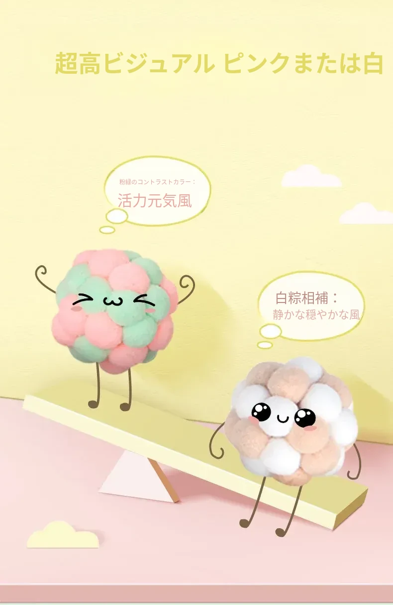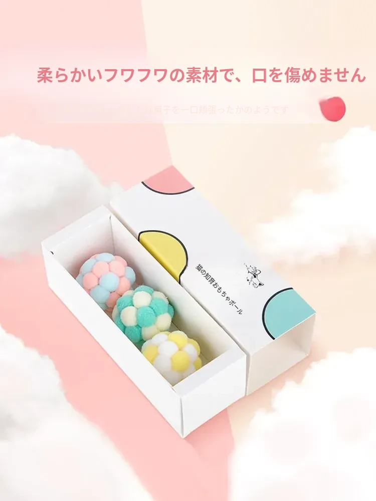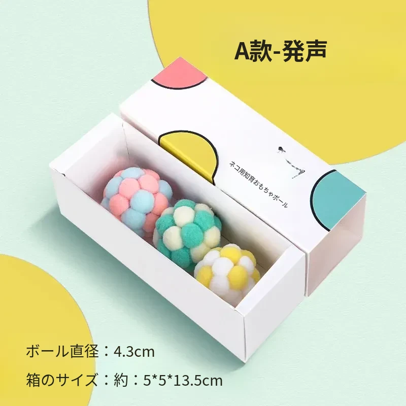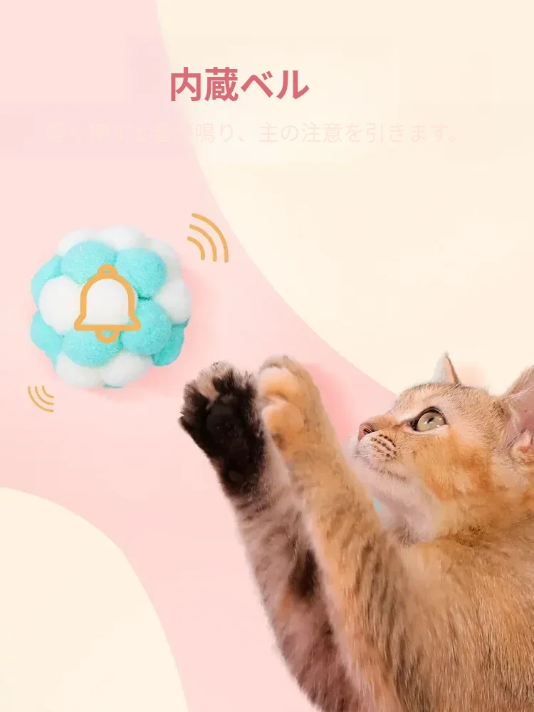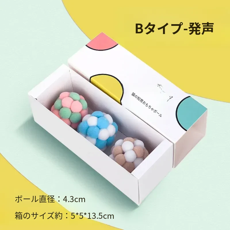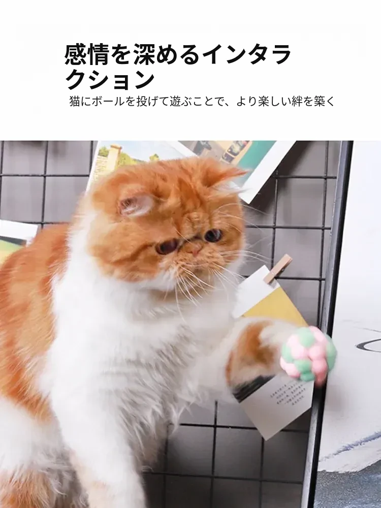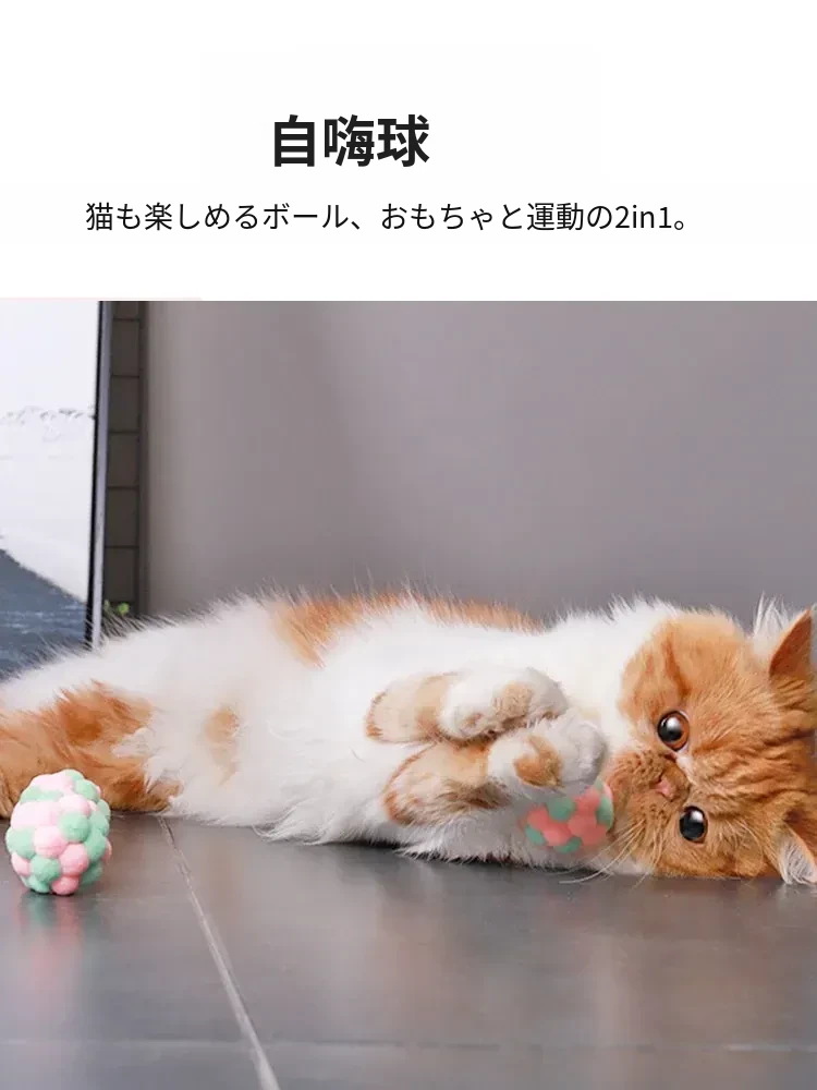 毛球付き猫おもちゃボール - 自分で楽しめる!ストレス解消&遊び心満載の弾力ボール。猫ちゃんのための最高の遊び道具、楽しいひとときを提供します!