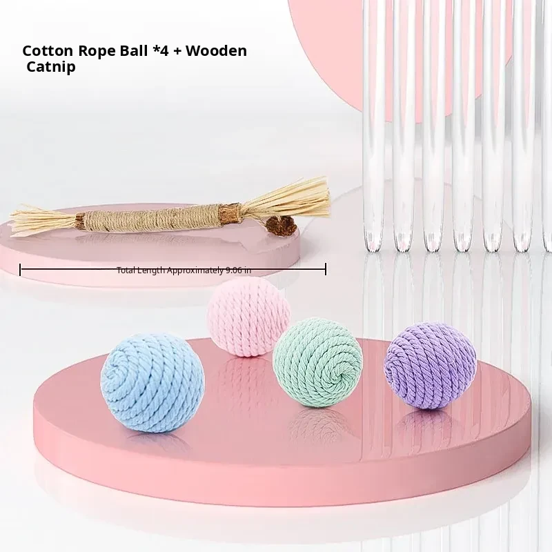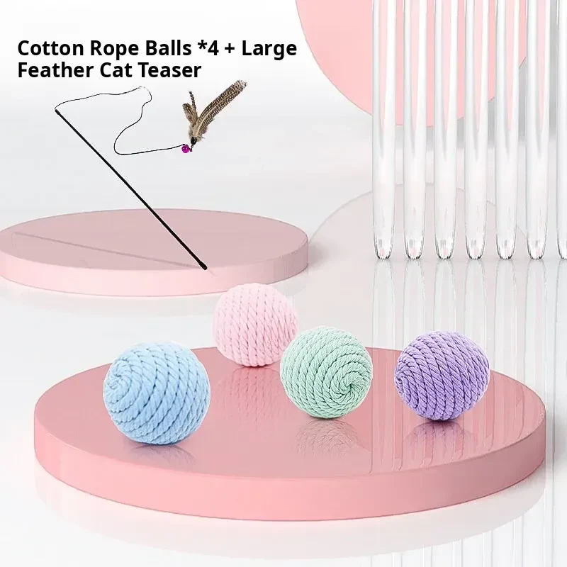 Cotton Rope Ball*4+Big Feather Cat Teasing Stick