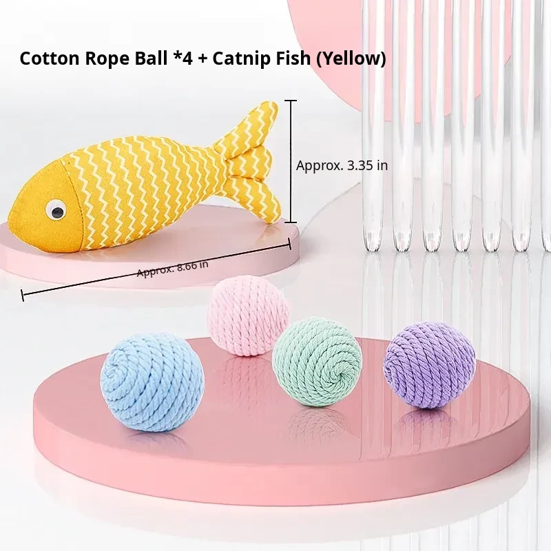 Cotton Rope Ball*4+Catnip Fish (Yellow)