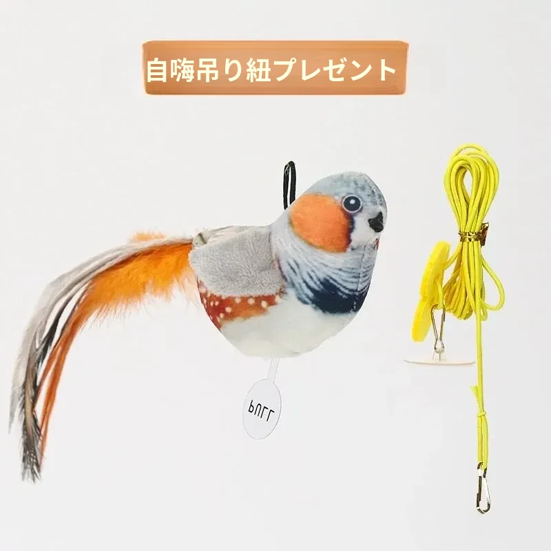 灰橙色の小鳥(リアルな鳥の鳴き声 吊り紐付き)