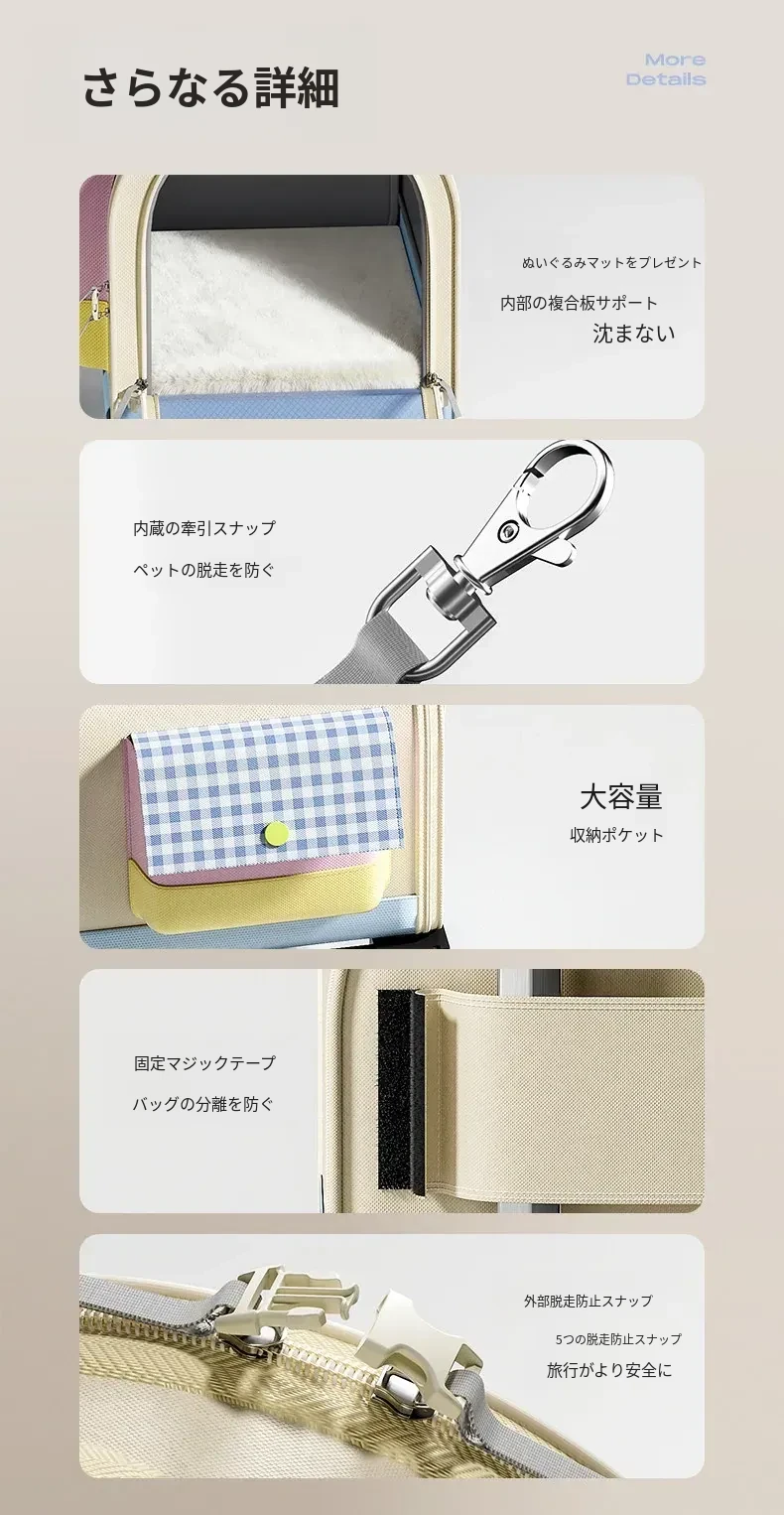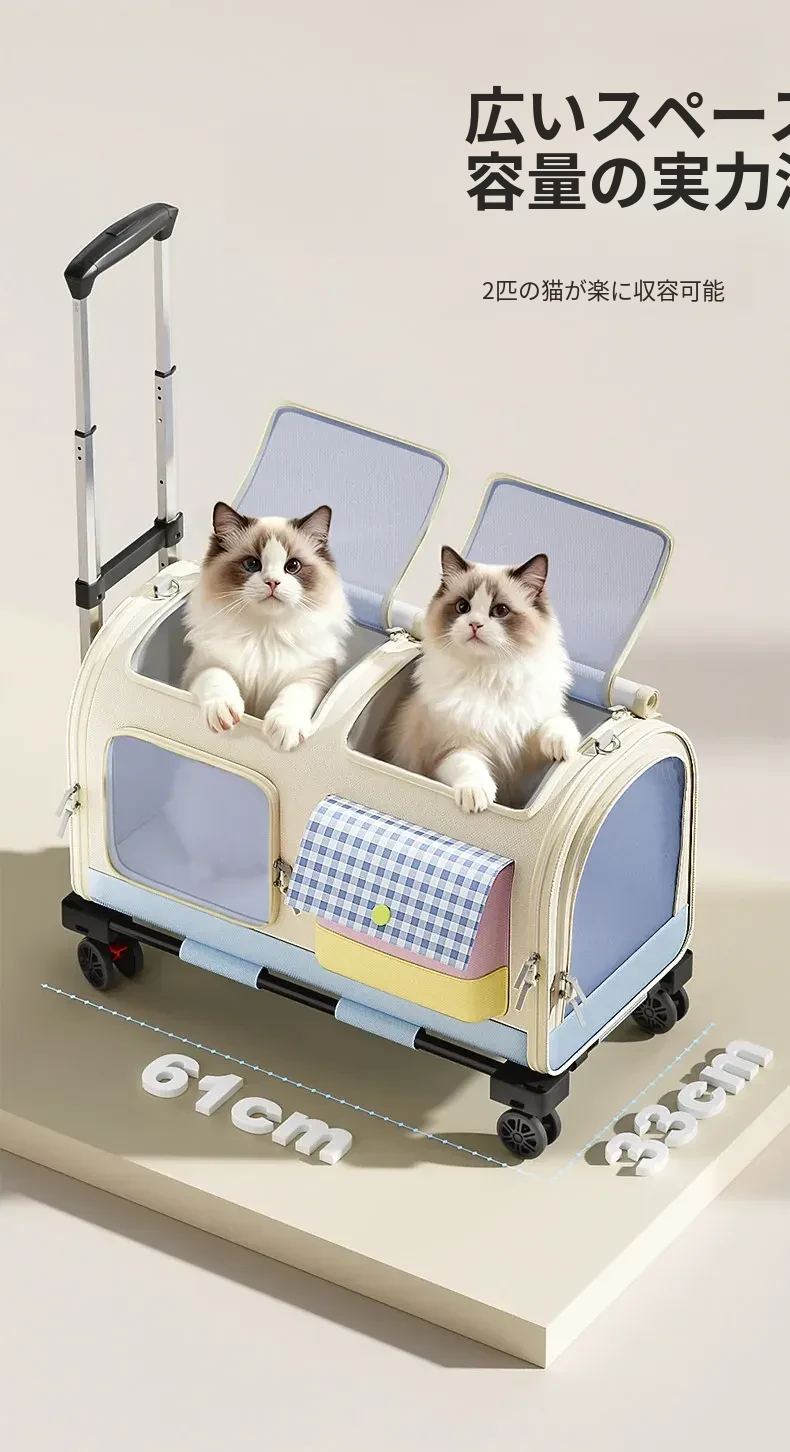 ペットキャリーキャリーバッグ - 猫や犬も楽々移動!大容量で多頭飼いも安心のキャリーバッグ。外出や旅行に最適なデザイン、安心の車載可能!猫ちゃんも快適に過ごせる、あなたの愛するペットとの素敵な時間をサポートします。