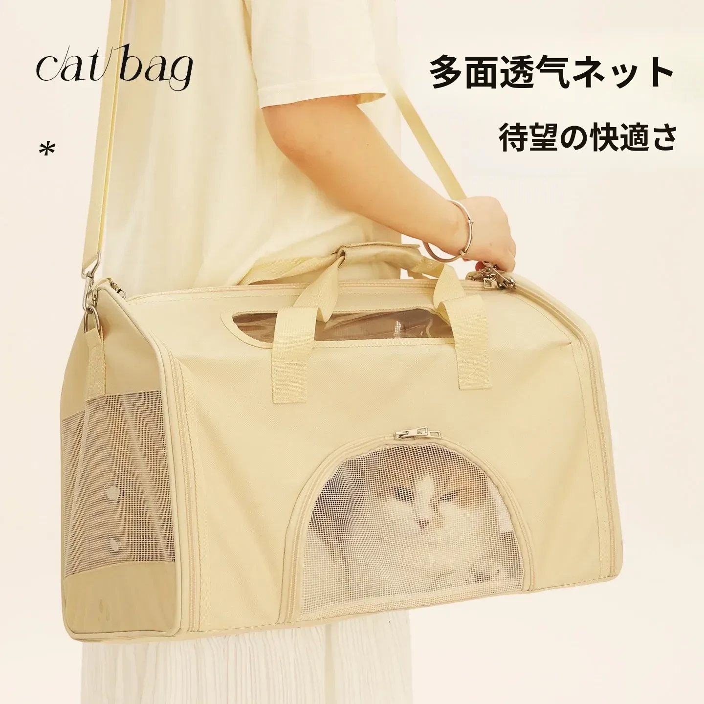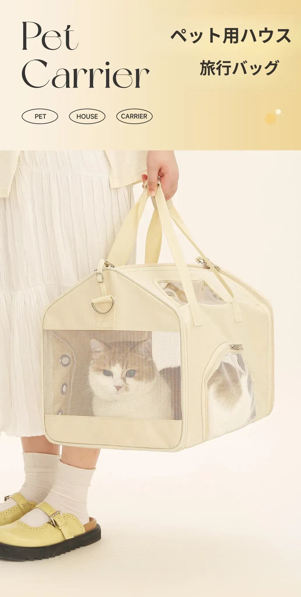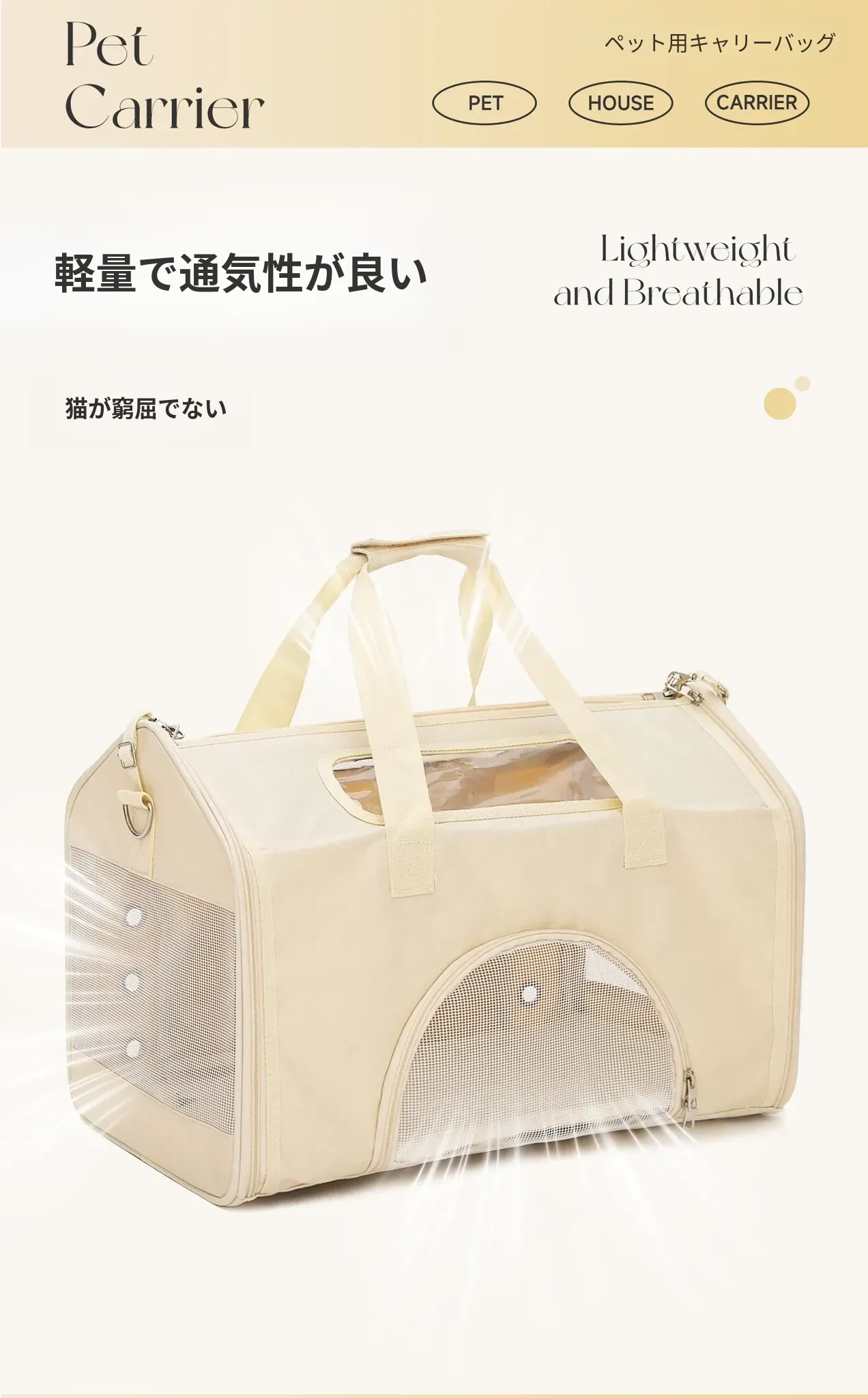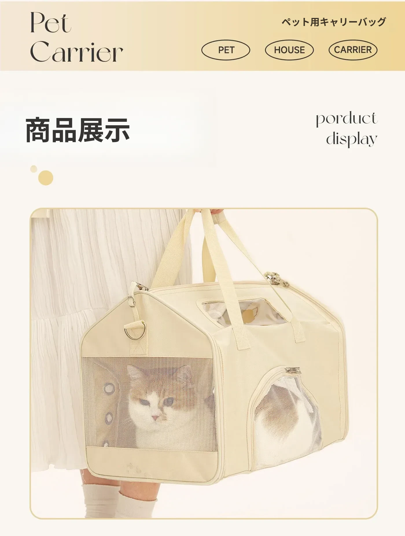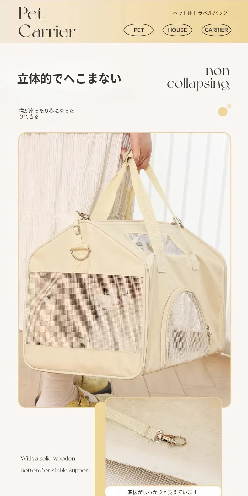 ペット用お出かけバッグ - ベージュ 【新商品直降】