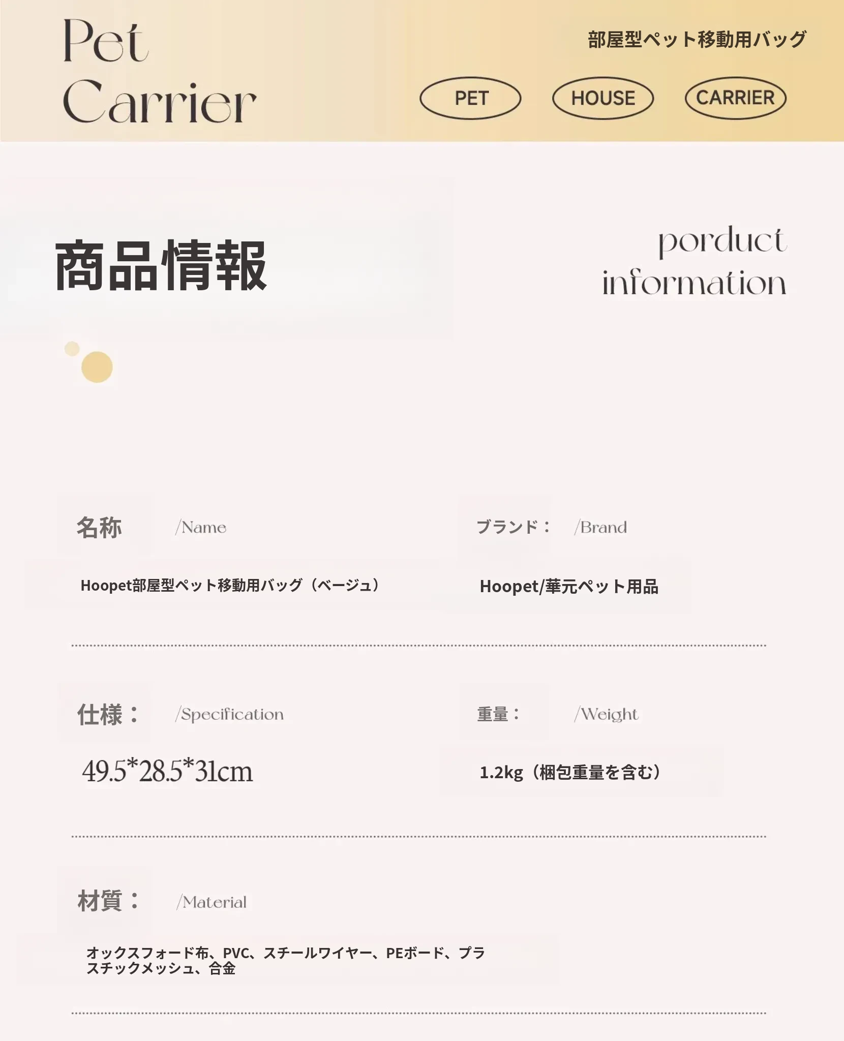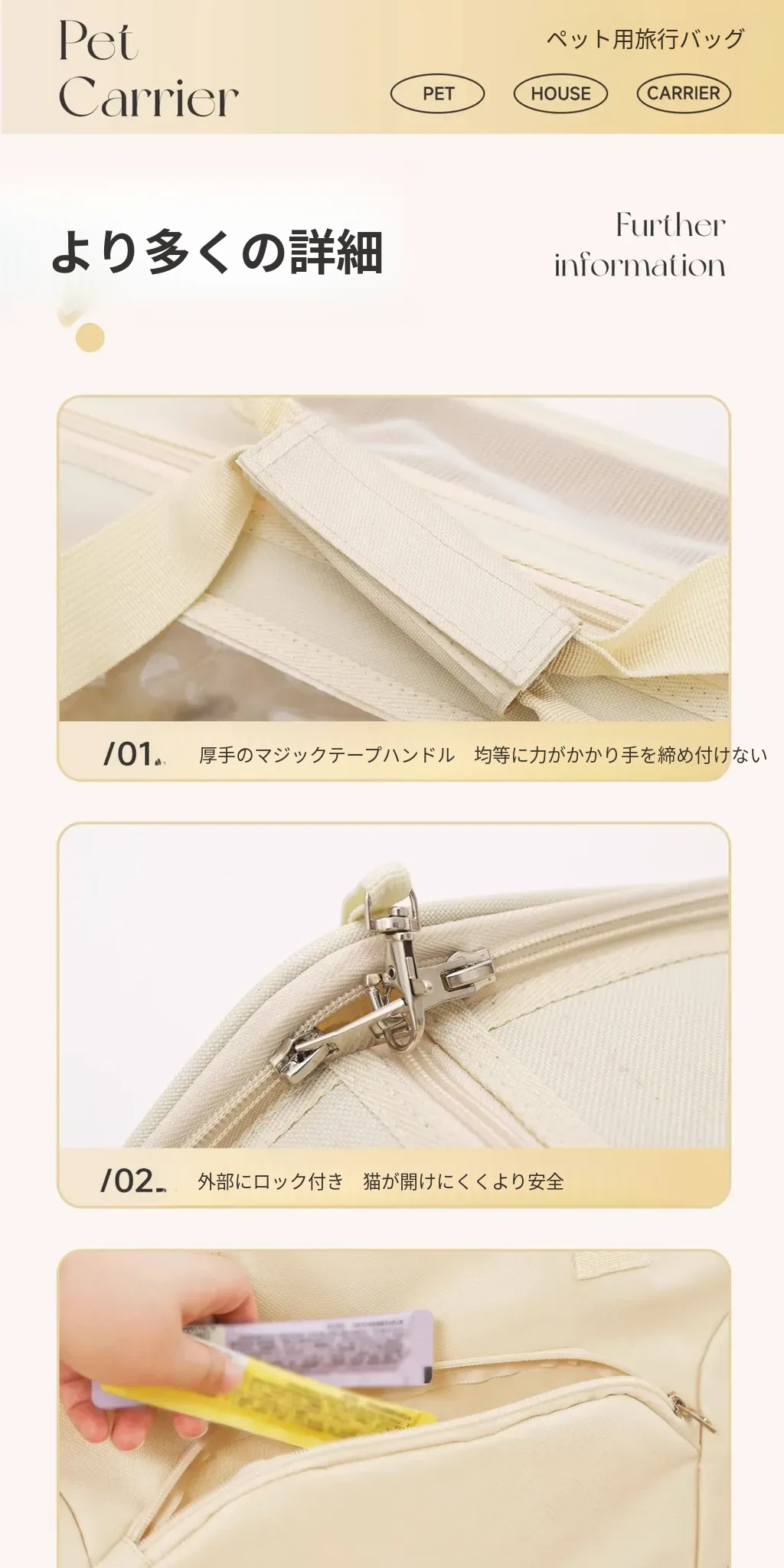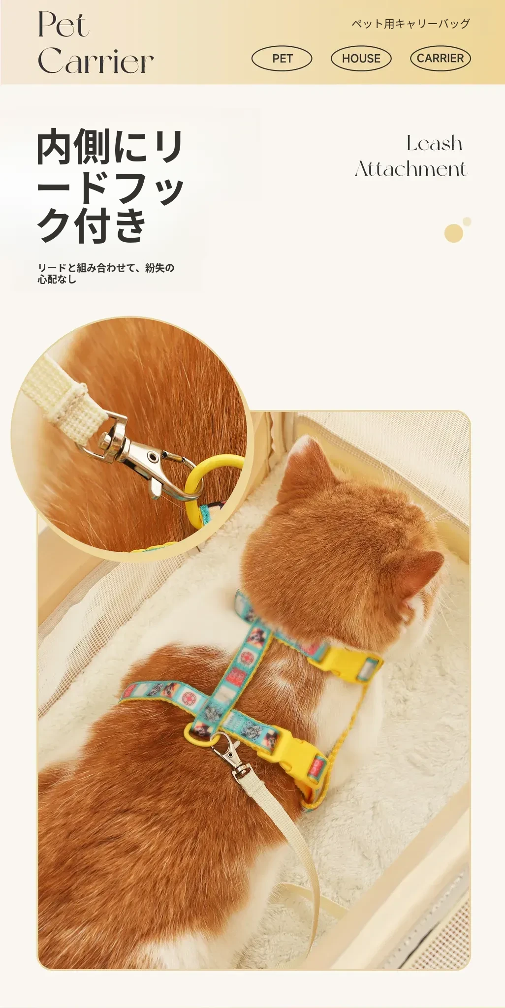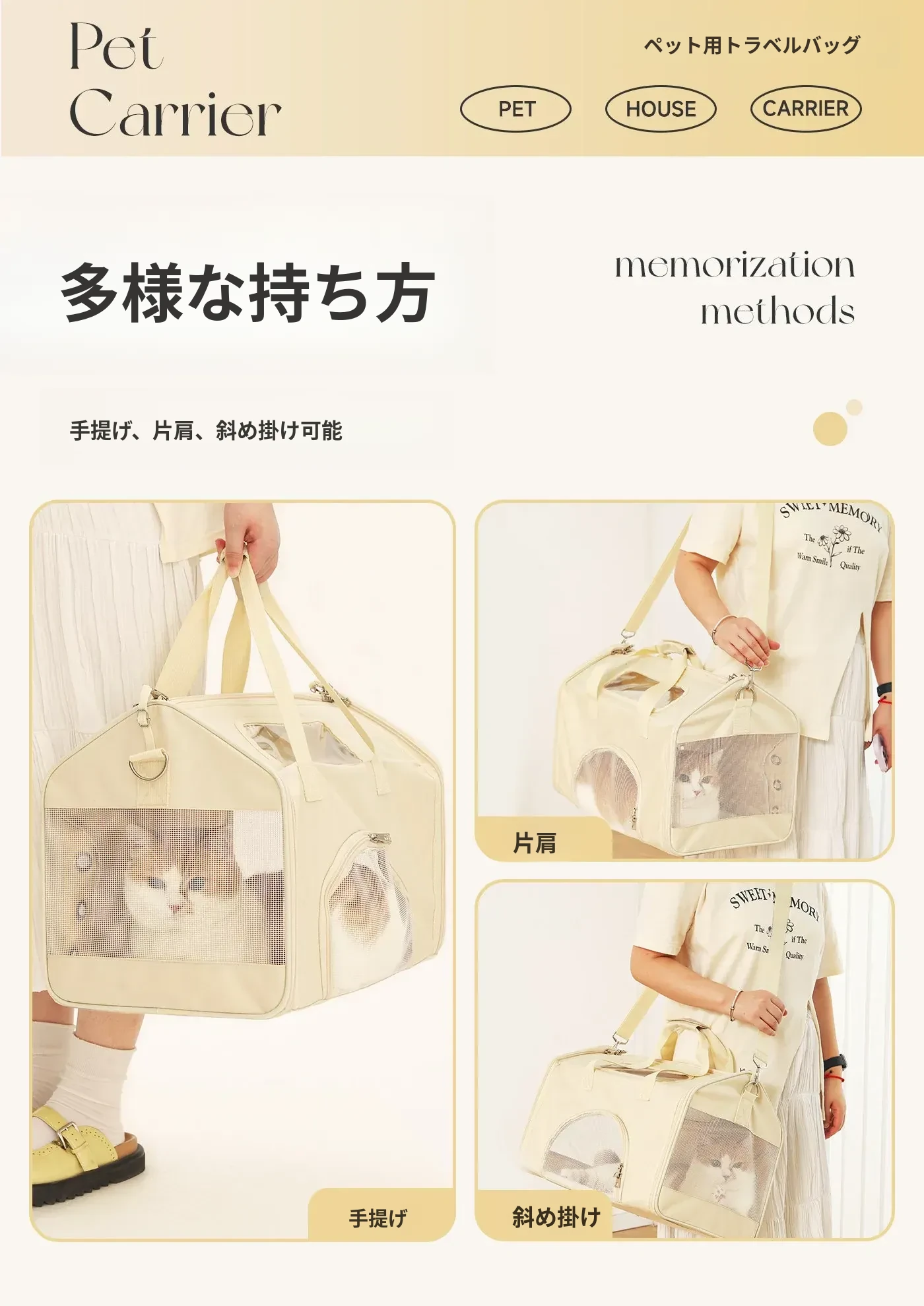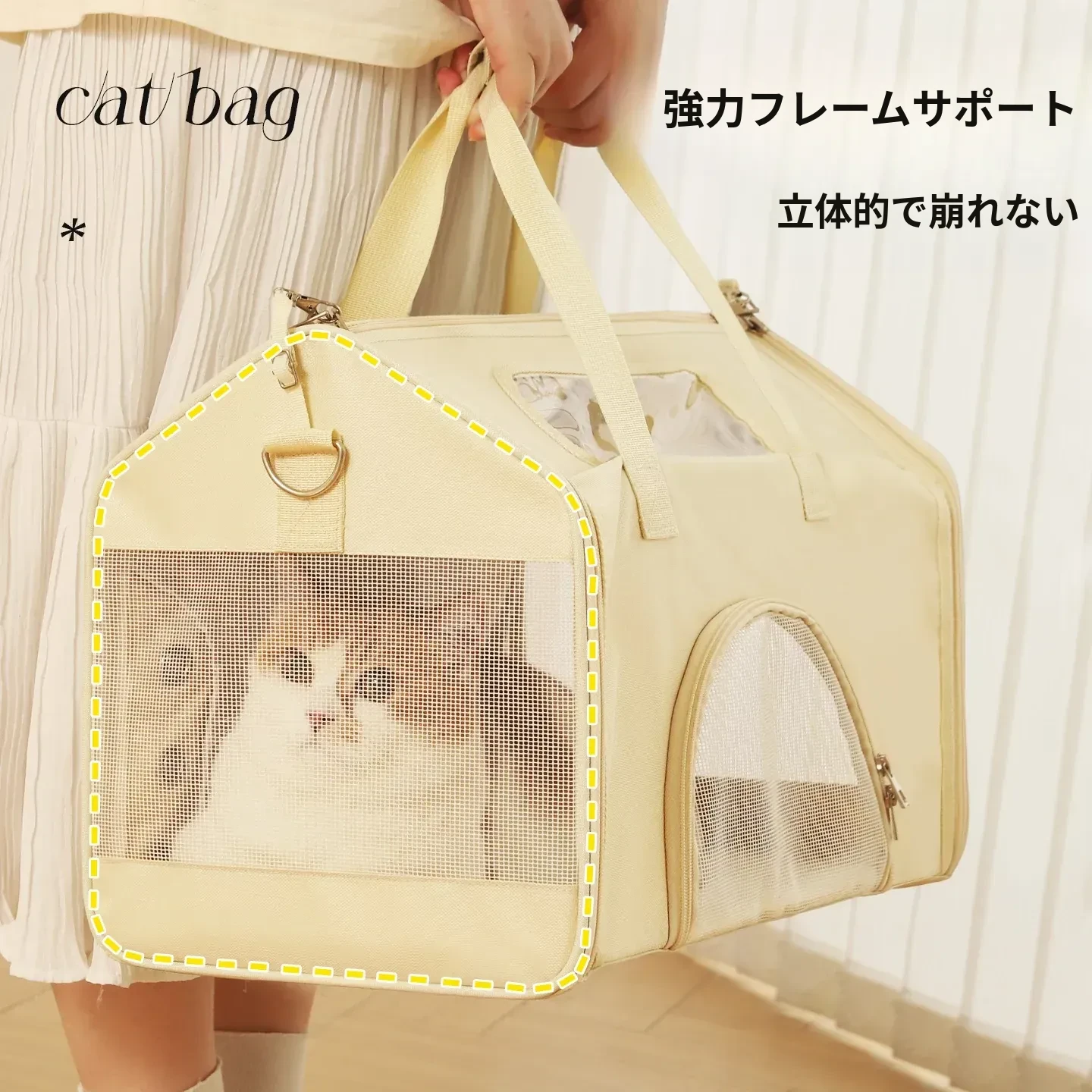 ペット用お出かけバッグ - ベージュ 【新商品直降】