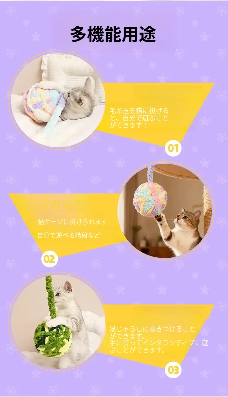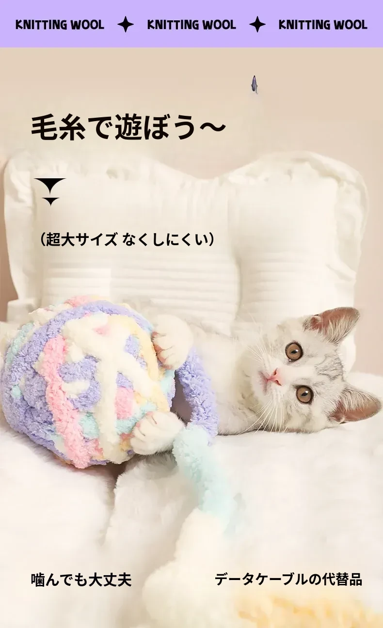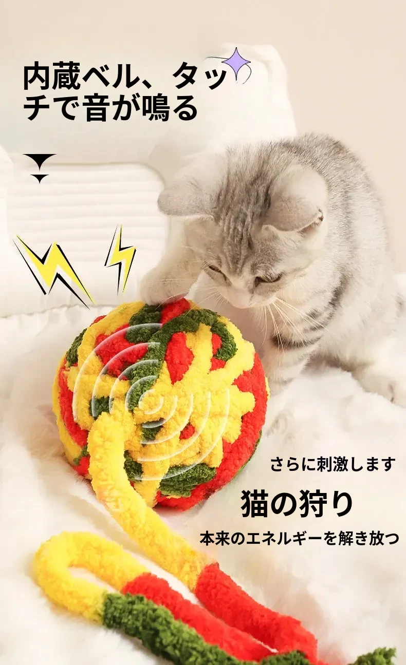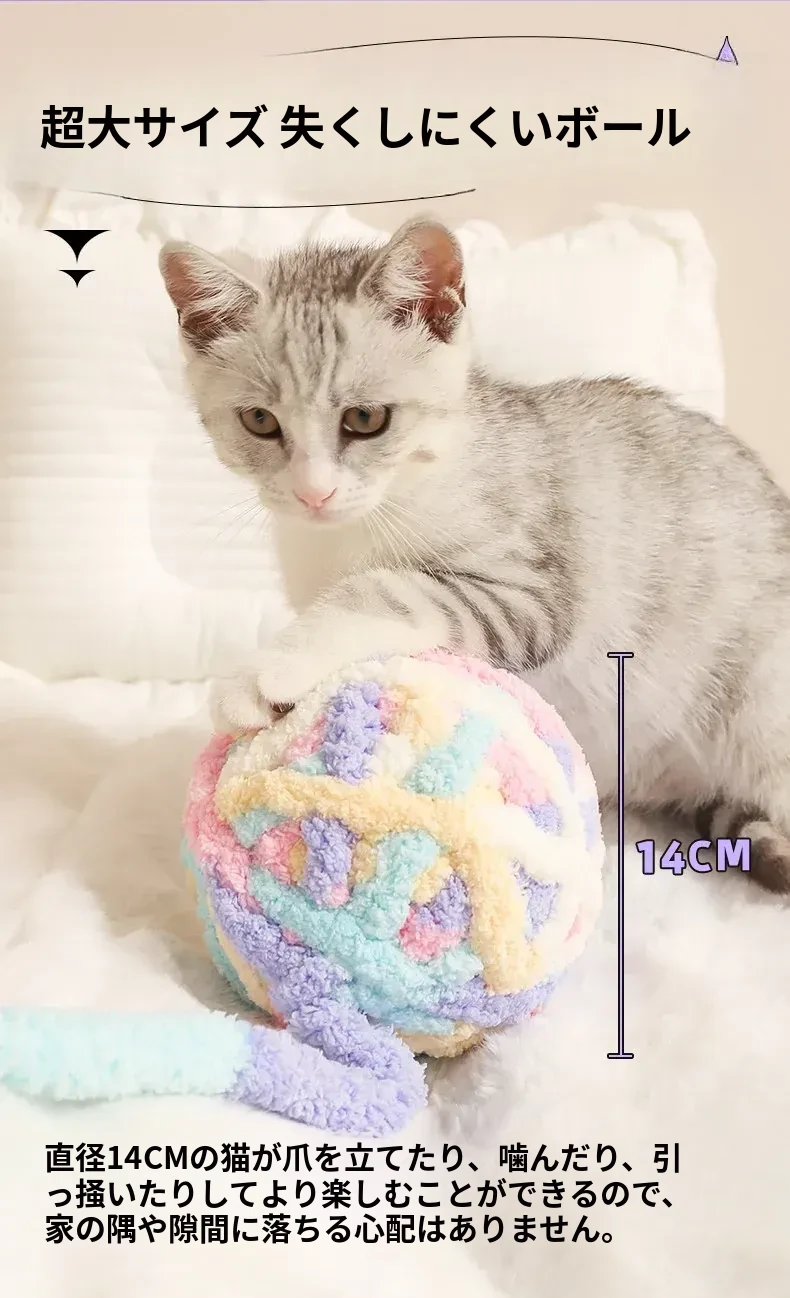 大きな毛糸ボールで猫ちゃんも大満足!自分で遊べる楽しいおもちゃ、体力を消耗しながら歯磨きもできる!鳴る鈴付きで興味津々。猫の健康と遊び心を両立させる必須アイテム!
