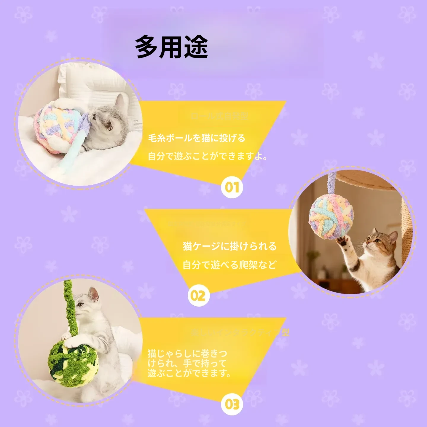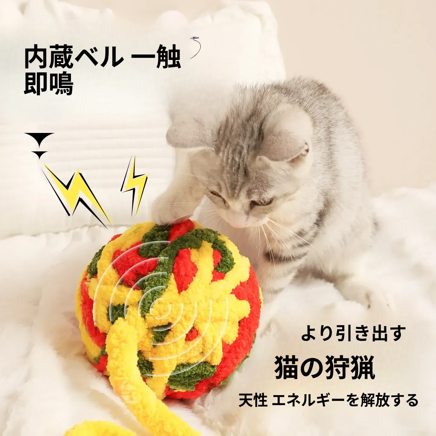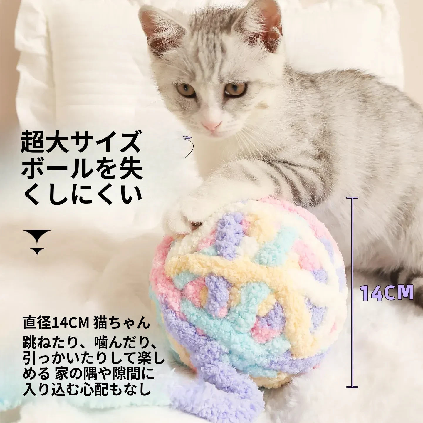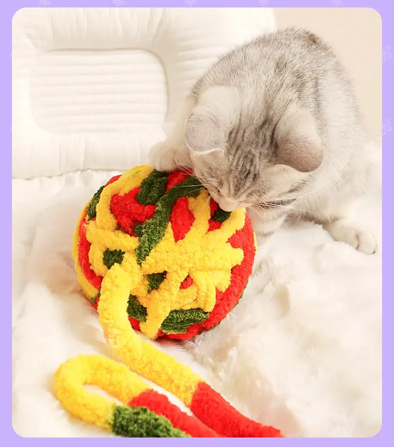 大きな毛糸ボールで猫ちゃんも大満足!自分で遊べる楽しいおもちゃ、体力を消耗しながら歯磨きもできる!鳴る鈴付きで興味津々。猫の健康と遊び心を両立させる必須アイテム!
