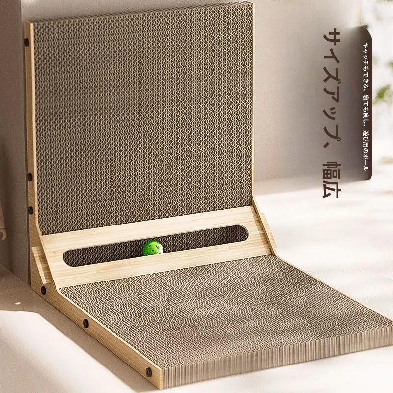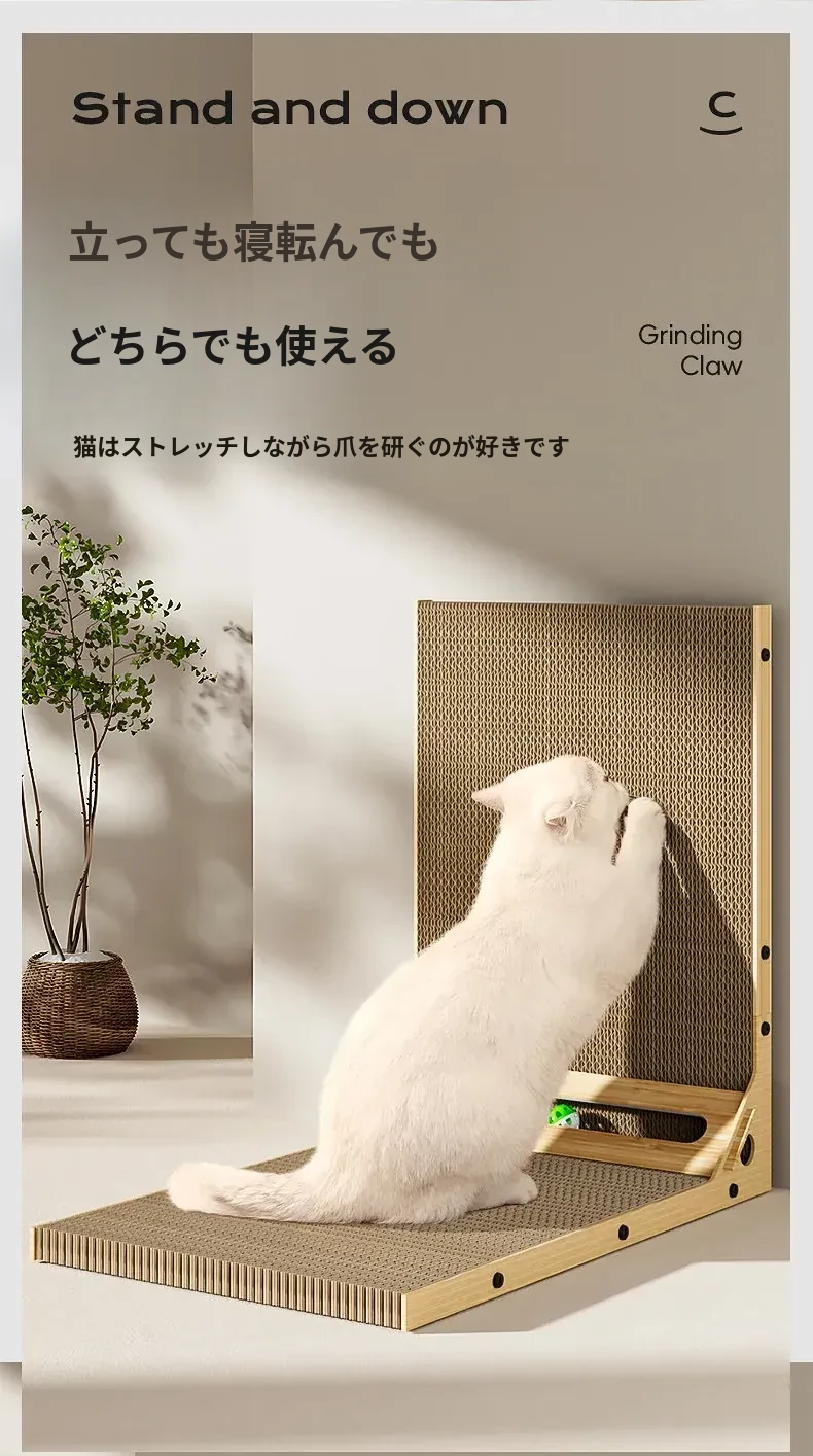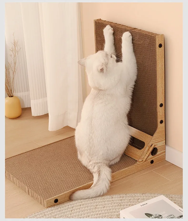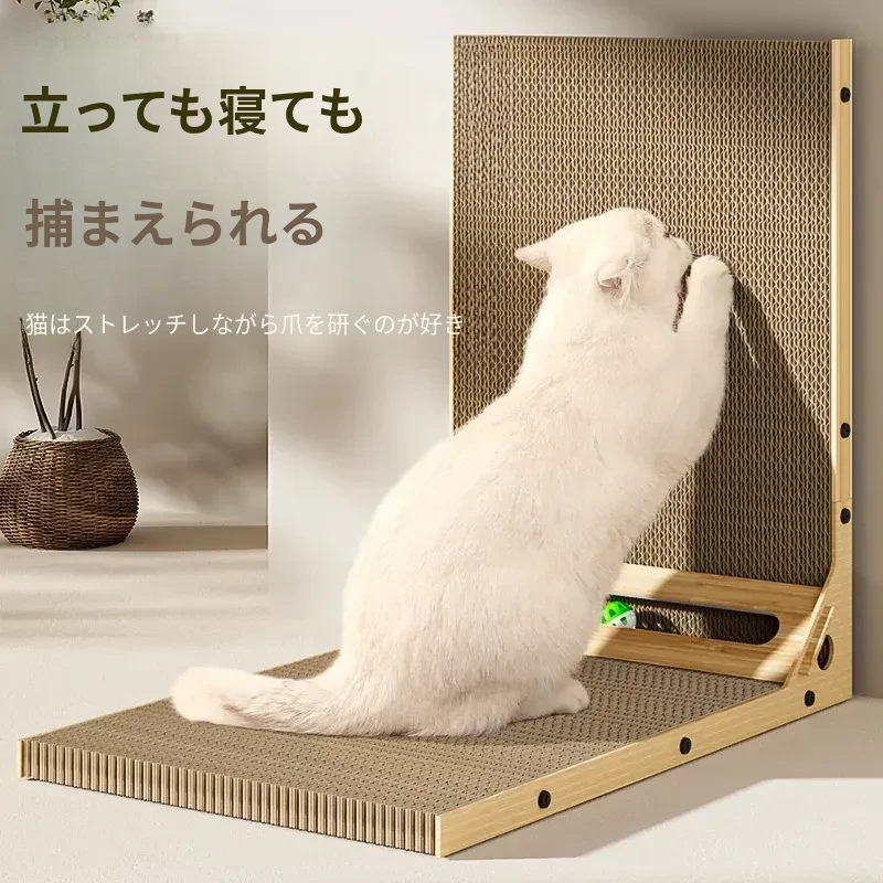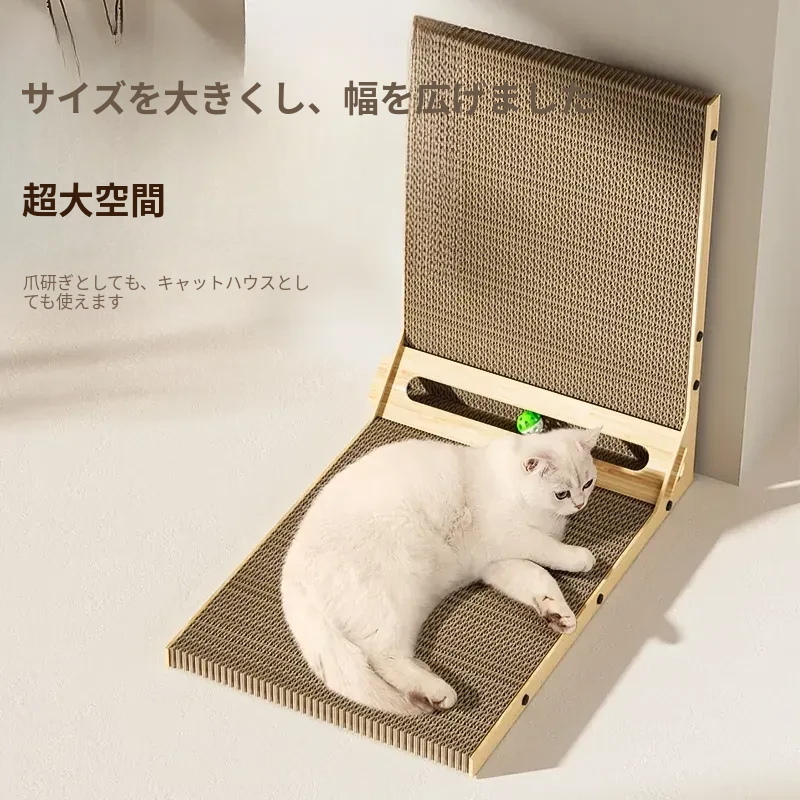 L型キャットグラブボード 壁掛け型 猫ハウス一体型 耐久性抜群の波状紙 大型猫用 爪研ぎ&お昼寝スポットに最適!猫ちゃんのストレス発散にも最適!