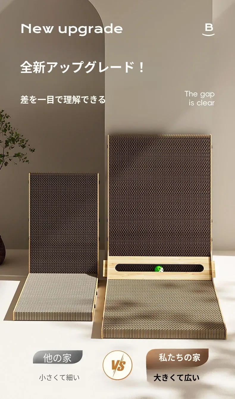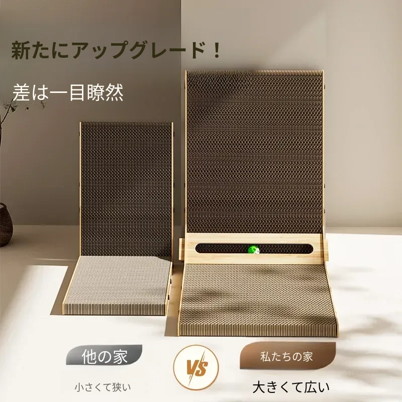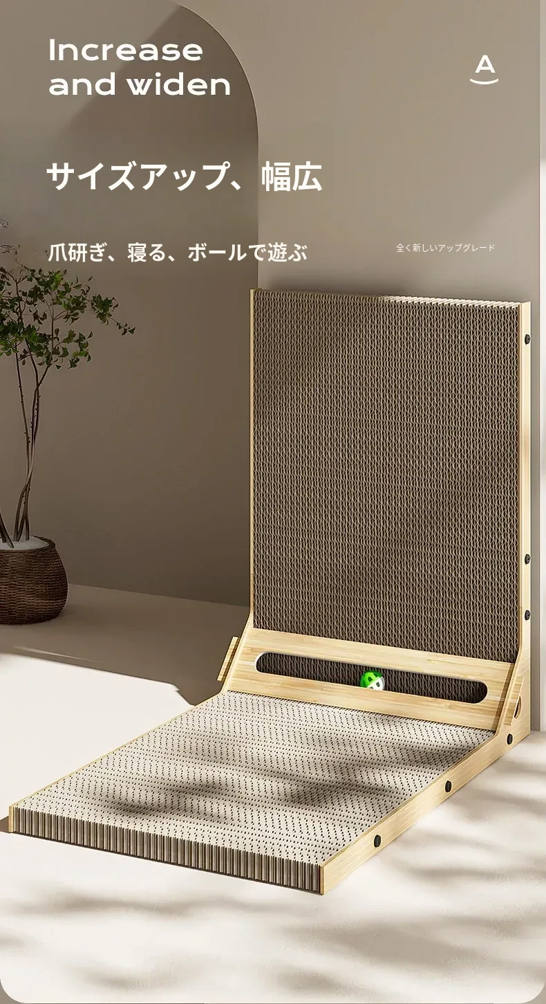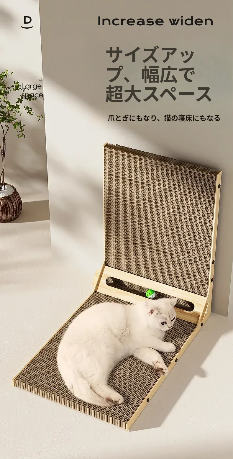 L型キャットグラブボード 壁掛け型 猫ハウス一体型 耐久性抜群の波状紙 大型猫用 爪研ぎ&お昼寝スポットに最適!猫ちゃんのストレス発散にも最適!