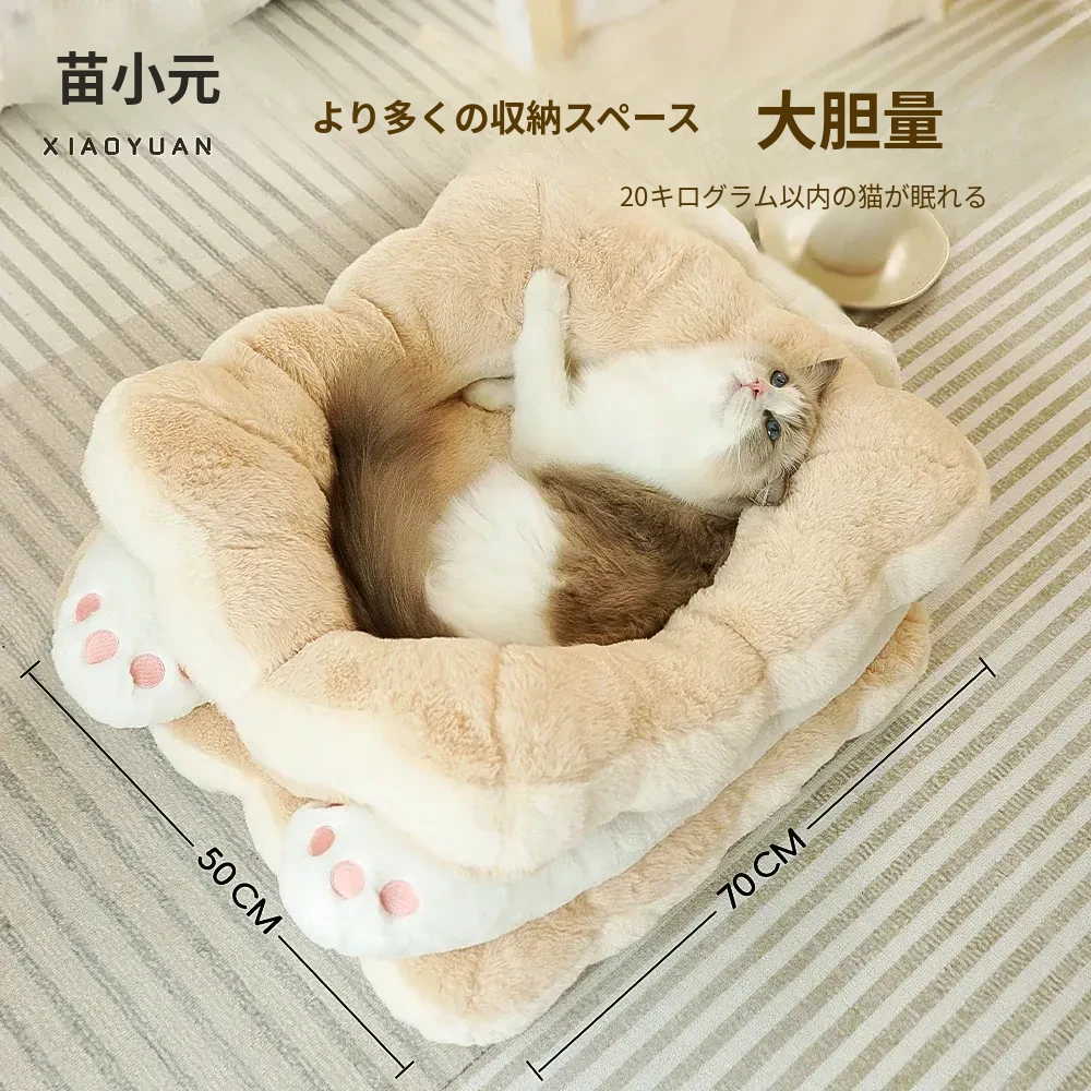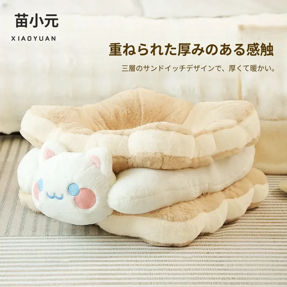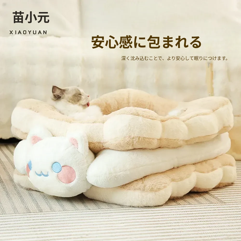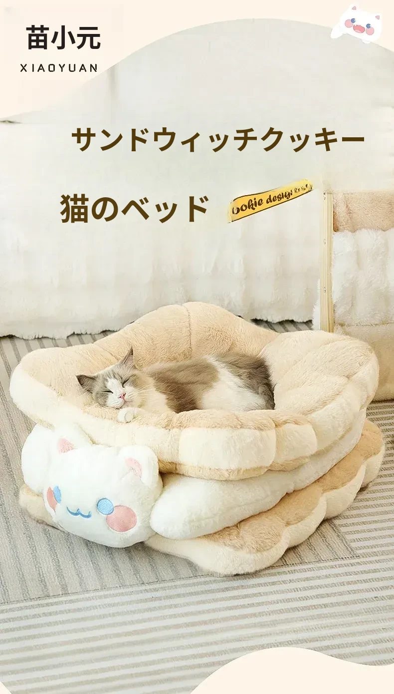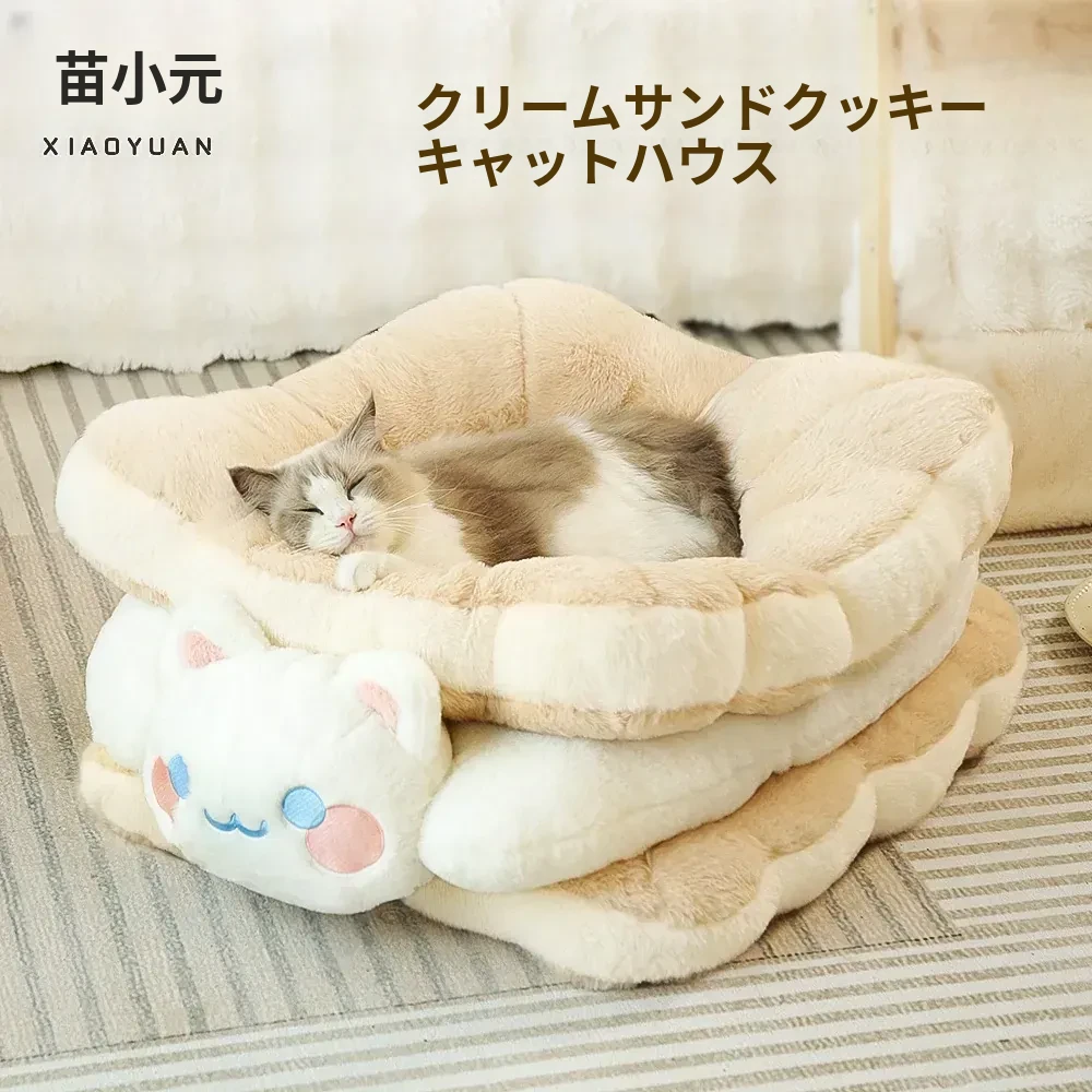 ミャオシャオユエ|ふわふわのクッキーサンドキャットベッド、冬の暖かさを保つペットハウス、厚手で柔らかい、冬にぴったりの子猫用キャットハウス!