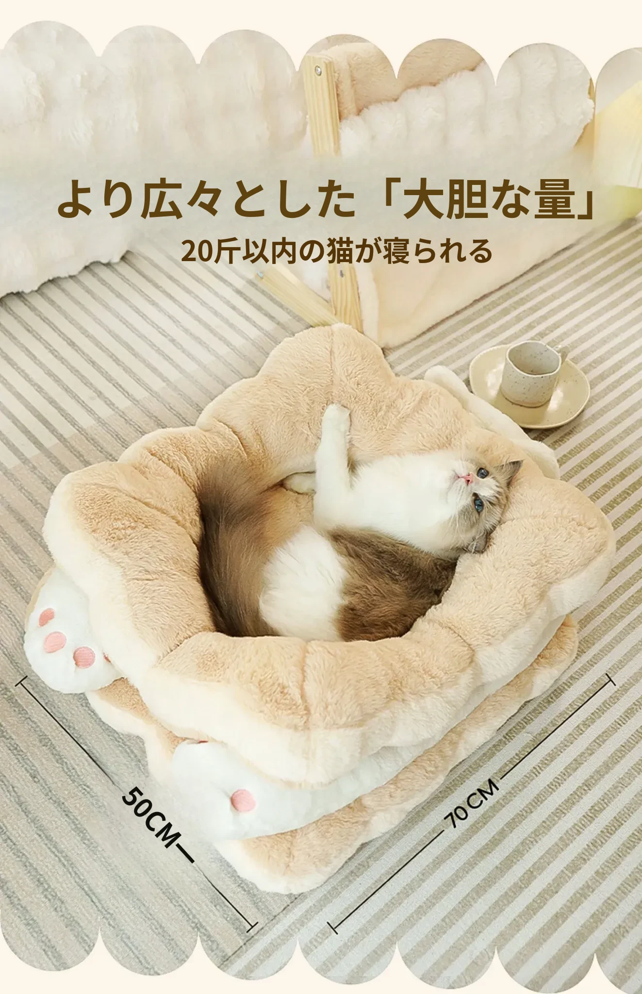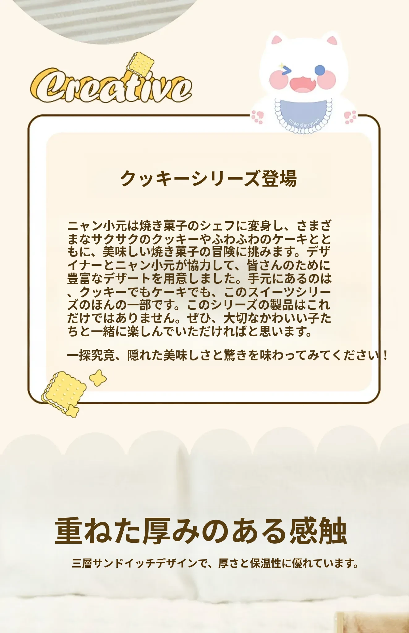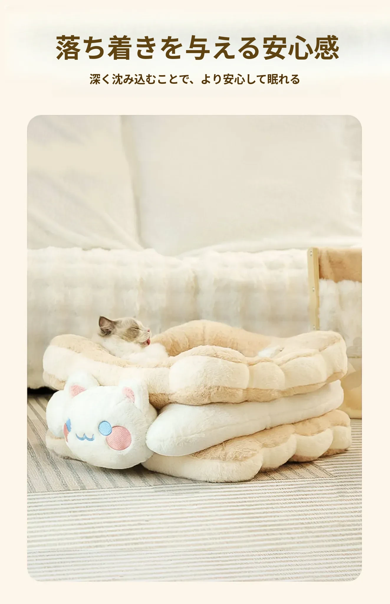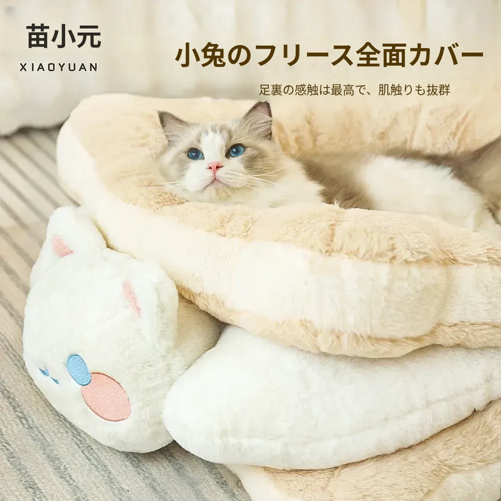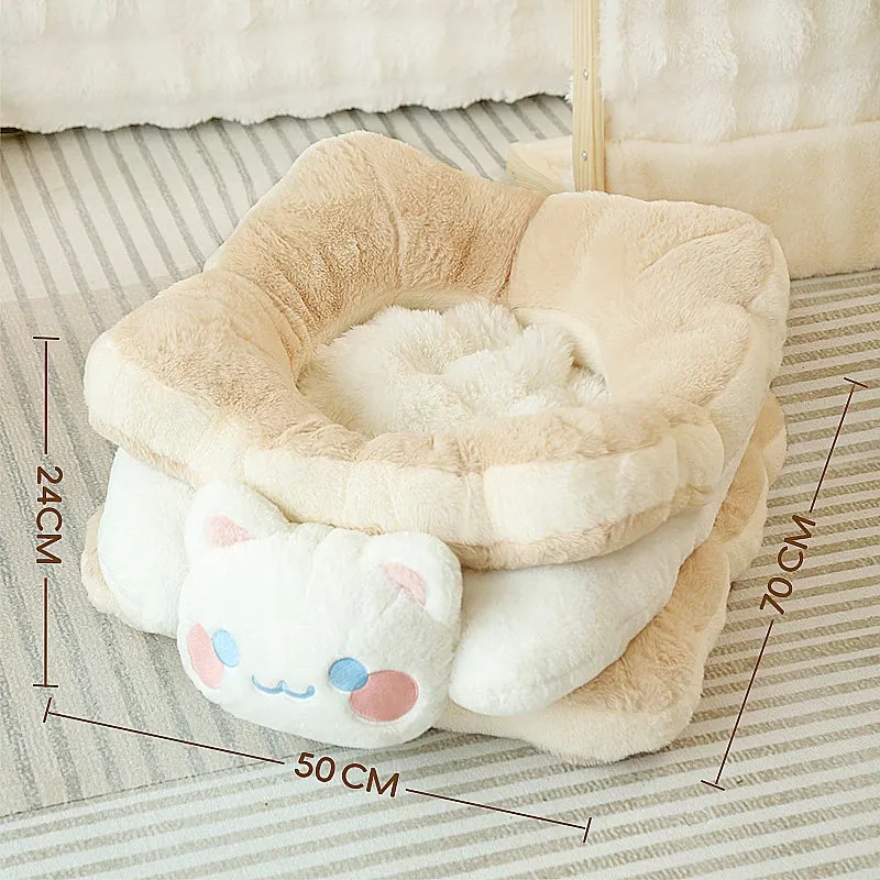 ミャオシャオユエ|ふわふわのクッキーサンドキャットベッド、冬の暖かさを保つペットハウス、厚手で柔らかい、冬にぴったりの子猫用キャットハウス!